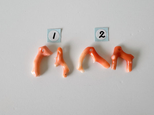 Momo Coral Branch Natural Orange: Genuine Precious Coral Loose Set (2 Pieces, 28-40mm Length, Drilled Holes, Jewelry Supplies)