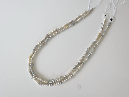 Japanese Akoya Pearl Twin Beads: Natural Blue Silver, 3x6-4x8mm, Cultured Saltwater Pearls | Full Strand 40cm, Genuine Jewelry Supplies