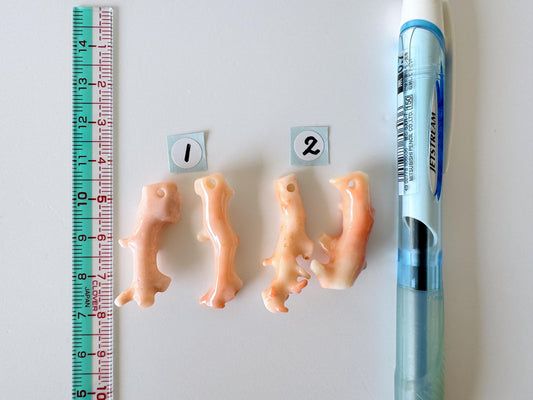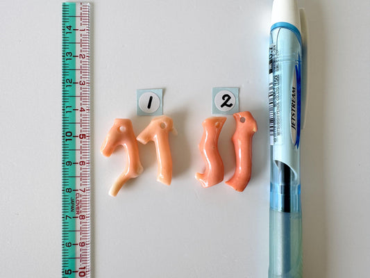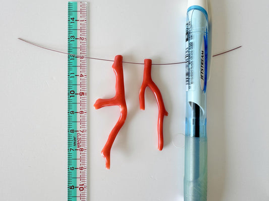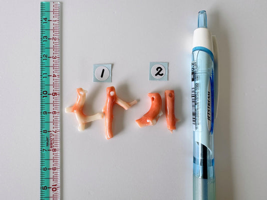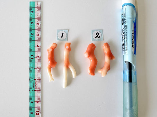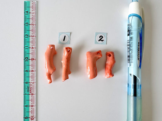 Momo Coral Branches Natural Japanese: Orange Color Set of 2, Side Full-Hole (39-47mm Length, Genuine Precious Coral)