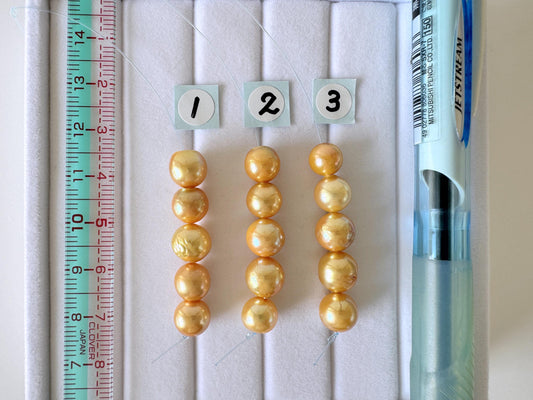 Japanese Golden Akoya Pearl Beads: Semi-Baroque 7.1-8.6mm - Color Treated, Saltwater Cultured, Mini Strand Jewelry Supplies, 5 Pieces
