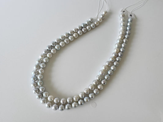 Japanese Akoya Pearl Beads: Natural Blue Silver, 8.5-9mm, Full Strand 40cm | Genuine Saltwater Pearls, Jewelry Supplies