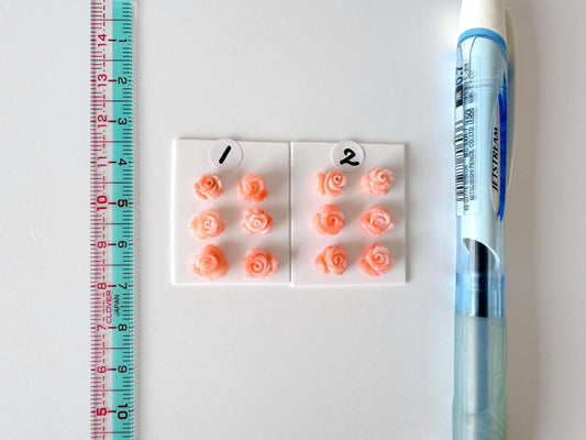 Hand-Carved Coral Rose Stud Earrings: Titanium Posts, Pink-Orange Genuine Coral
