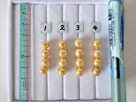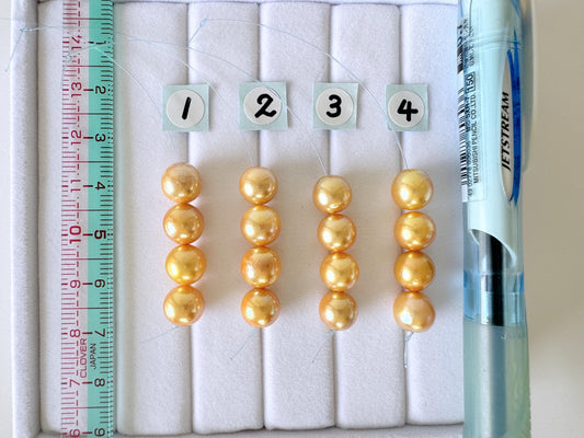 Japanese Akoya Golden Pearl Beads, Mini Strand, 7.9-8.4mm Semi-Round (Color Treated, Cultured Saltwater, 4 Pieces)