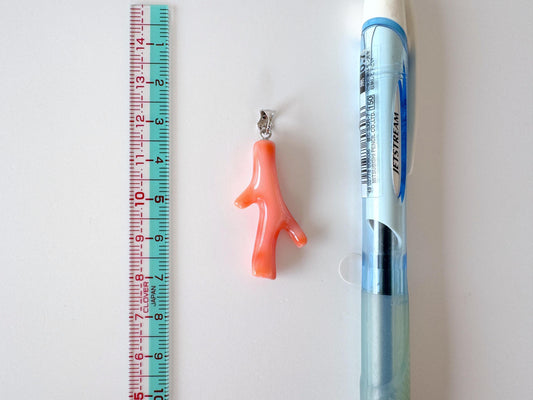 Natural Momo Coral Branch Pendant: Rhodium-Plated Silver Bail, 38mm