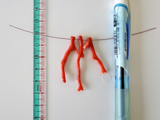 Momo Coral Branches Set - Natural Japanese Vermilion Coral - Side Through-Hole, 40-42mm, Jewelry Craft Materials
