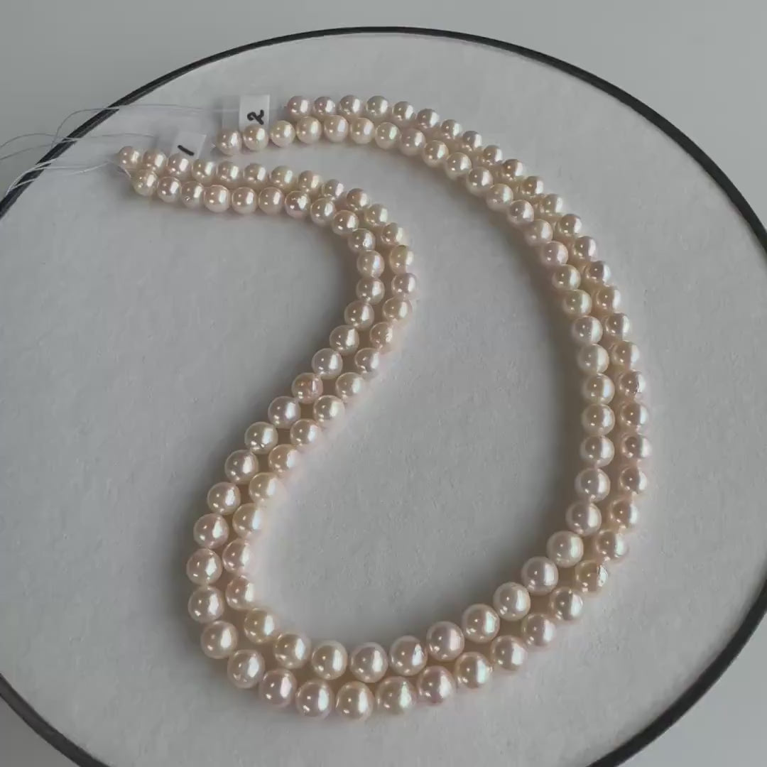 6.5-7mm Japanese White/Pink Akoya Pearl Beads, Genuine Akoya Pearl, Full Strand, 40cm , 15.7", Cultured Salt water pearl