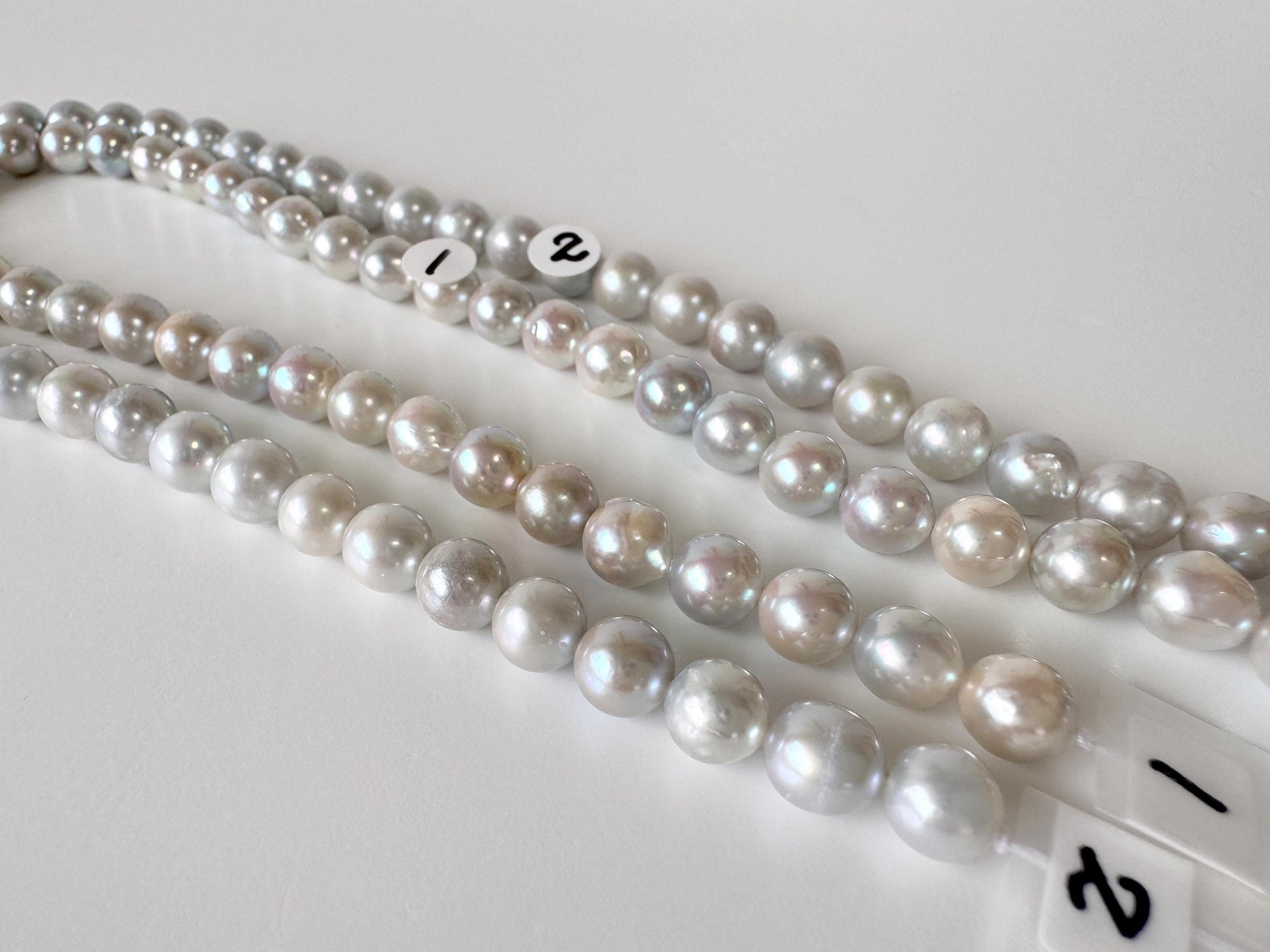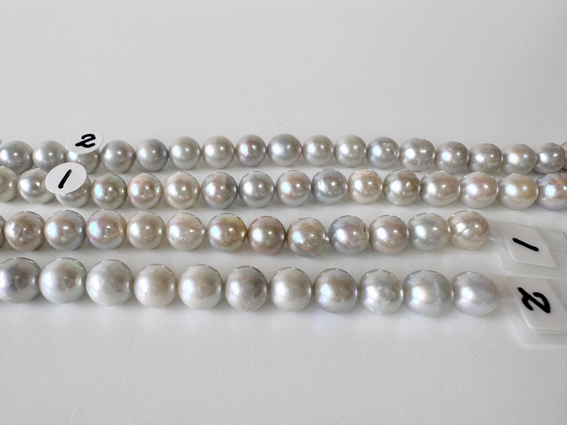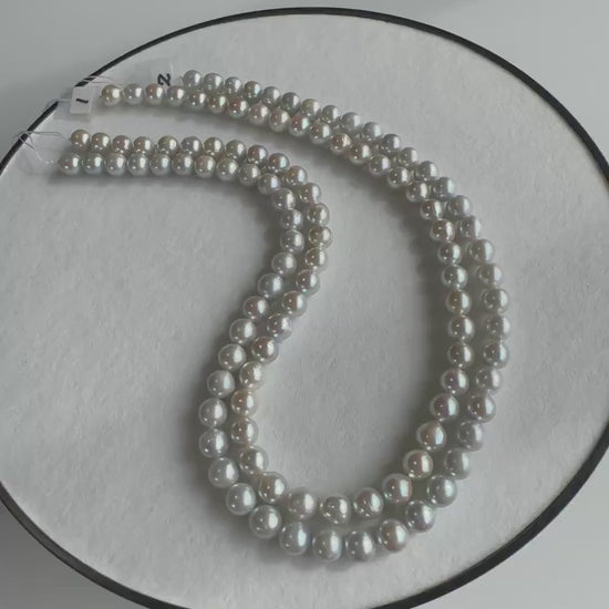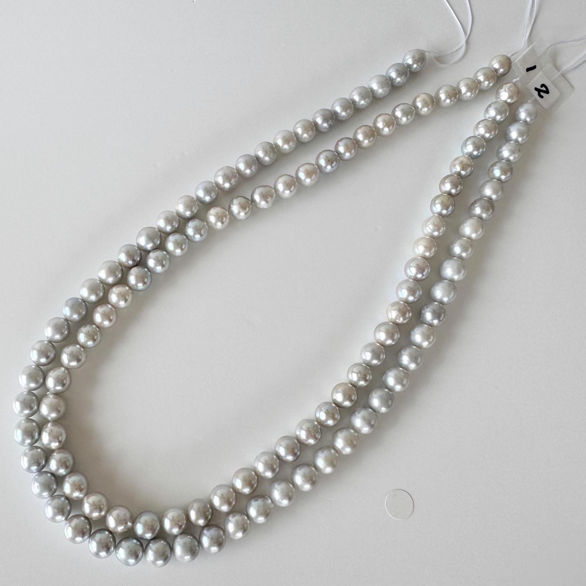 7-7.5mm Japanese Akoya Pearl Beads, Blue/Silver color pearl (Cobalt treated), Genuine Salt water Akoya Pearl, Full Strand, 40cm , 15.7"