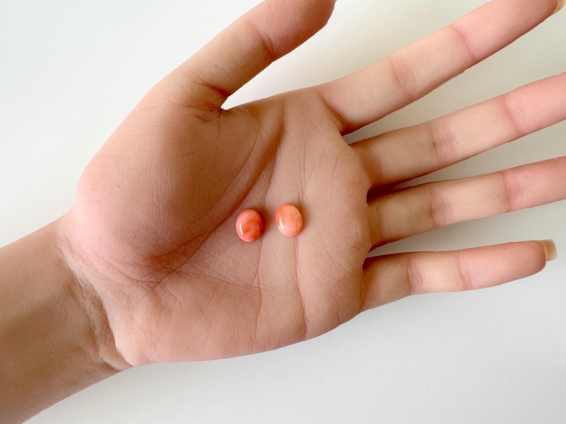10x8mm Natural Deep Sea Coral Oval Cabochon, Natural Orange/Pink Color Coral, Price per Pair, For Jewelry Making, Genuine Coral