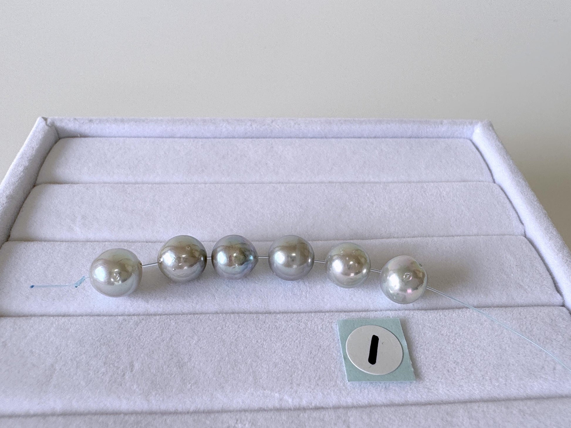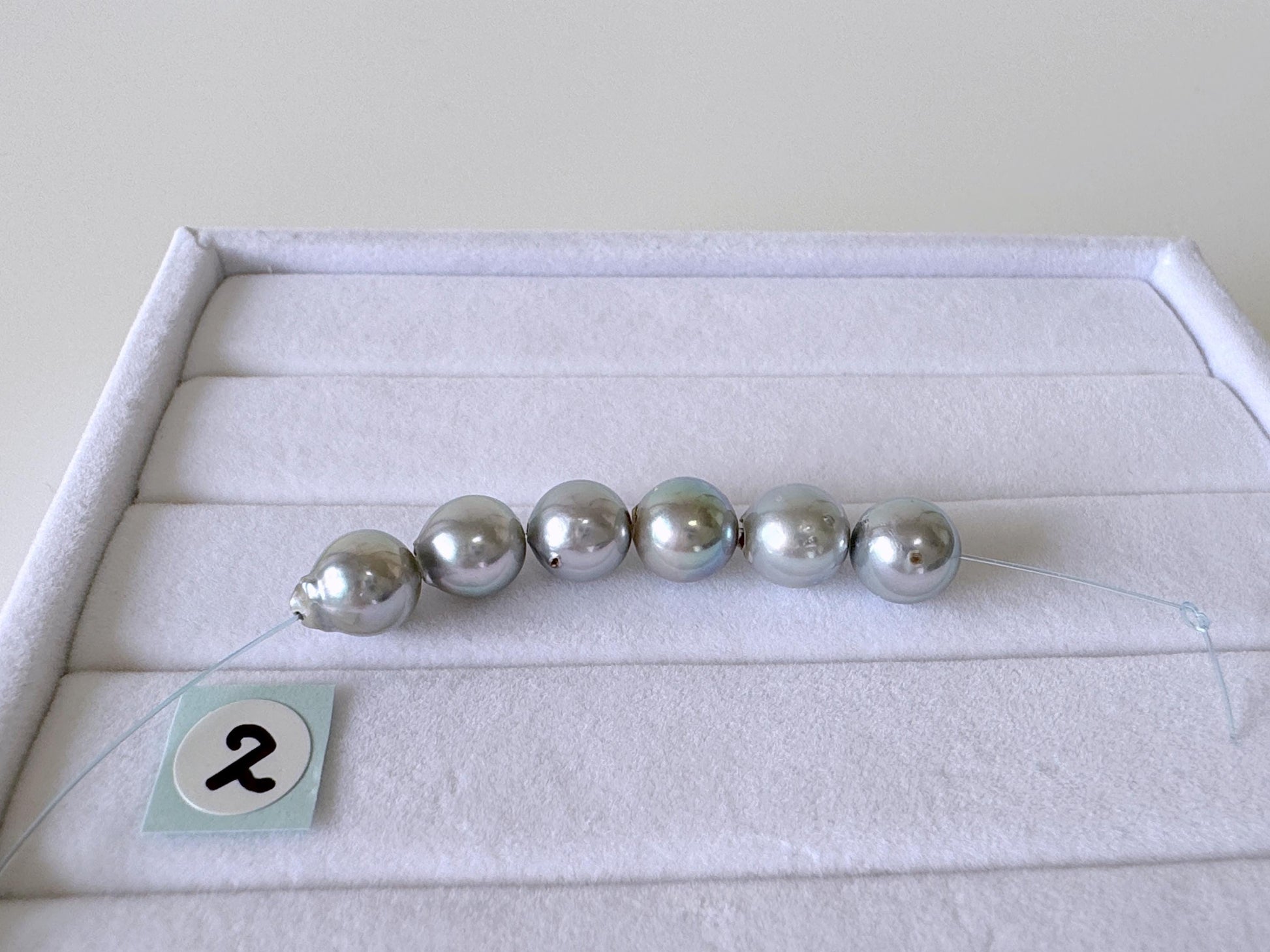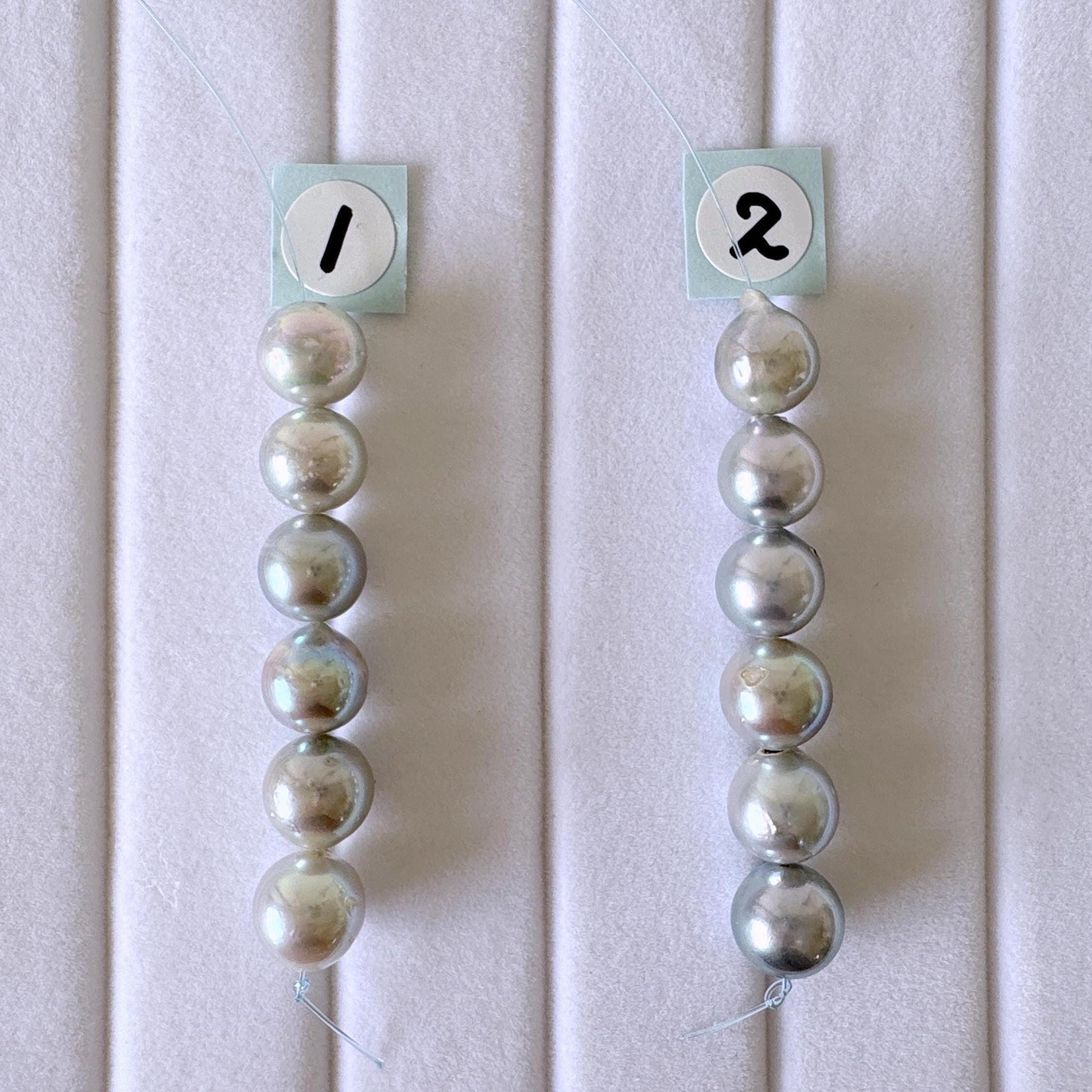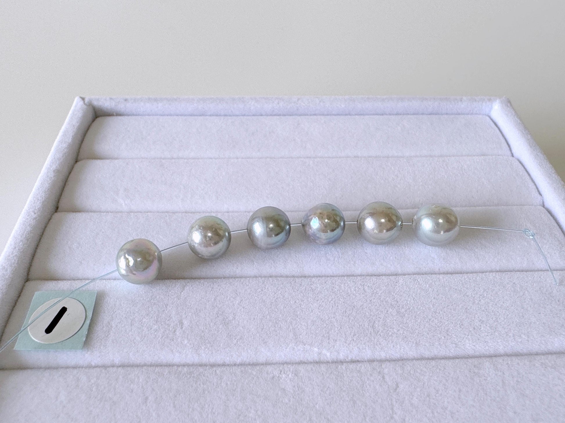 Japanese Blue/Silver color (cobalt treated) Akoya Pearl Beads, 7-7.5mm, Mini Strand, Short Strand of 6 Pieces, Cultured in Sea Water