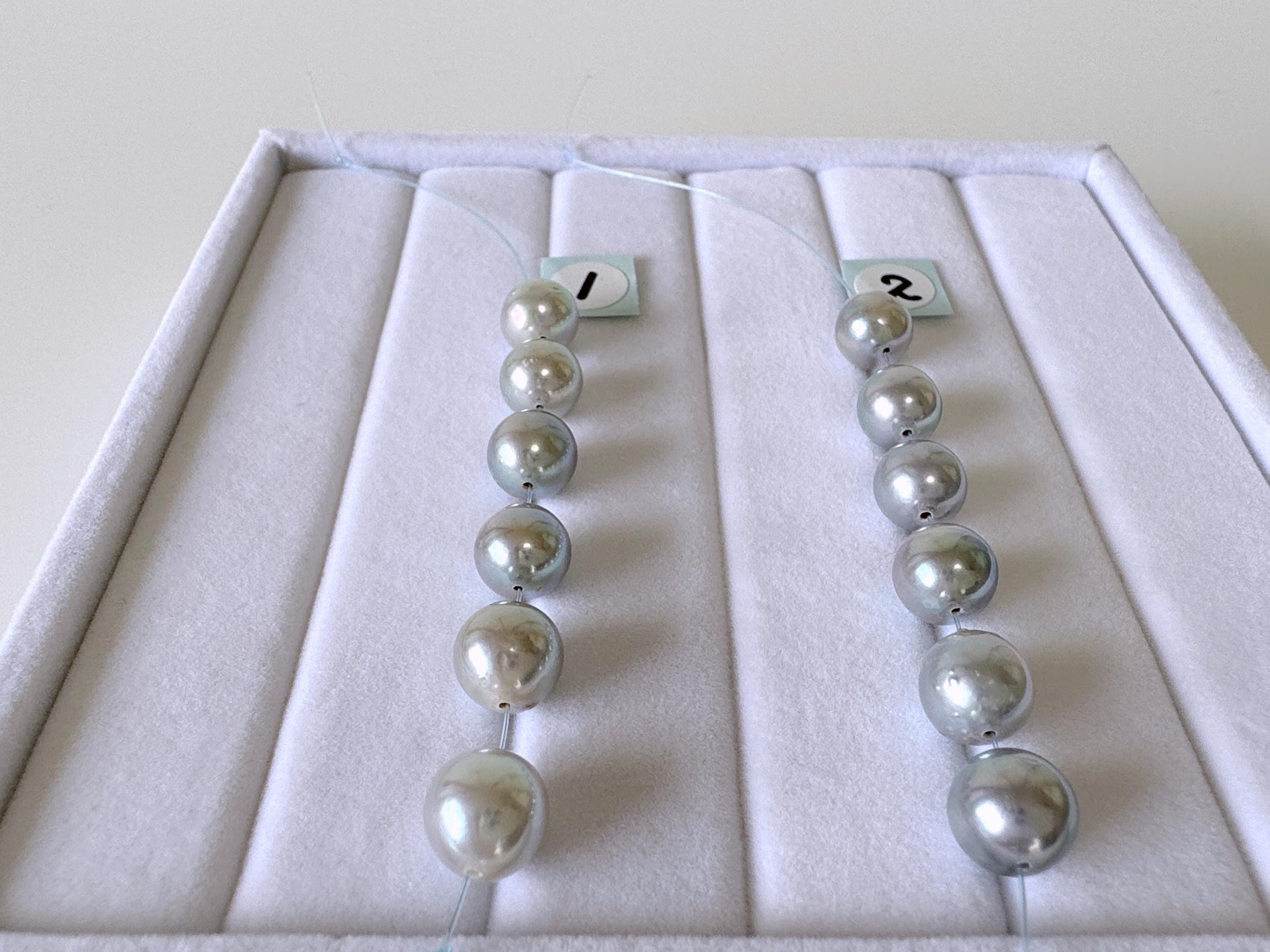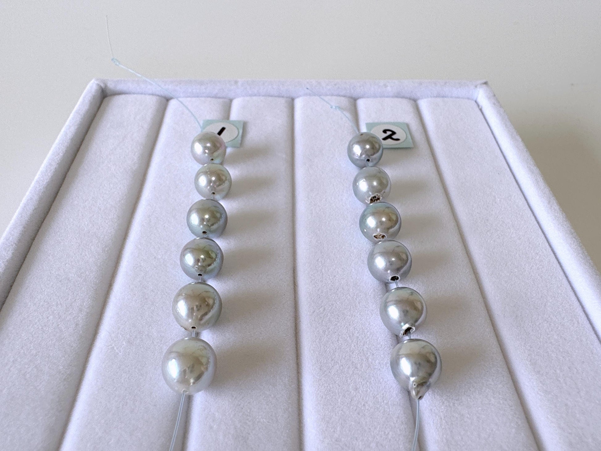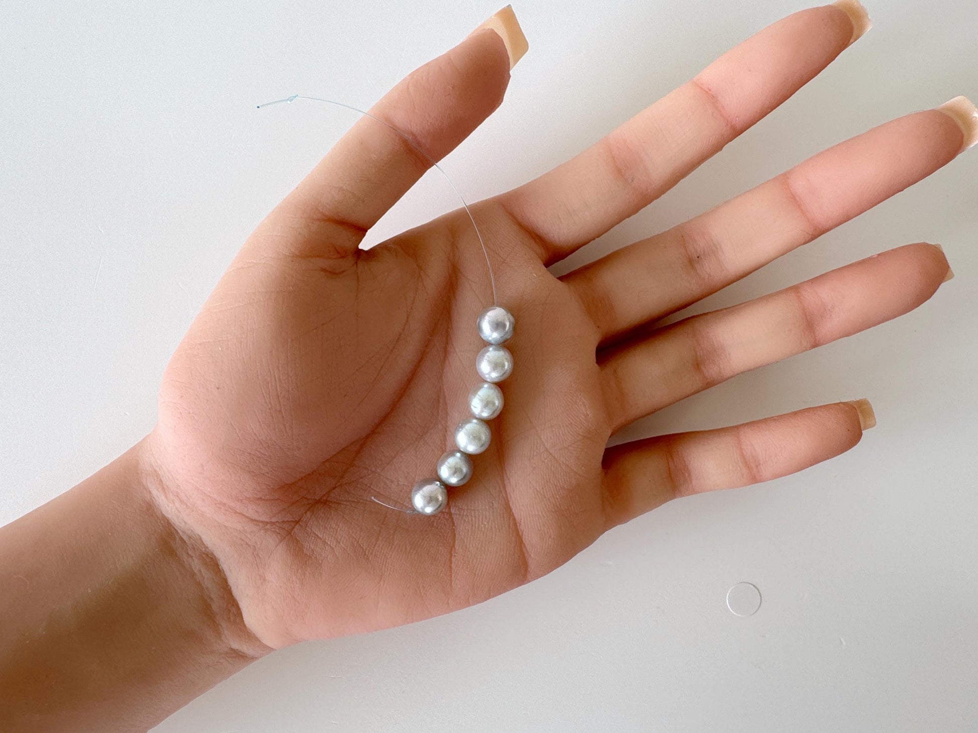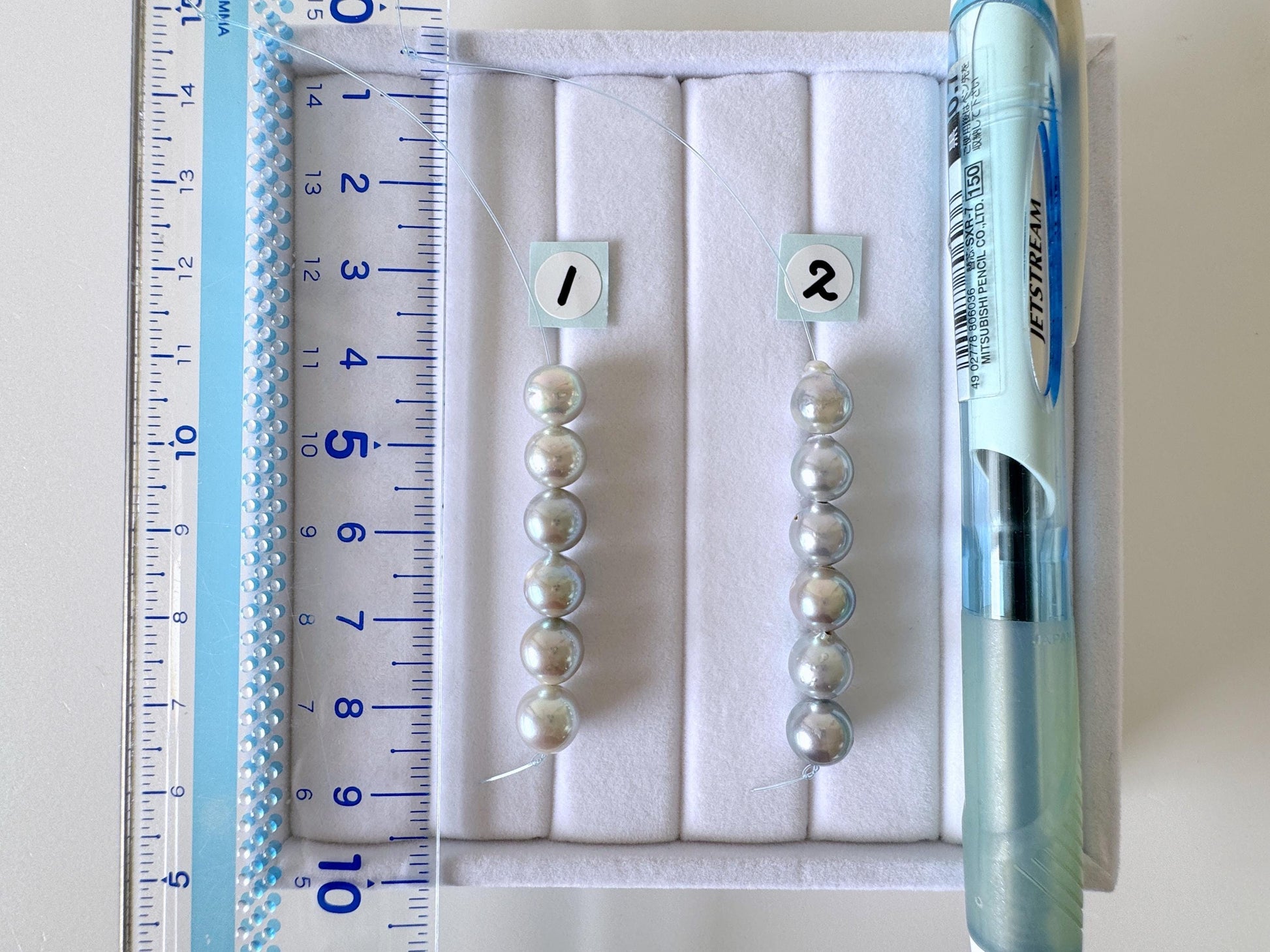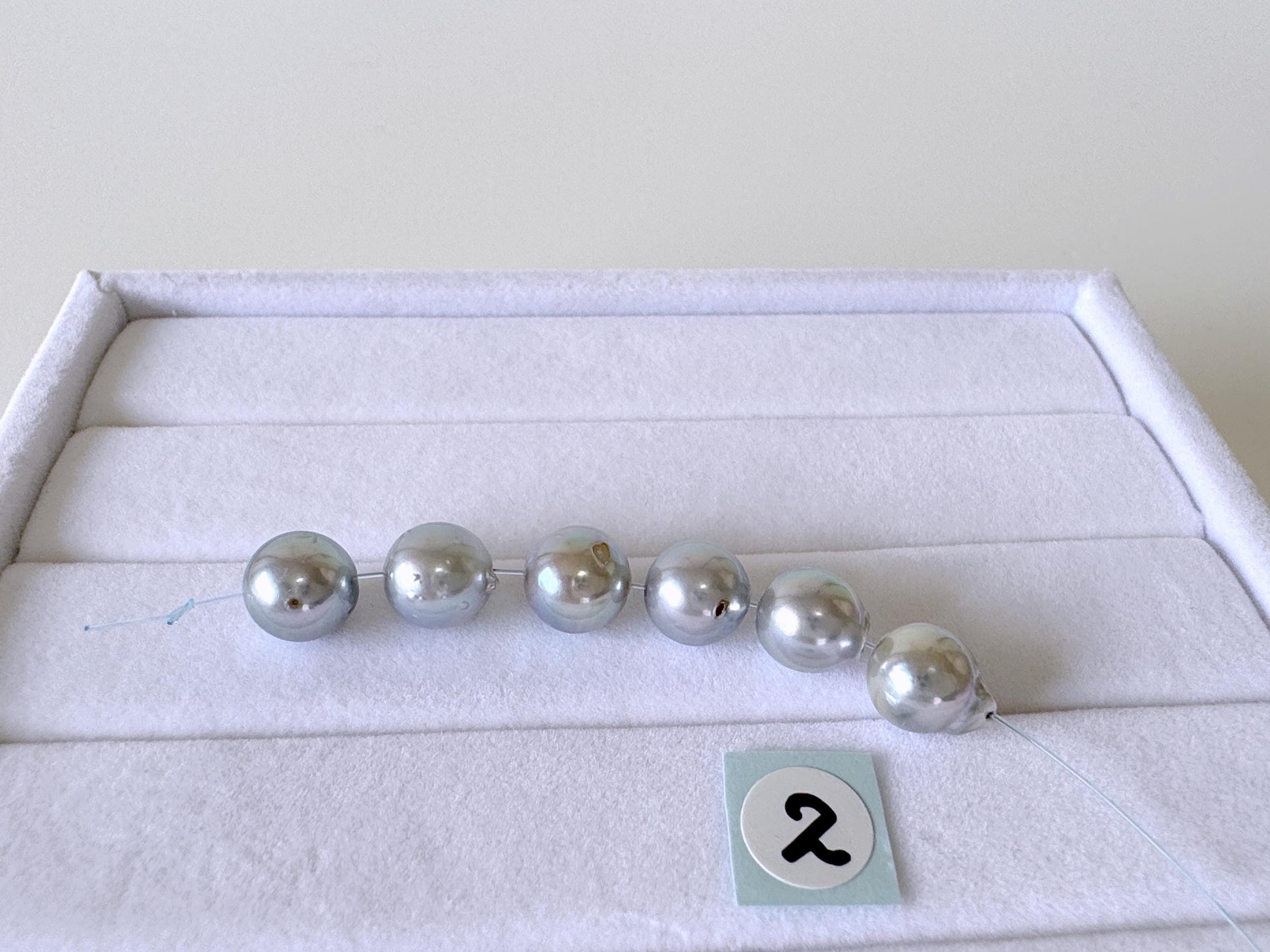 Japanese Blue/Silver color (cobalt treated) Akoya Pearl Beads, 7-7.5mm, Mini Strand, Short Strand of 6 Pieces, Cultured in Sea Water