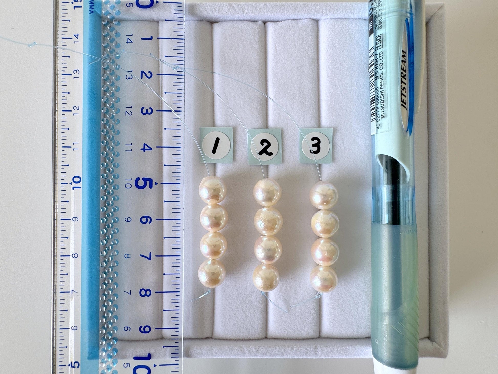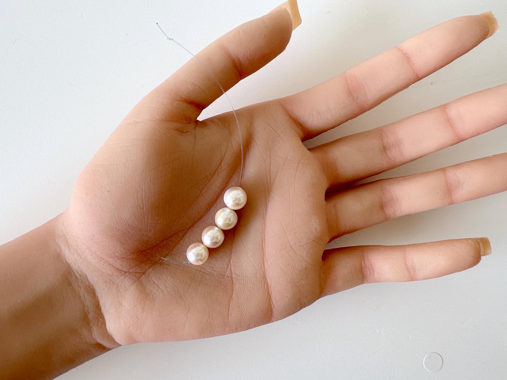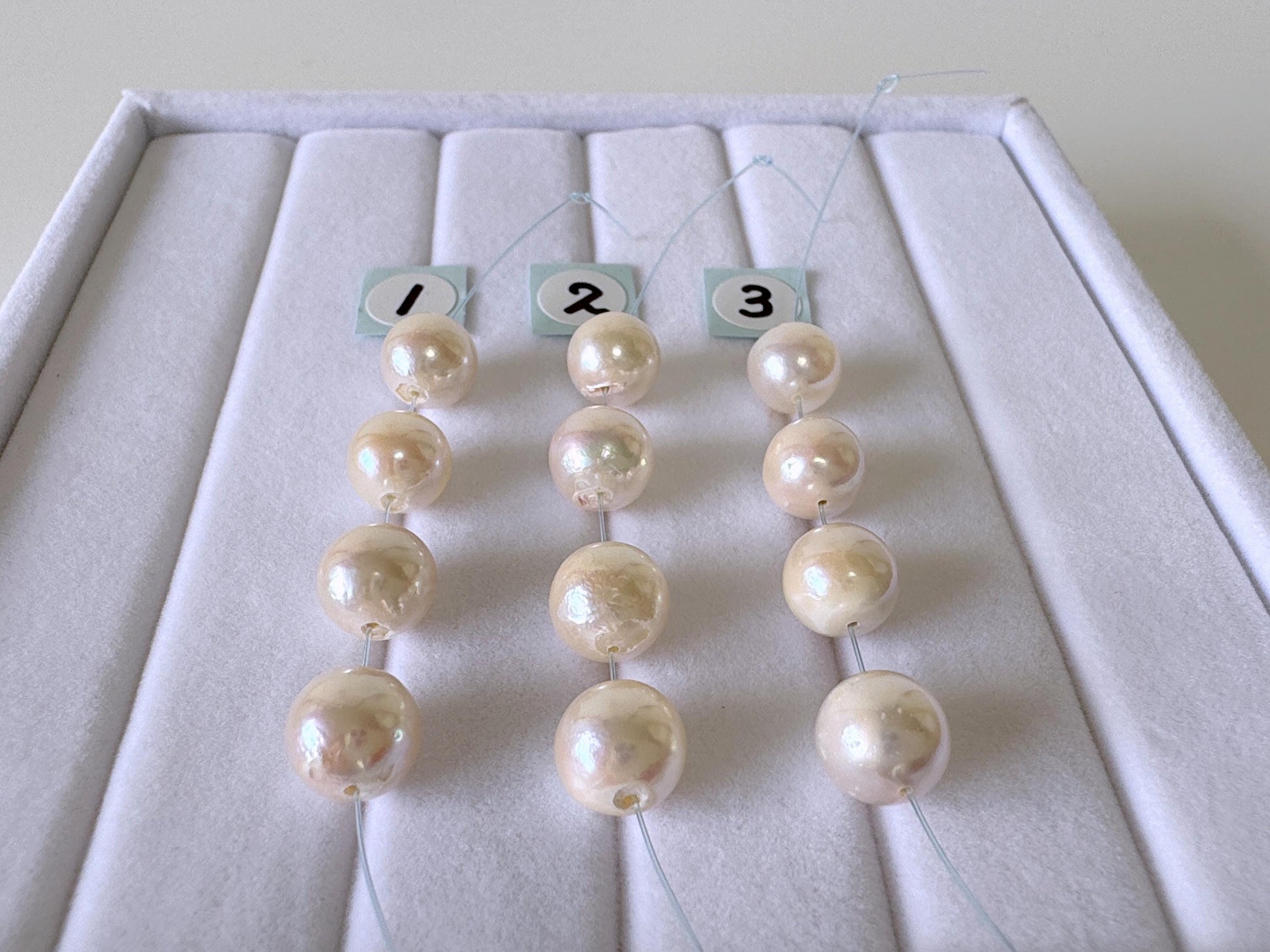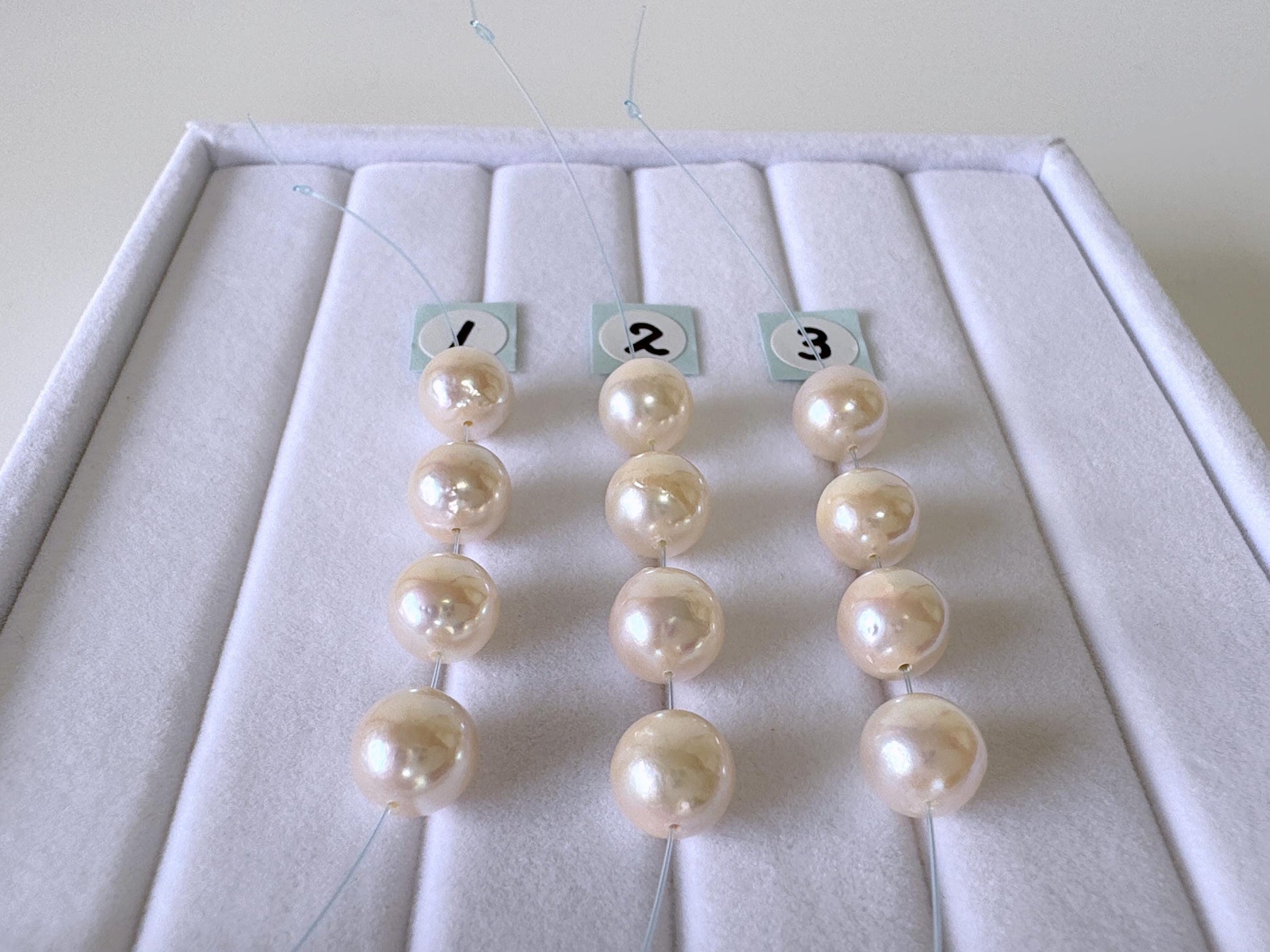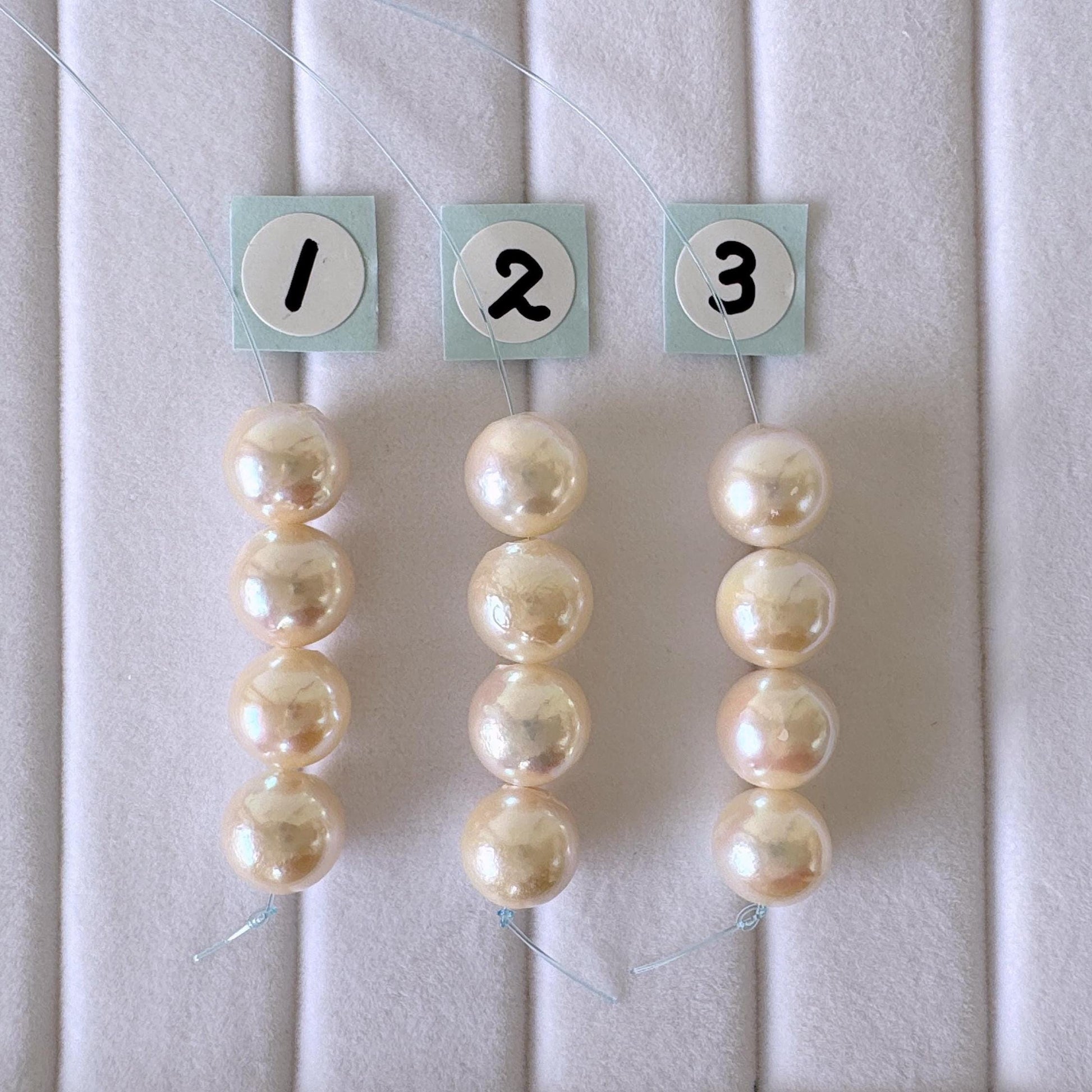 Japanese White Akoya Pearl Beads, 7.5-8mm, Mini Strand, Short Strand, 4 Pieces, Genuine Akoya Pearl, Cultured in Sea Water