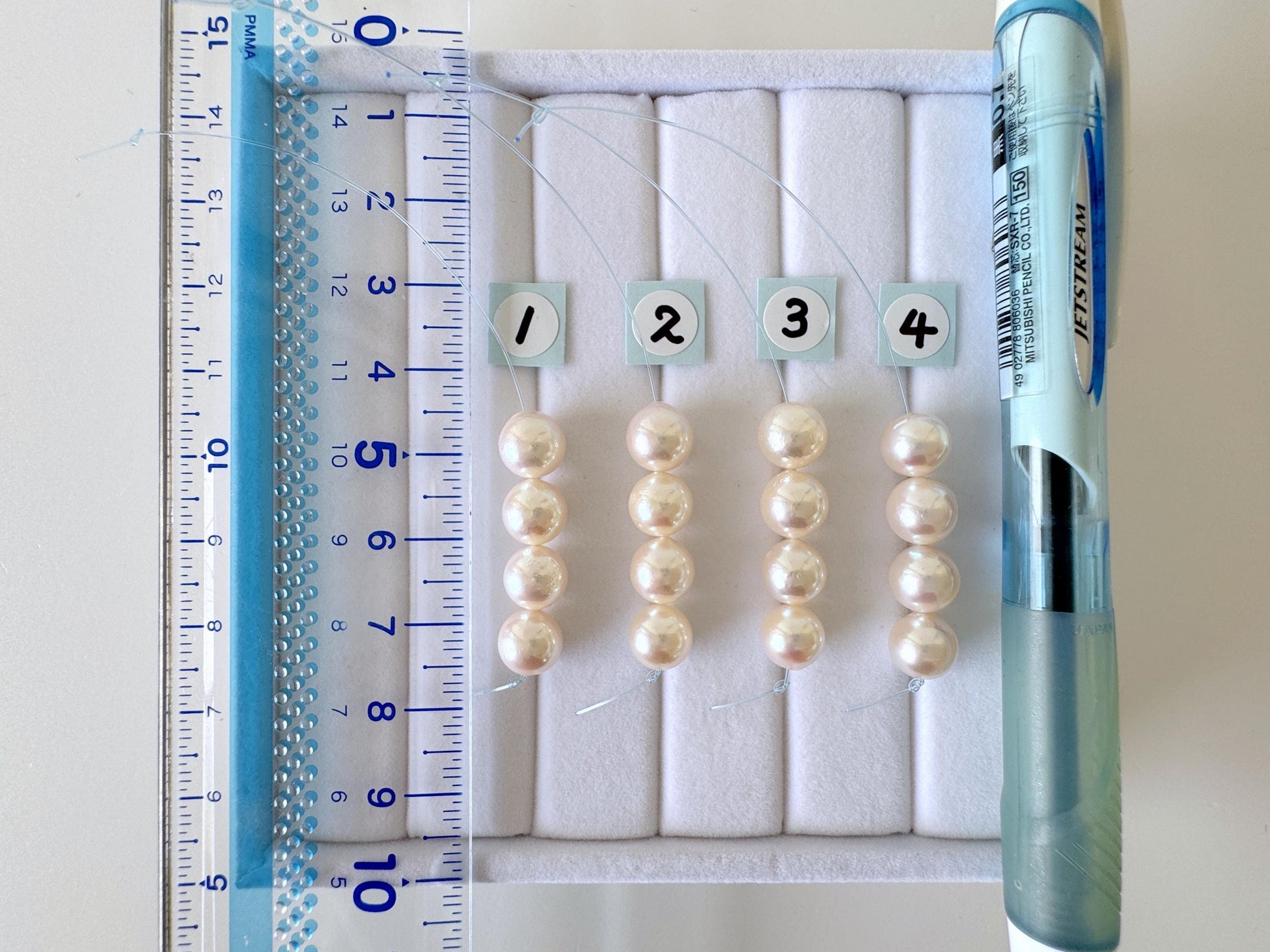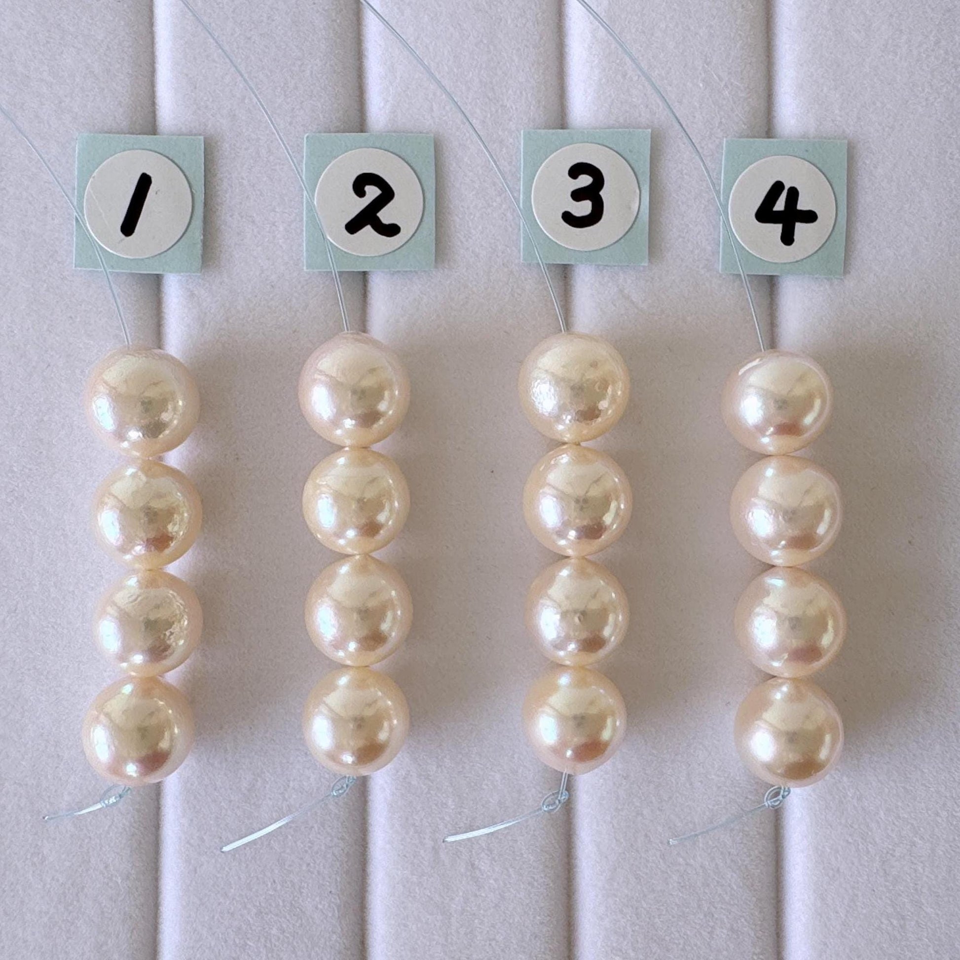 Japanese White Akoya Pearl Beads, 7.5-8mm, Mini Strand, Short Strand, 4 Pieces, Genuine Akoya Pearl, Cultured in Sea Water