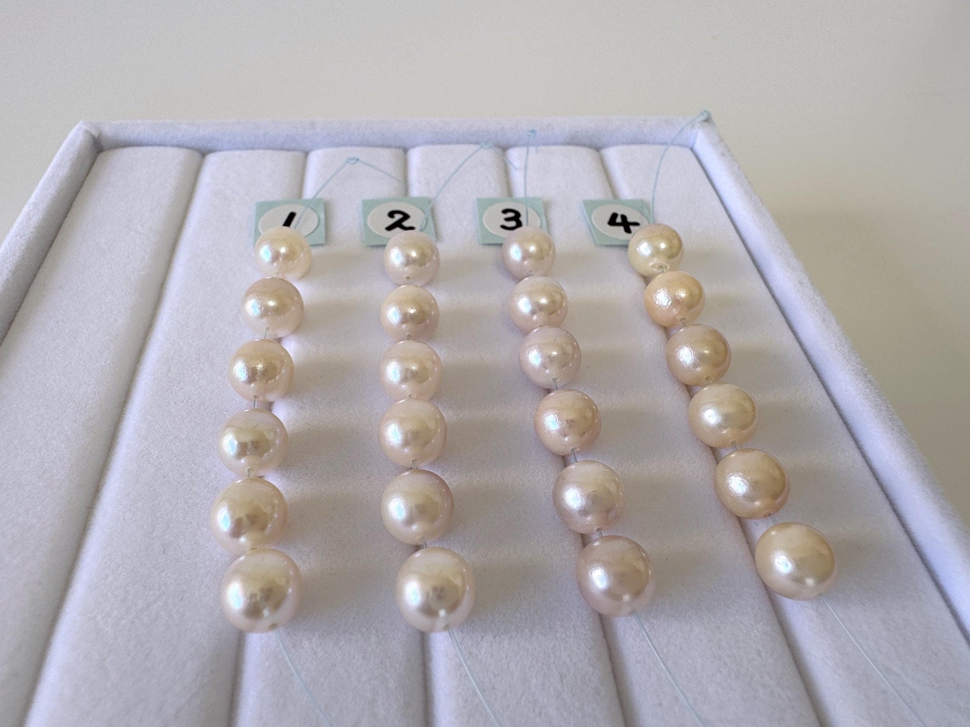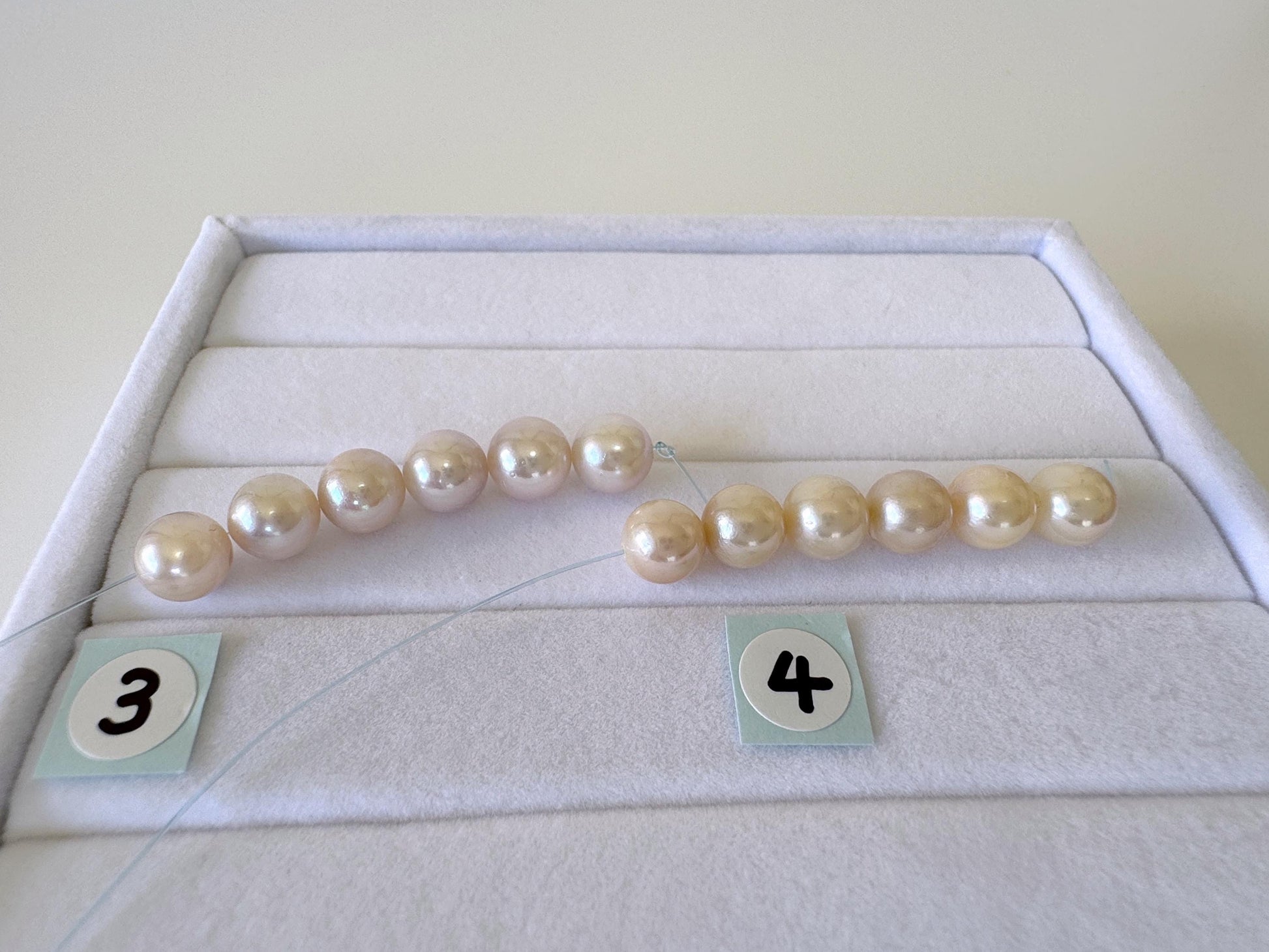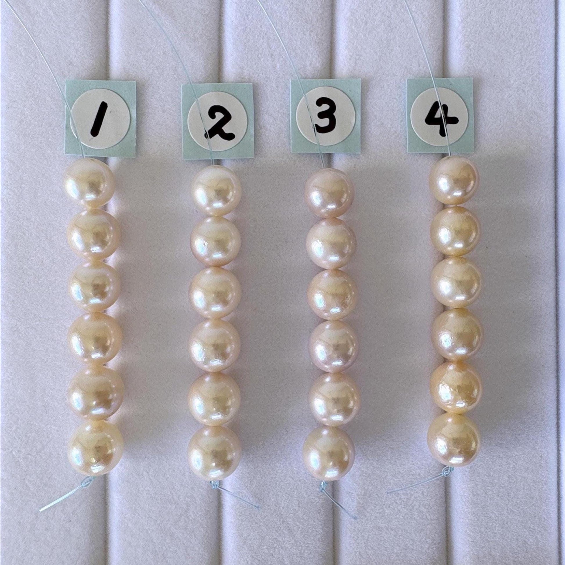 Japanese White/Pink Akoya Pearl Beads, 6.5-7mm, Mini Strand, Short Strand, 6 Pieces, Genuine Akoya Pearl, Cultured in Sea Water