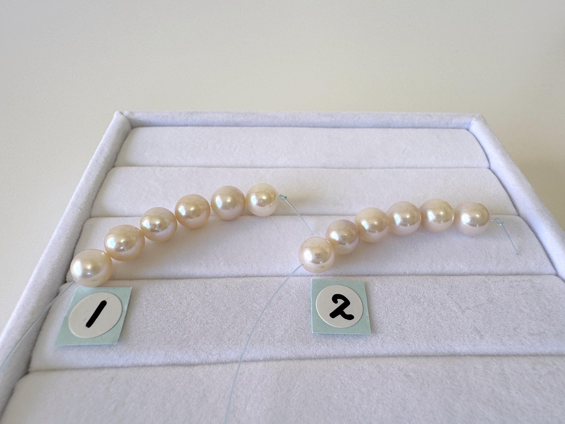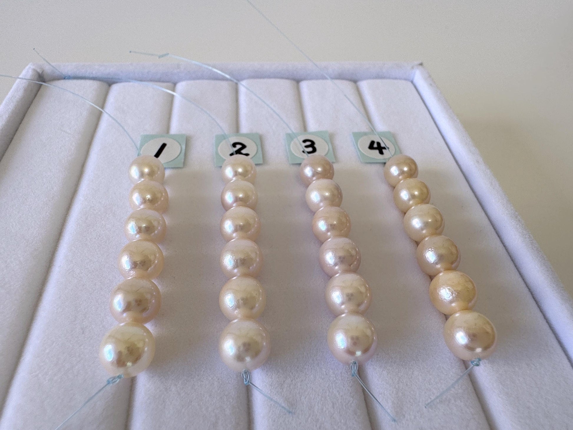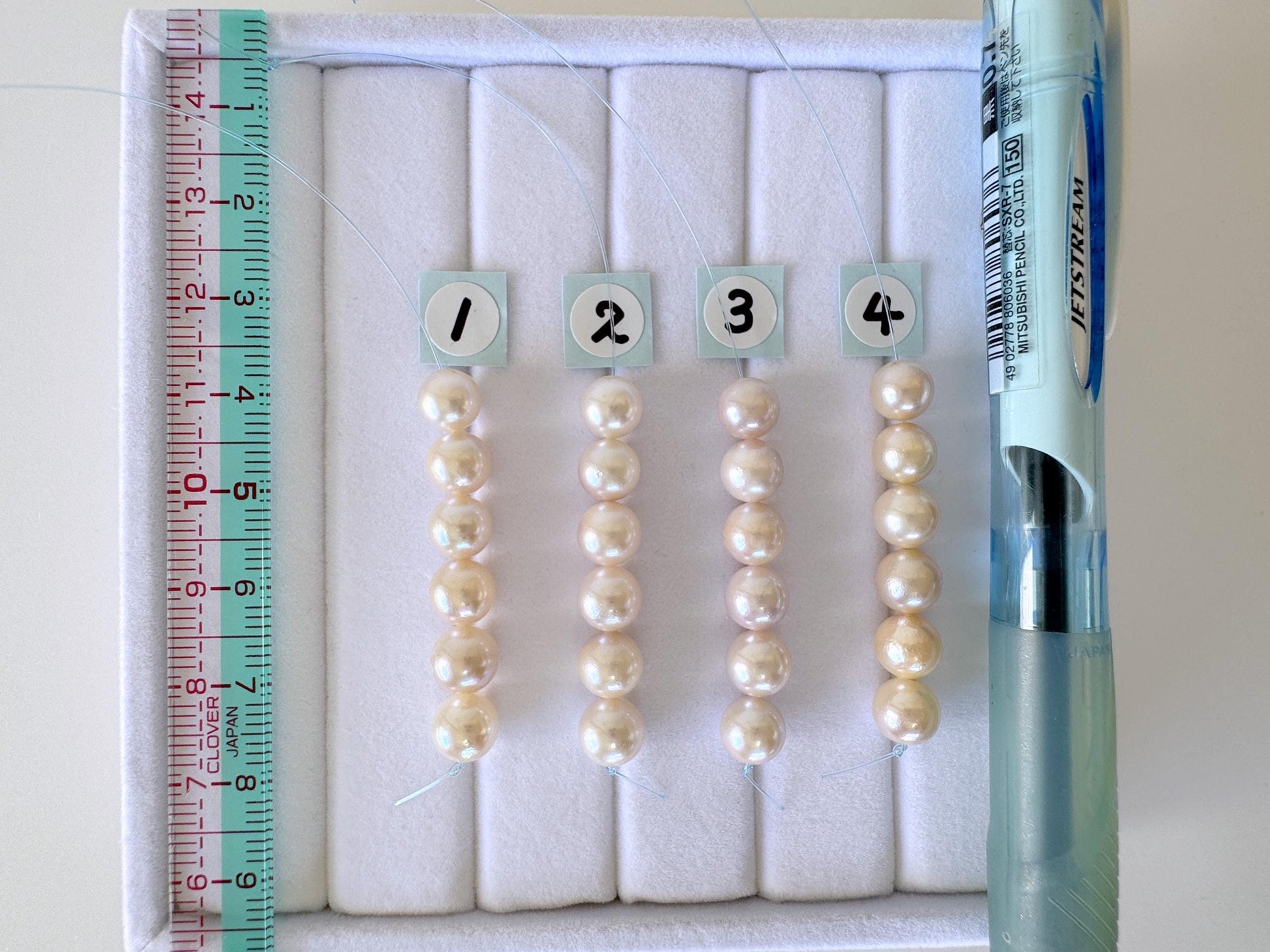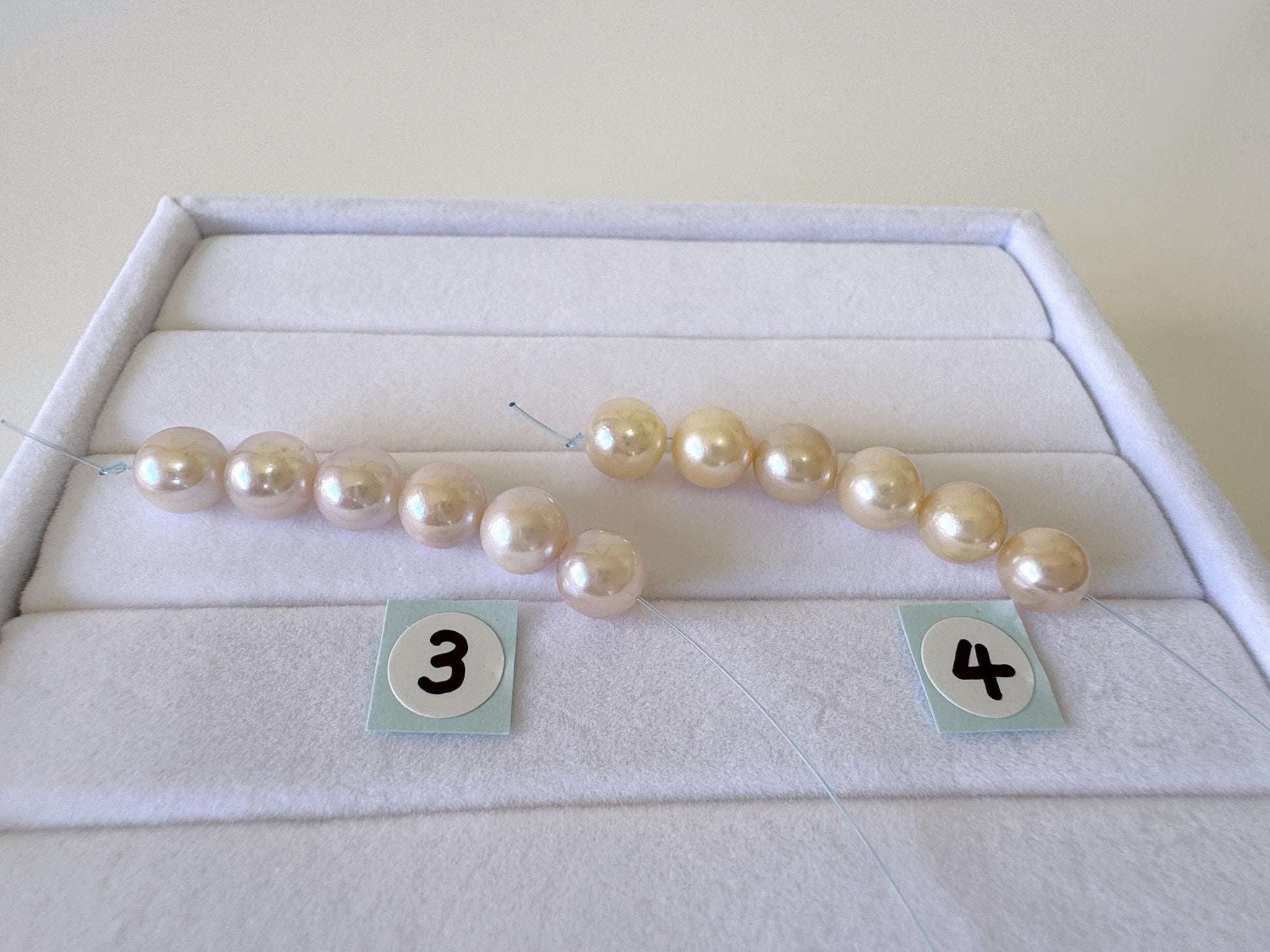 Japanese White/Pink Akoya Pearl Beads, 6.5-7mm, Mini Strand, Short Strand, 6 Pieces, Genuine Akoya Pearl, Cultured in Sea Water