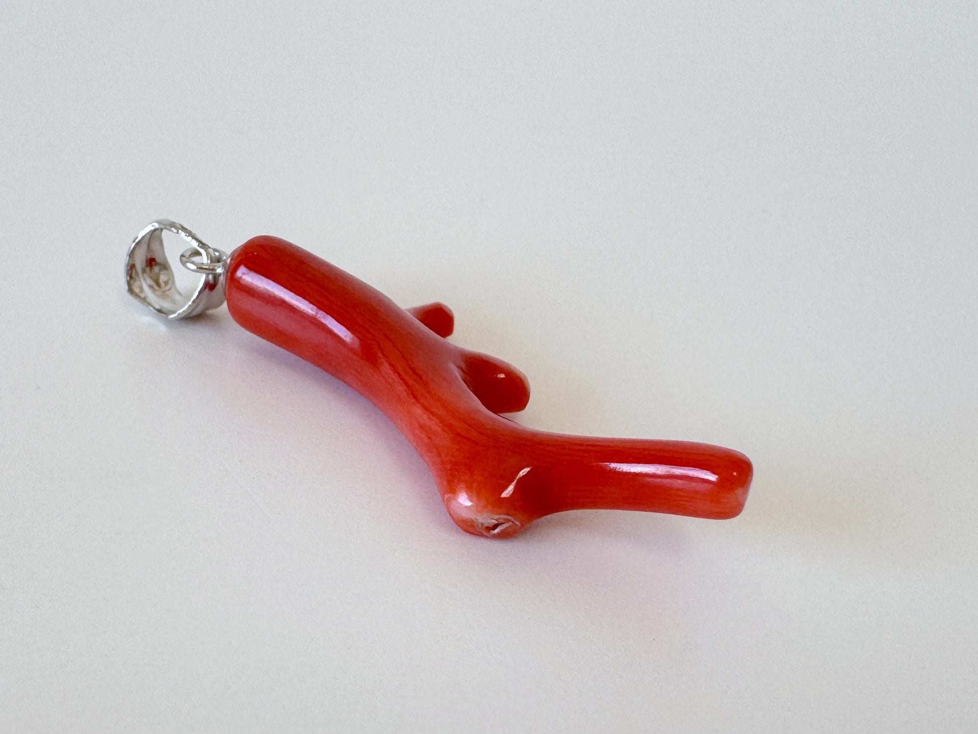 Natural Momo coral branch pendant, 34mm, Natural Japanese Orange color coral branch pendant, Silver (Rhodium-Plated) bail