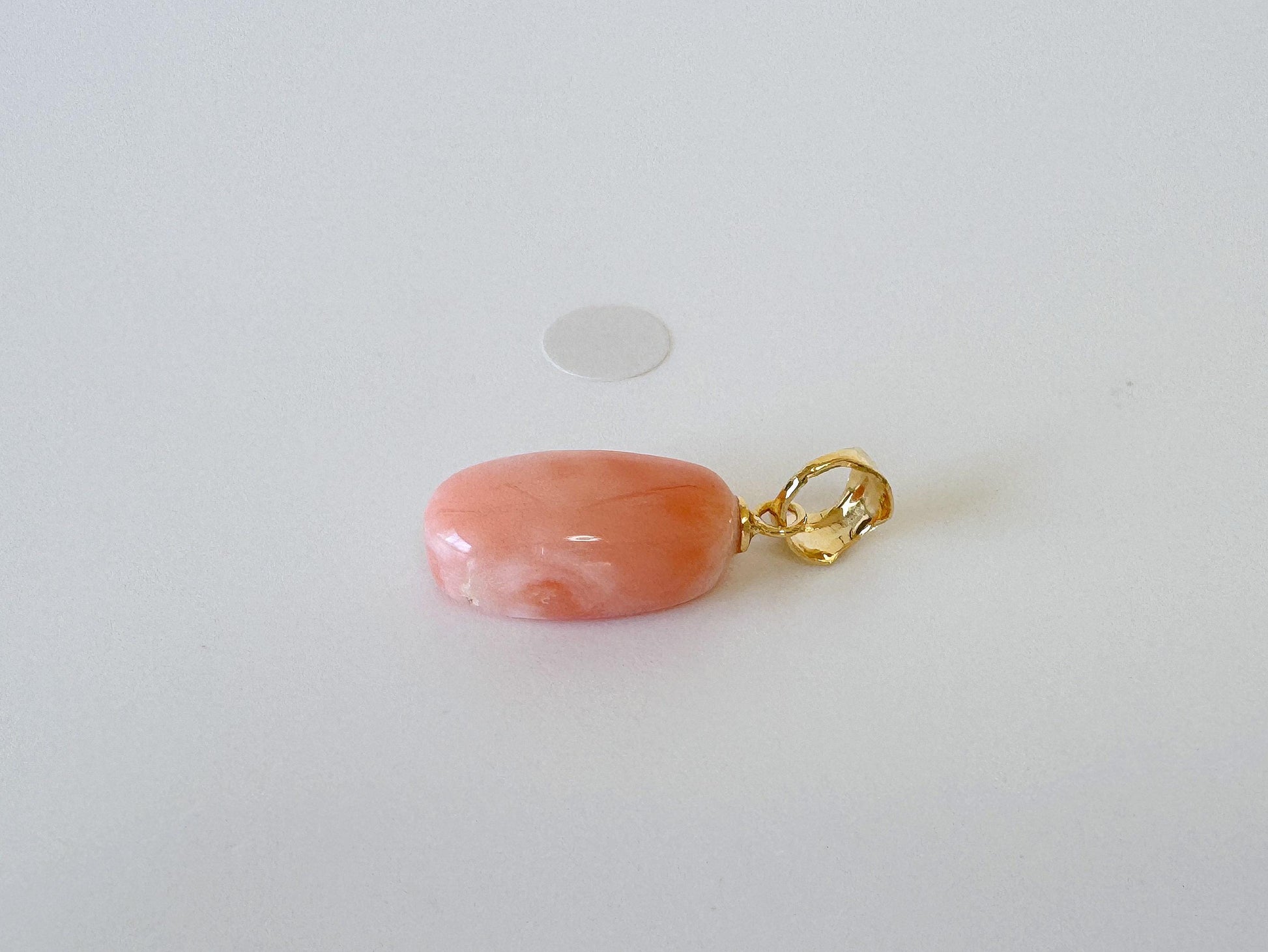Natural Deep Sea Coral Oval Cabochon Pendant, 15.6x9mm, Natural Pink/Orange color coral, Silver (Gold-Plated) bail