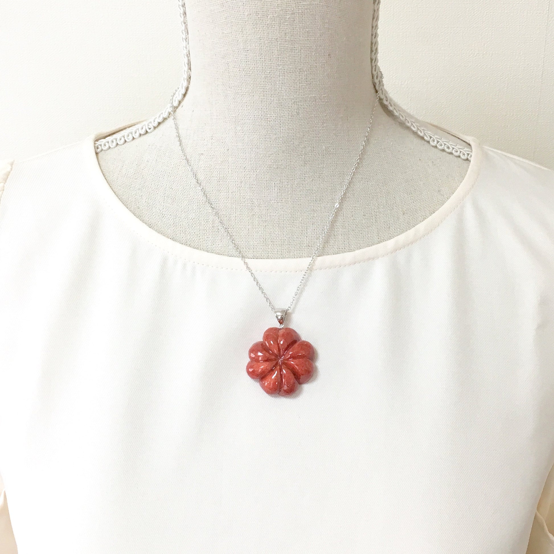 Natural sponge coral Four leaf Clover pendant 30mm, price per piece
