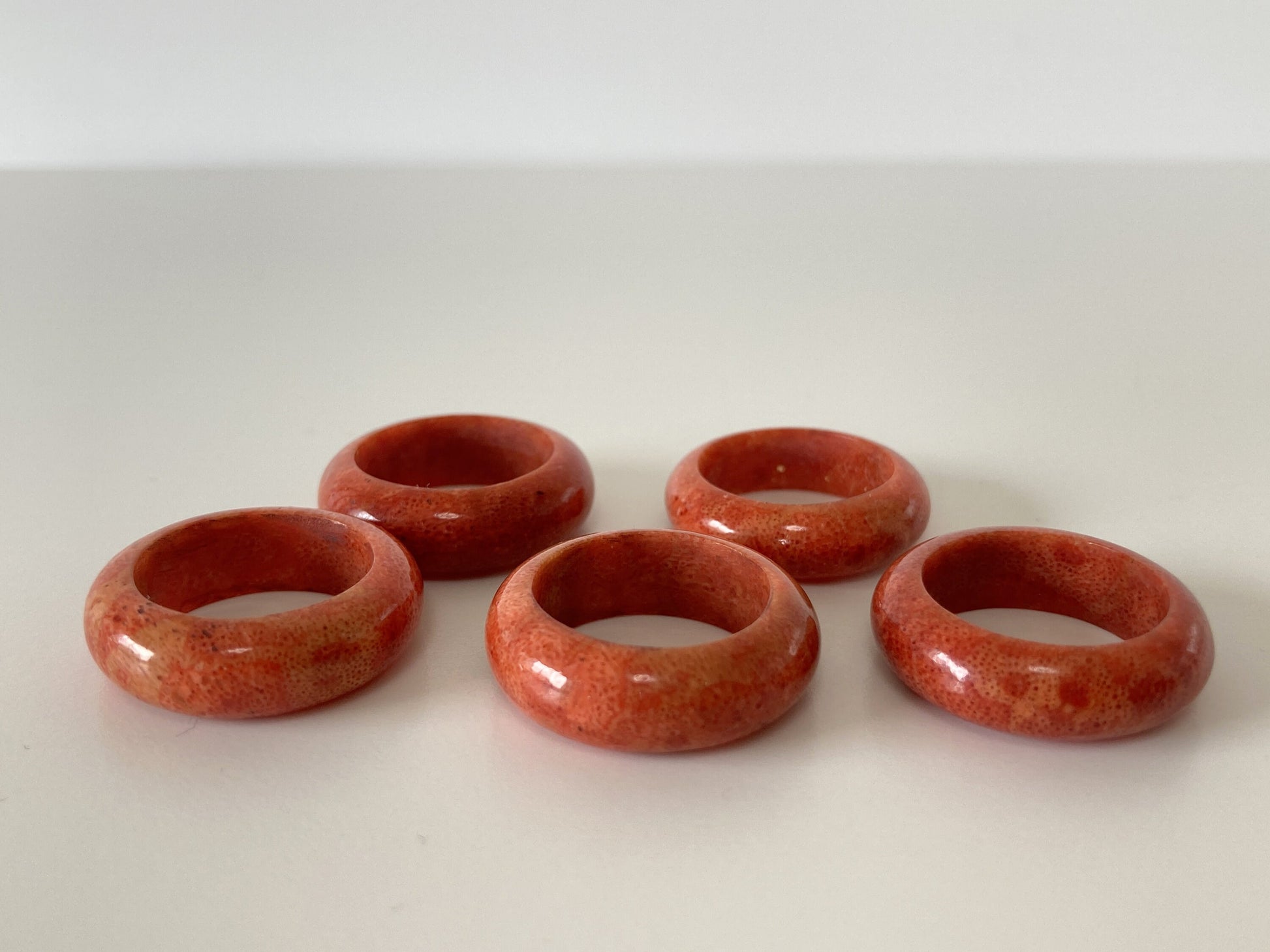 Natural Sponge Coral Half-Round Shape Ring, Stacking Ring, Solid Band Coral Ring with various Sizes, Some sizes are out of stock.