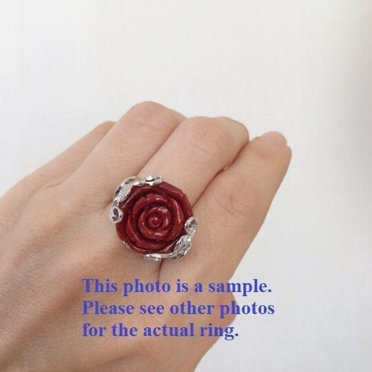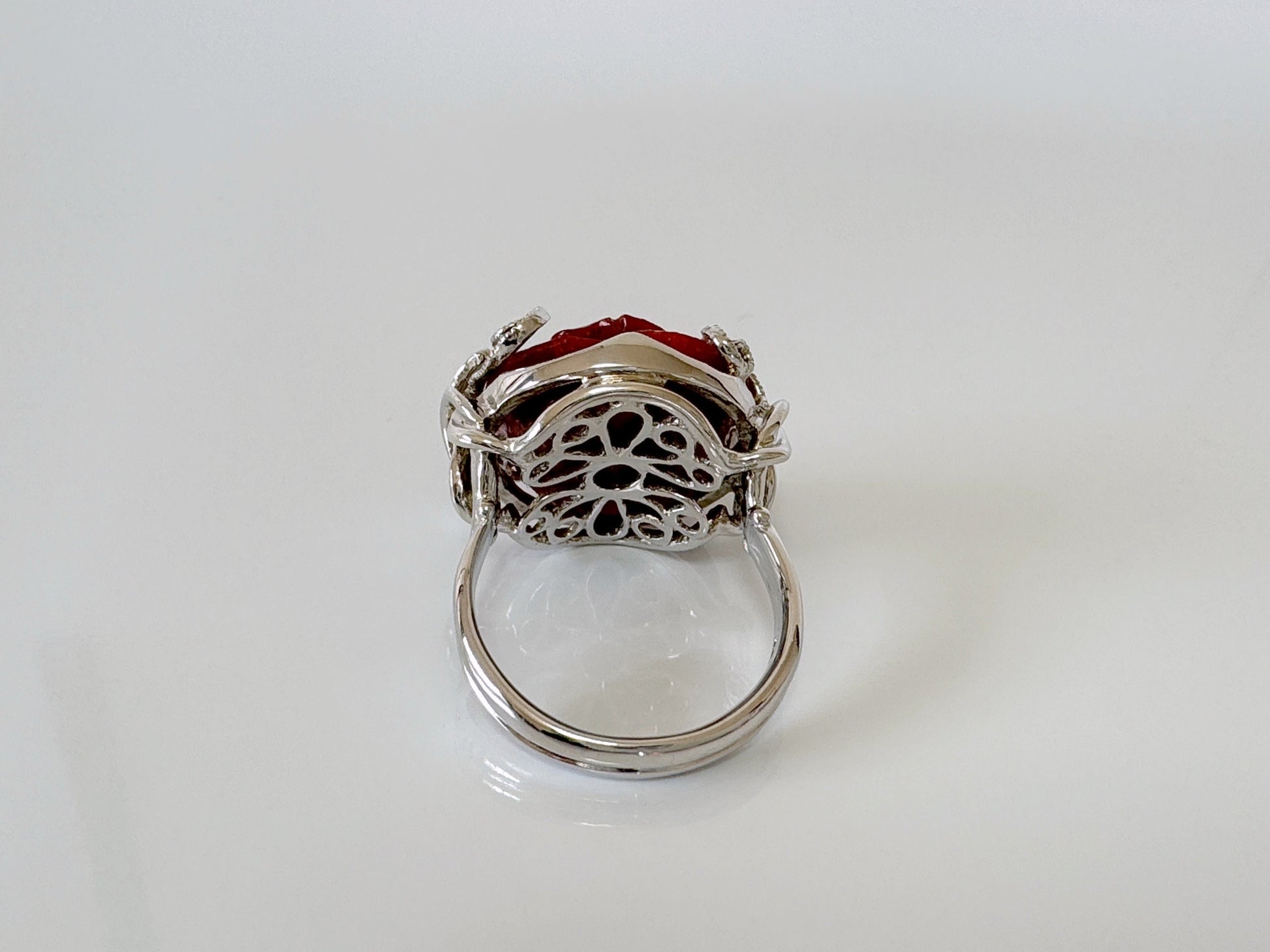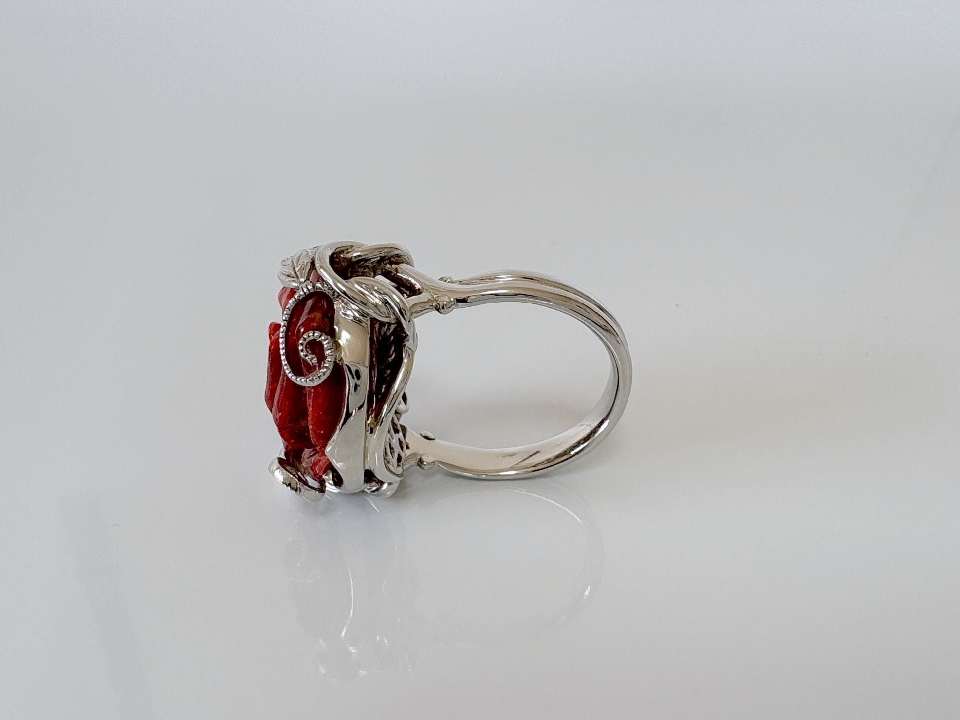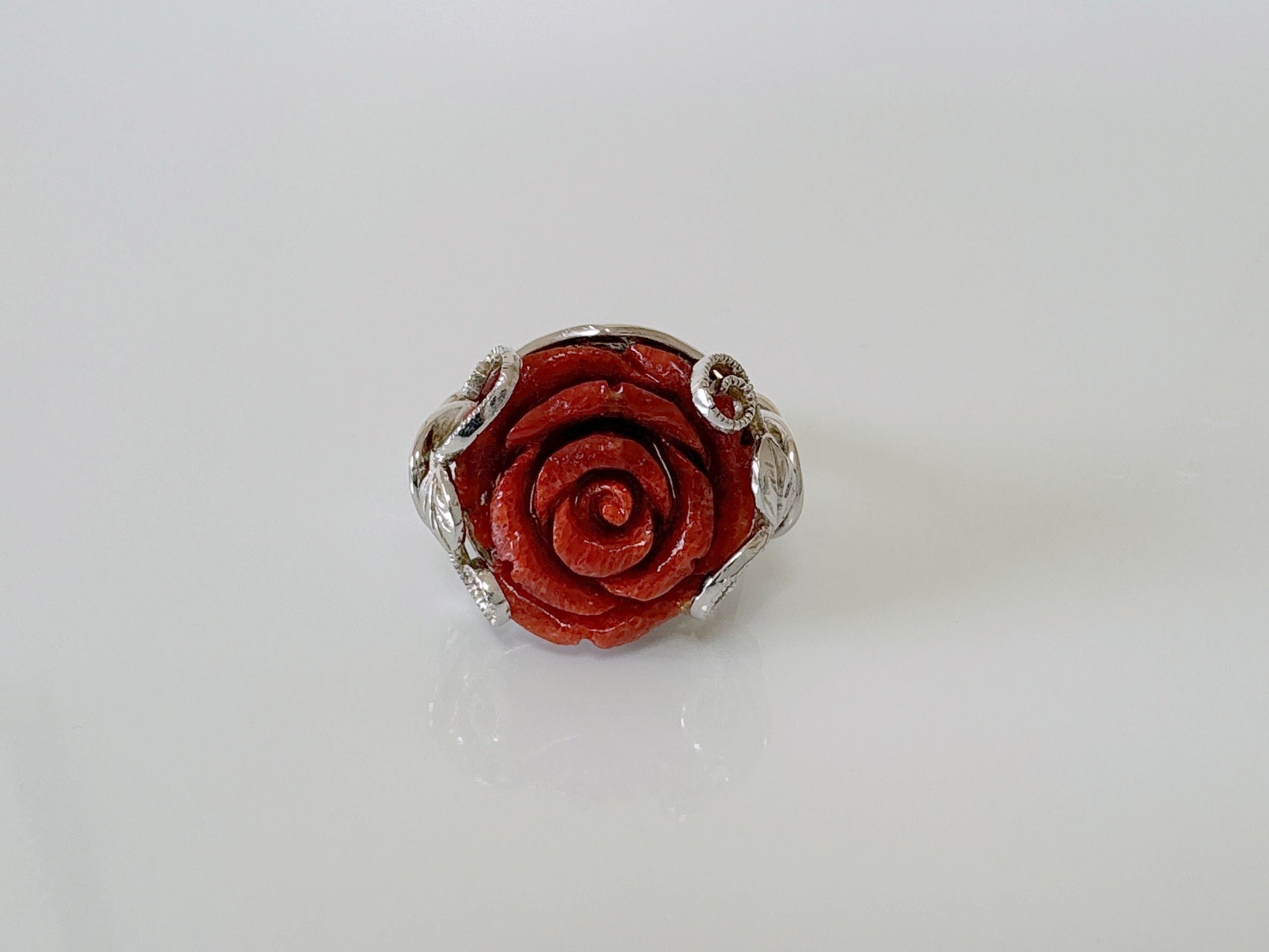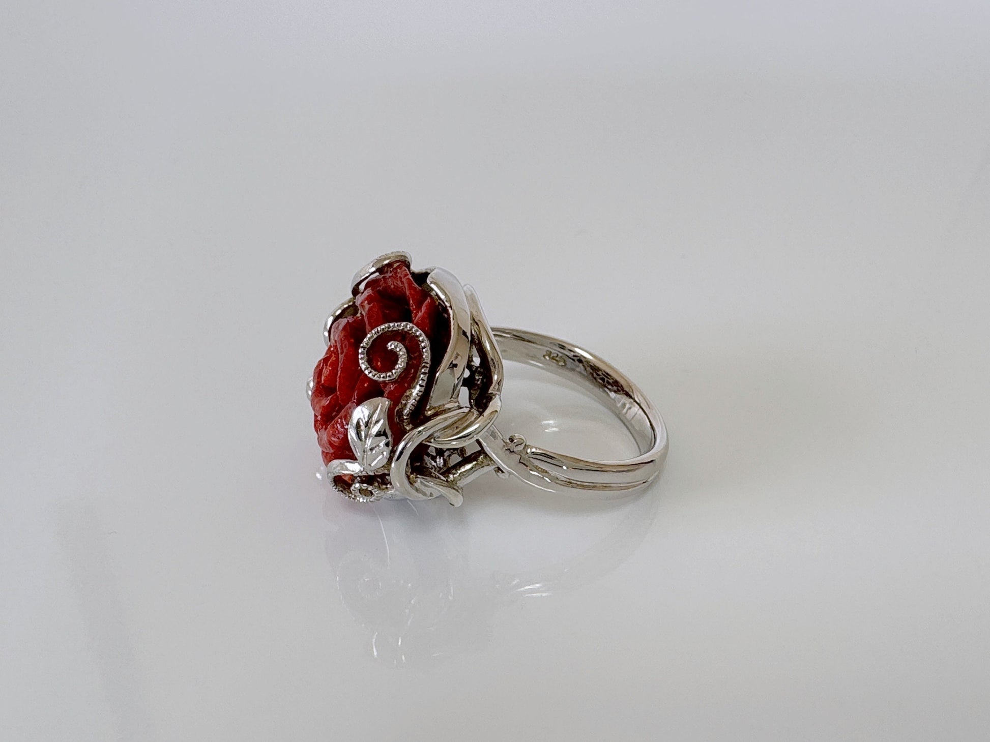 Natural sponge coral rose silver ring, size is Jp 17, US 8.5, UK Q, IT 57