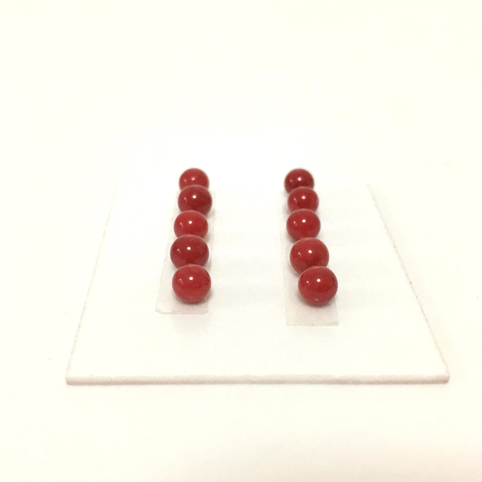 Red round bamboo coral 4mm for 10pcs, half-drilled hole, For jewelry making (dyed)