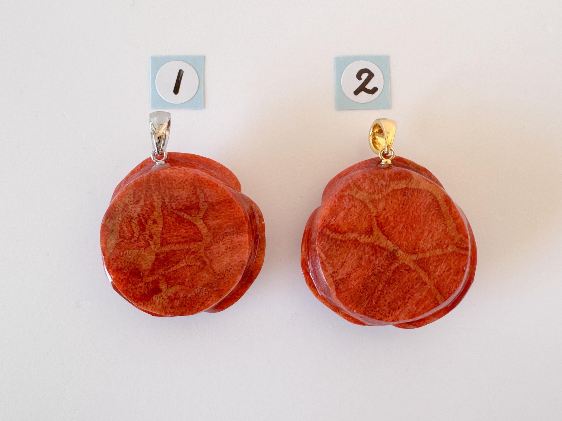 Each pendant showcases the unique reddish brown coral hues and delicate coral rose carving that make every piece truly one of a kind.