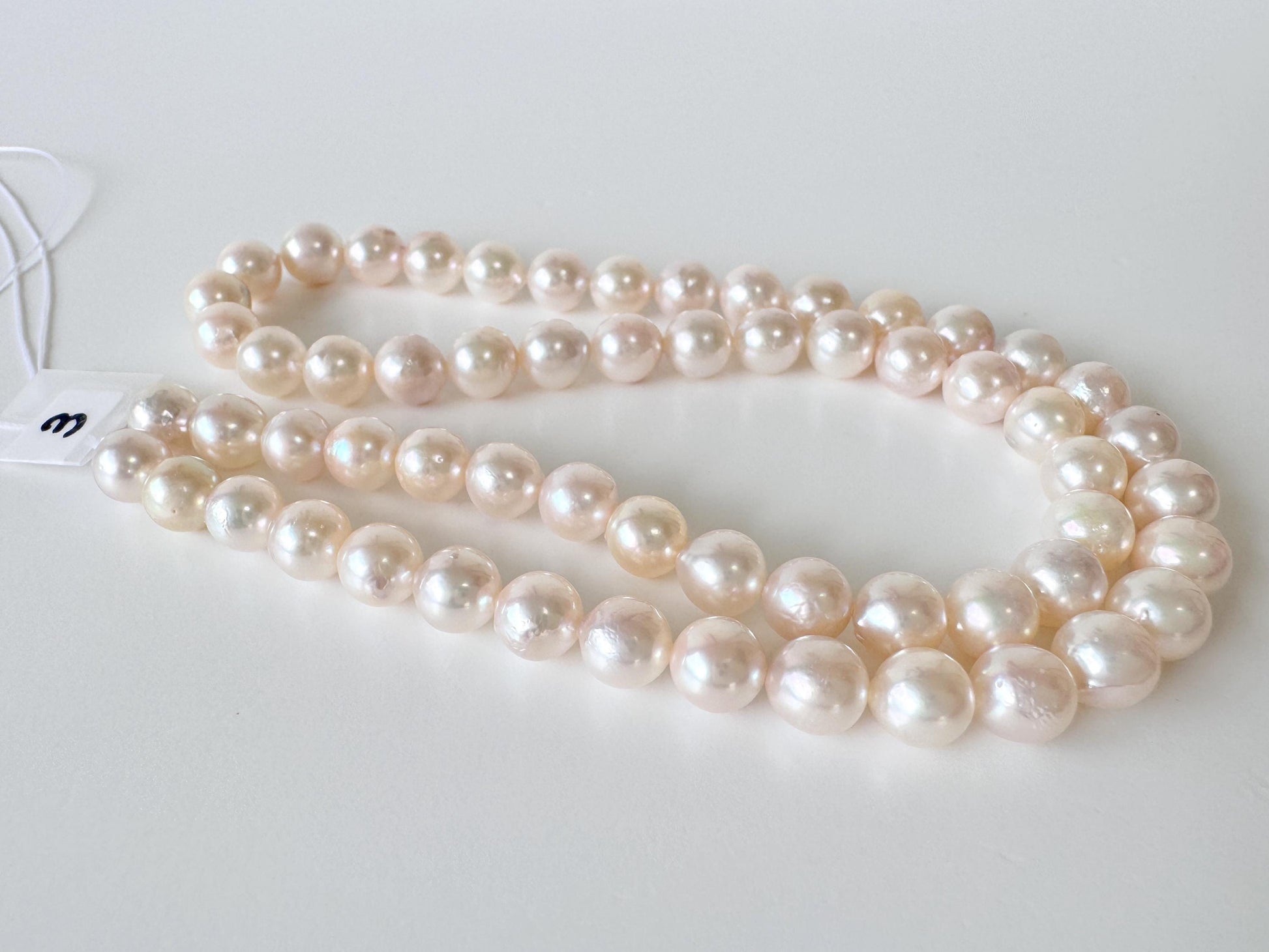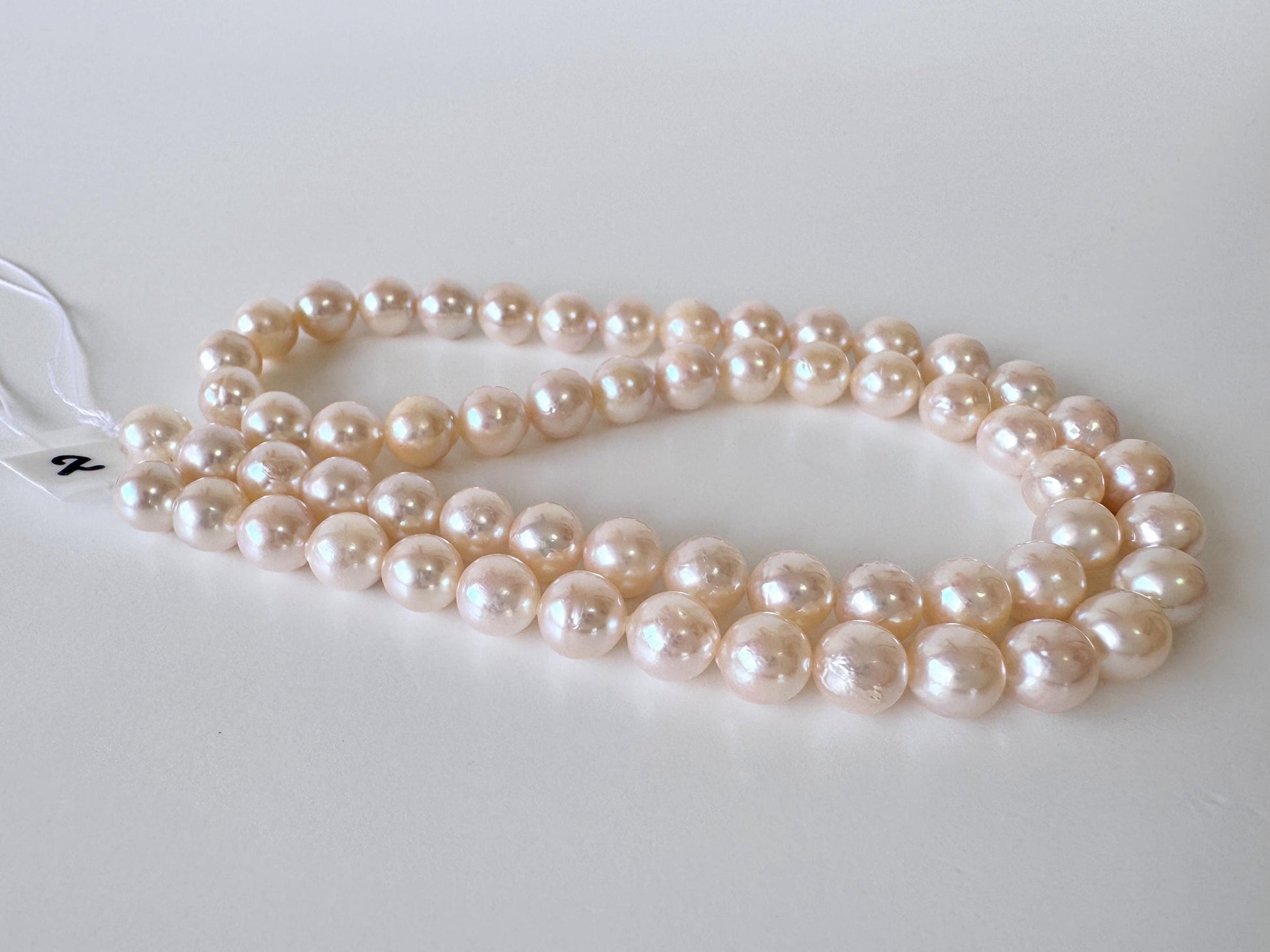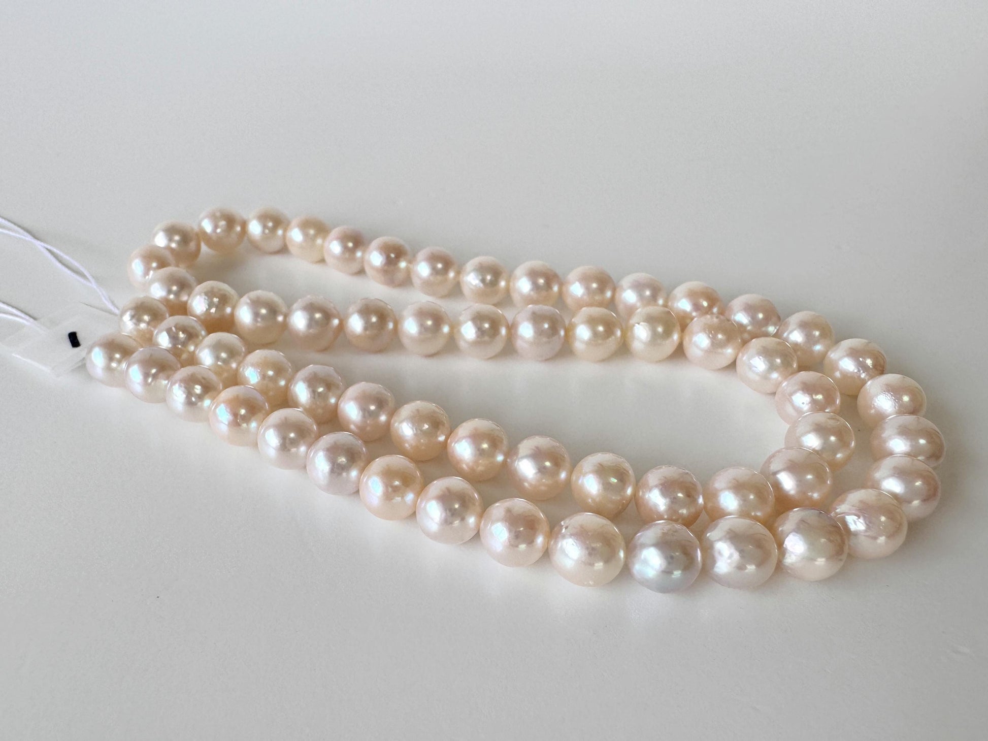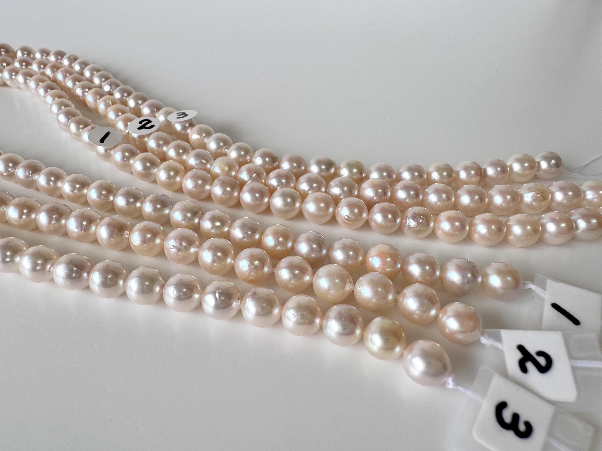 6.5-7mm Japanese White/Pink Akoya Pearl Beads, Genuine Akoya Pearl, Full Strand, 40cm , 15.7", Cultured Salt water pearl