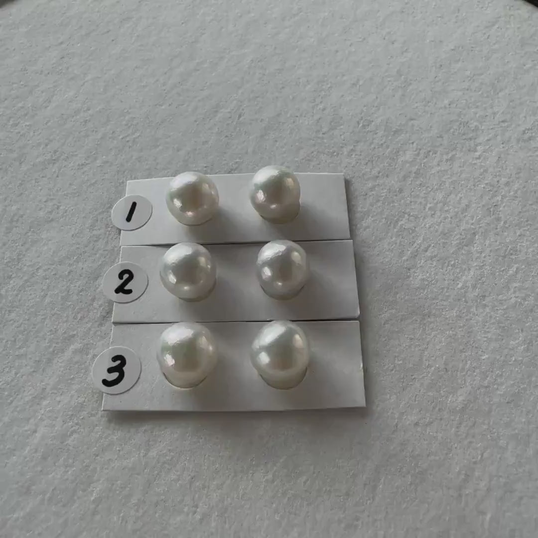 Japanese Akoya pearl 9.5mm, Light Blue Color, Half-Drilled Semi-round/Semi-baroque loose, Natural Color, Price per Pair, Salt water pearl