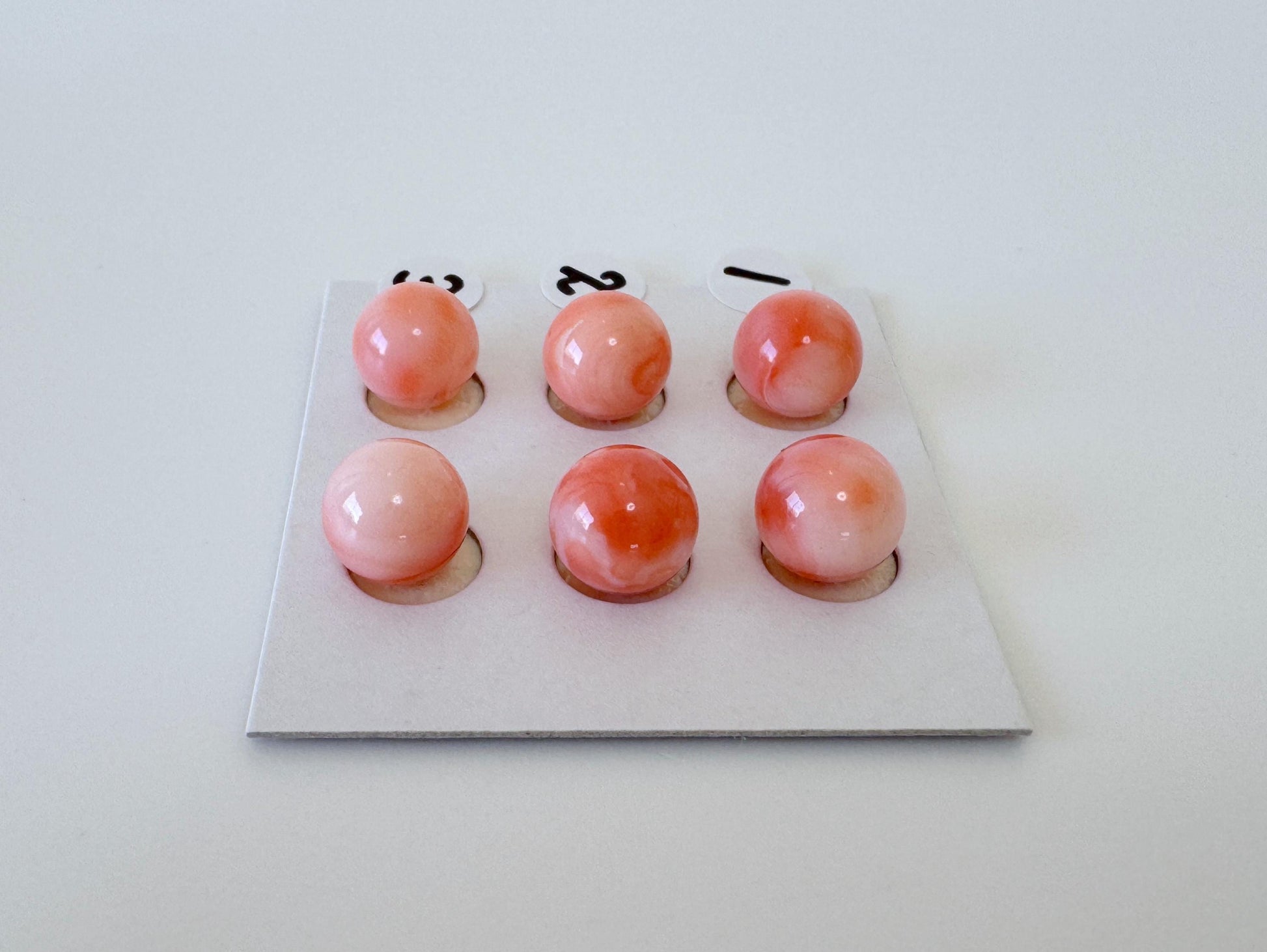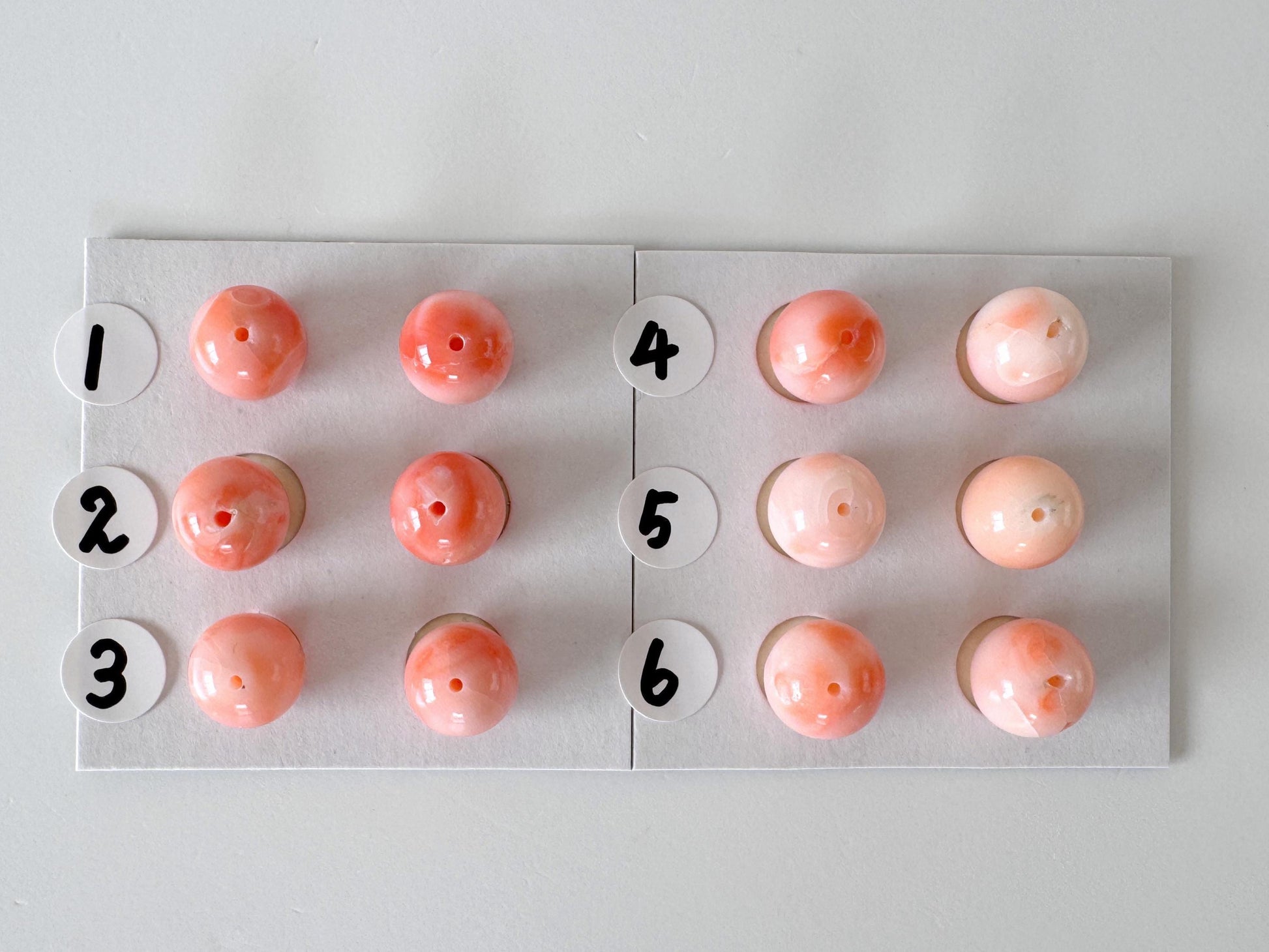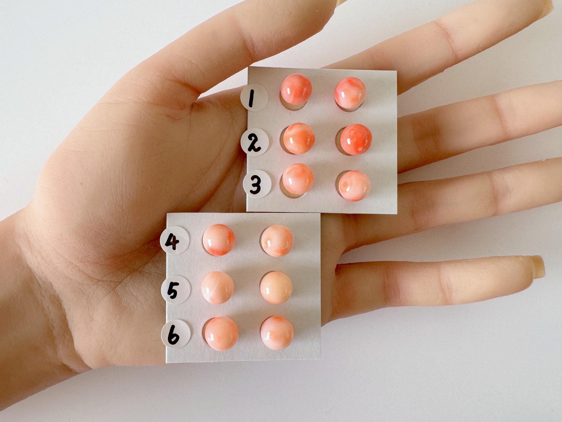 8.5-9mm Half Drilled Natural Deep Sea Coral Round Loose, Pink/Orange coral, for earring sets, natural color, price per pair