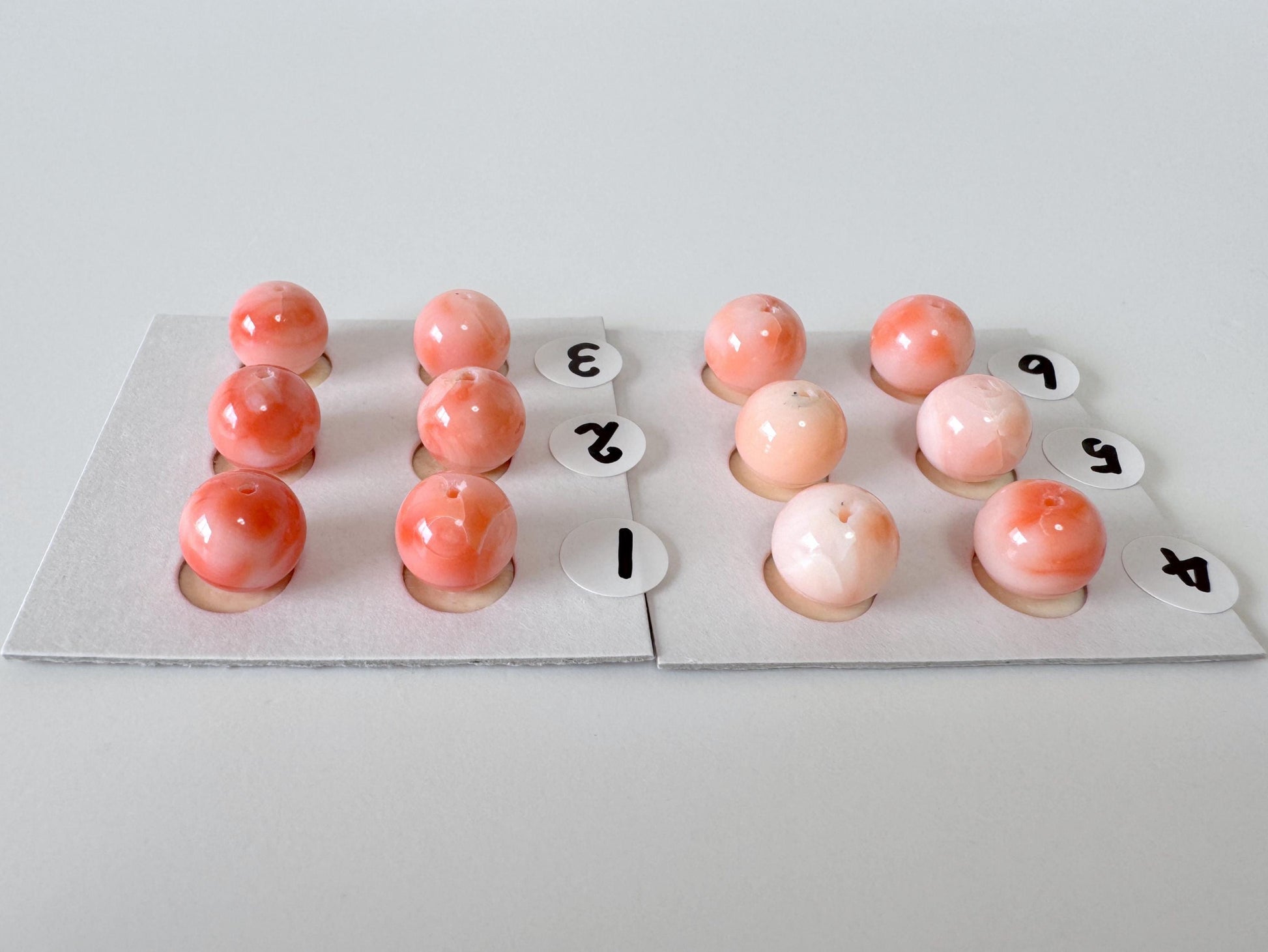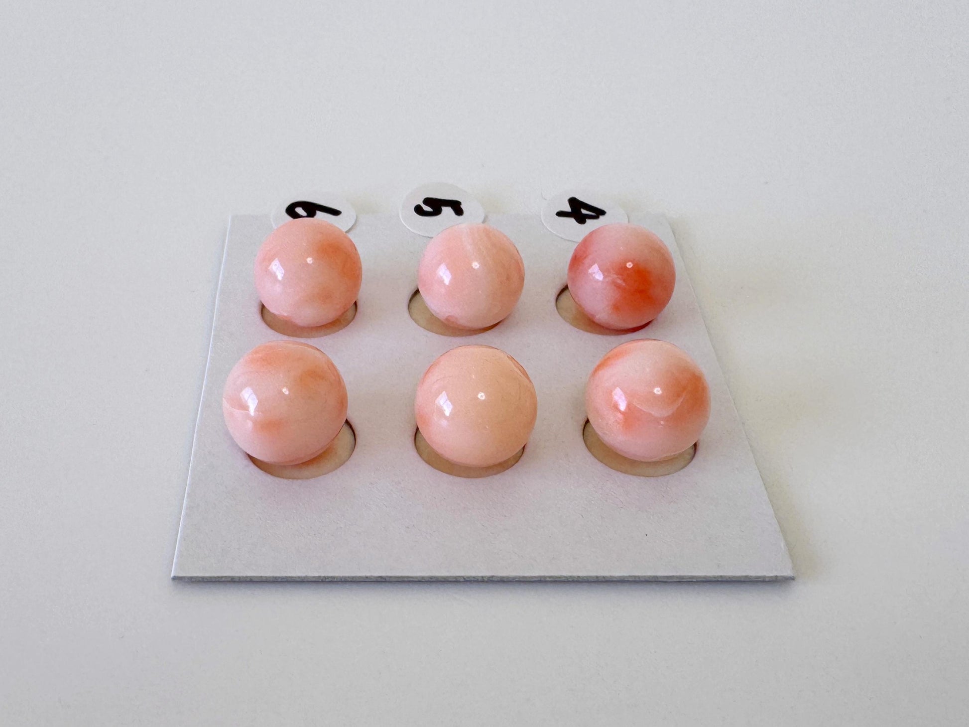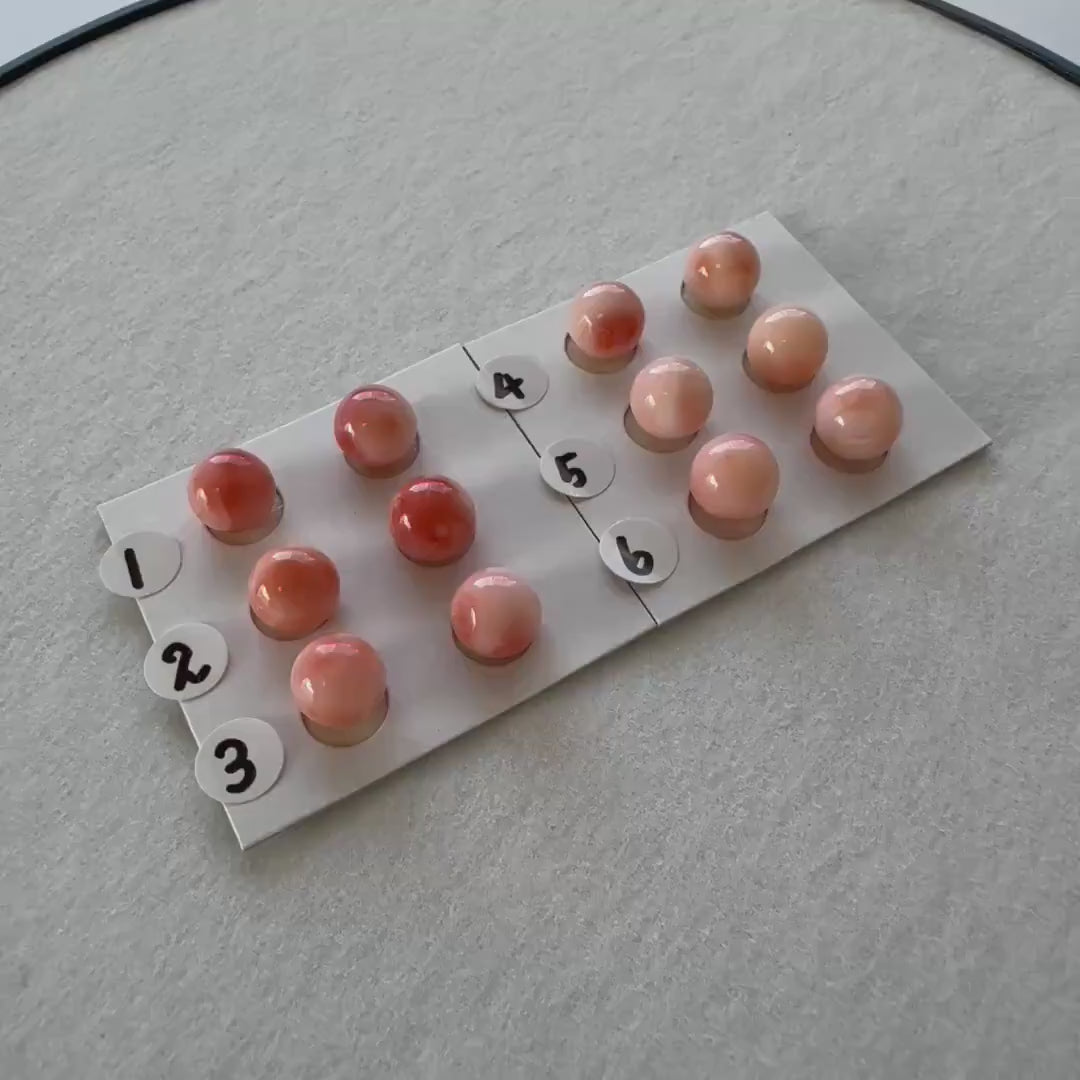 8.5-9mm Half Drilled Natural Deep Sea Coral Round Loose, Pink/Orange coral, for earring sets, natural color, price per pair