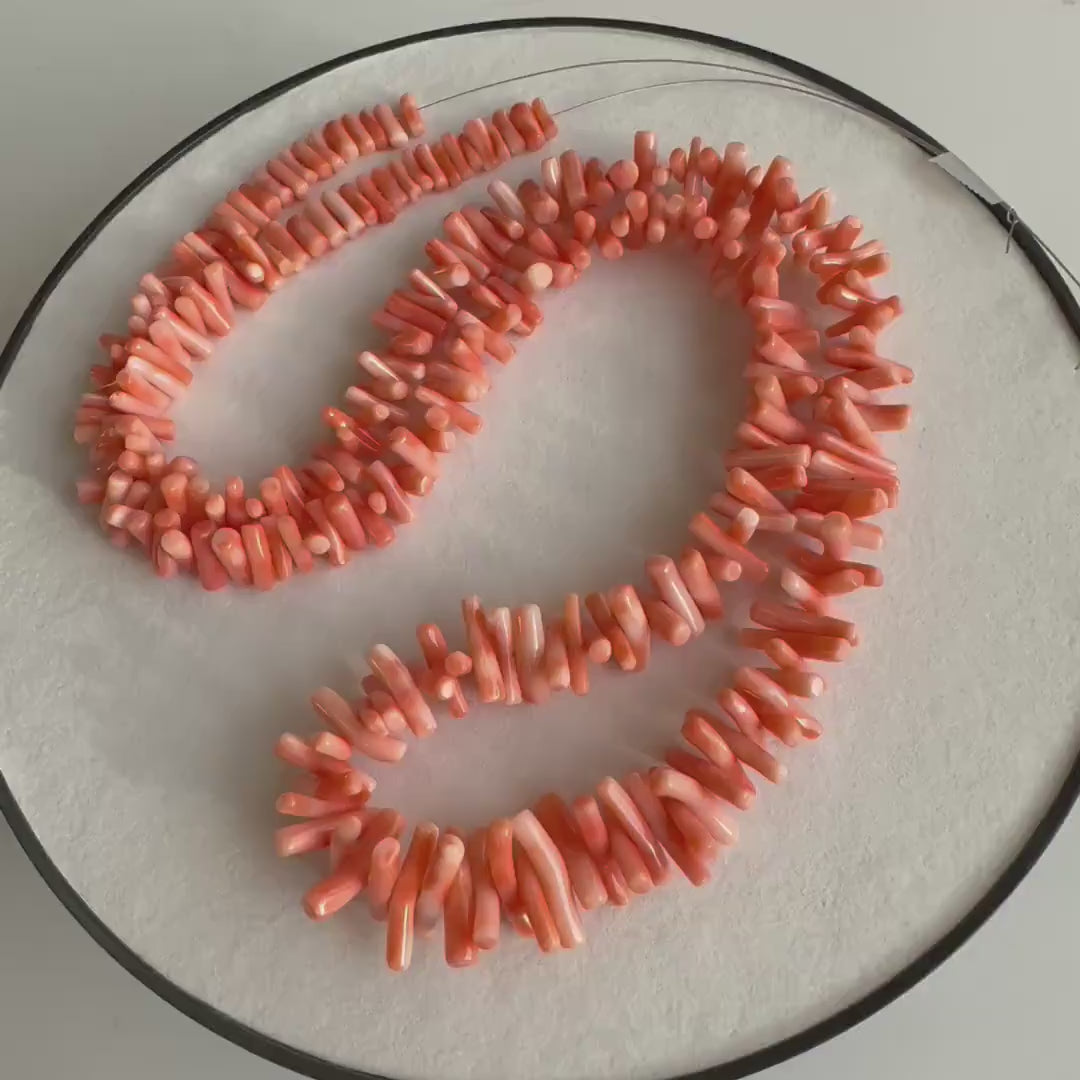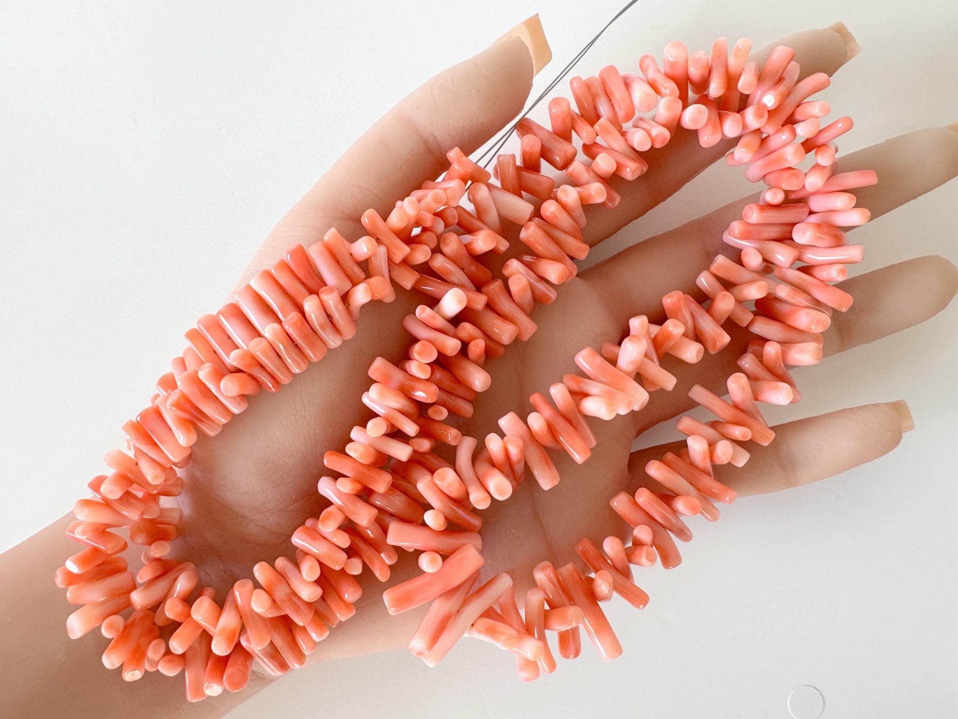 Discover the captivating beauty of natural coral branch strand, featuring delicate pink and orange hues inspired by the deep sea.