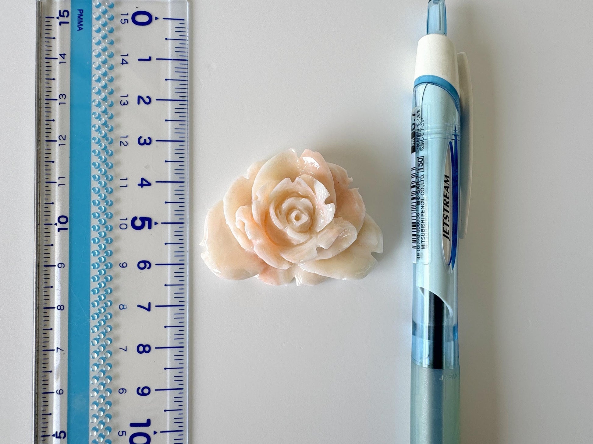 ※ Please see the photo with a ruler (Centimeters) for the actual size.