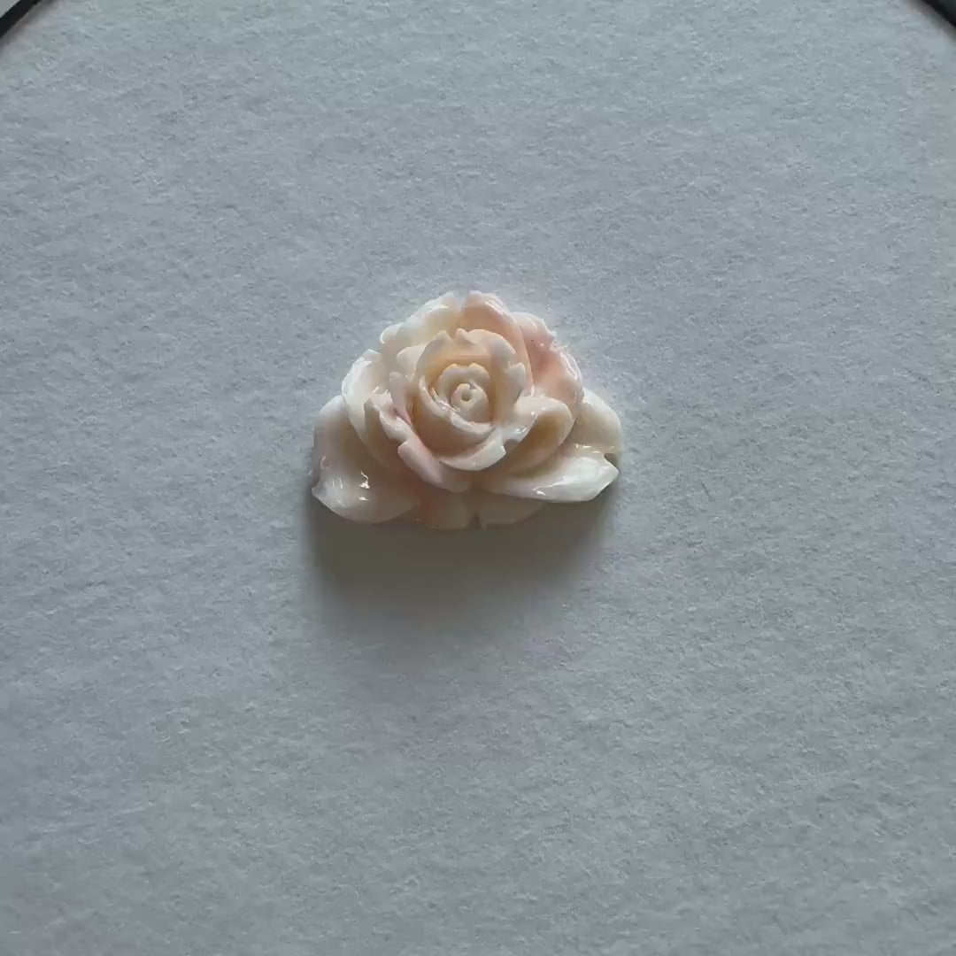 Natural Deep Sea Coral Rose Carving Loose, Natural Pink/White Color Coral, 43x34mm, Flat Back, For Jewelry Making