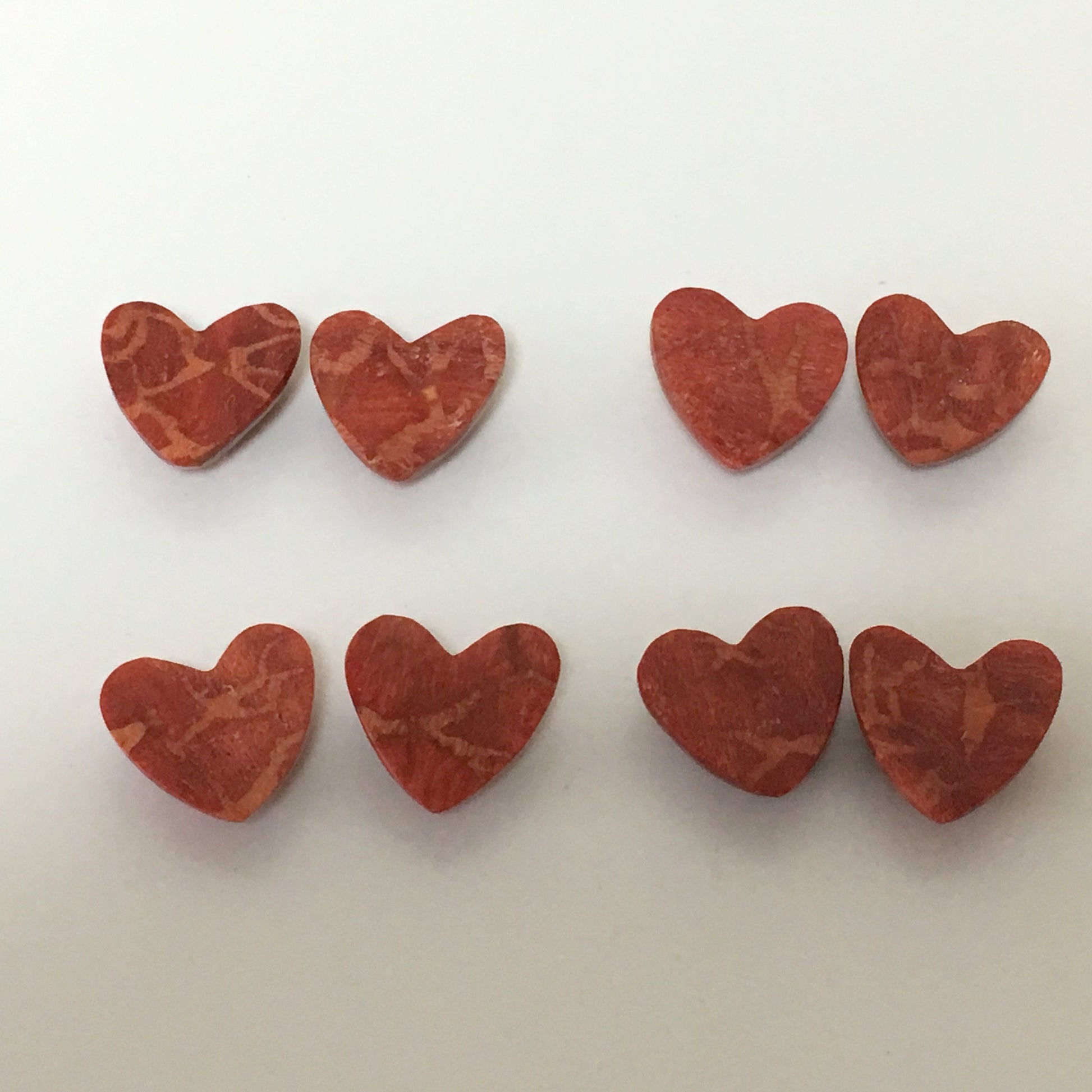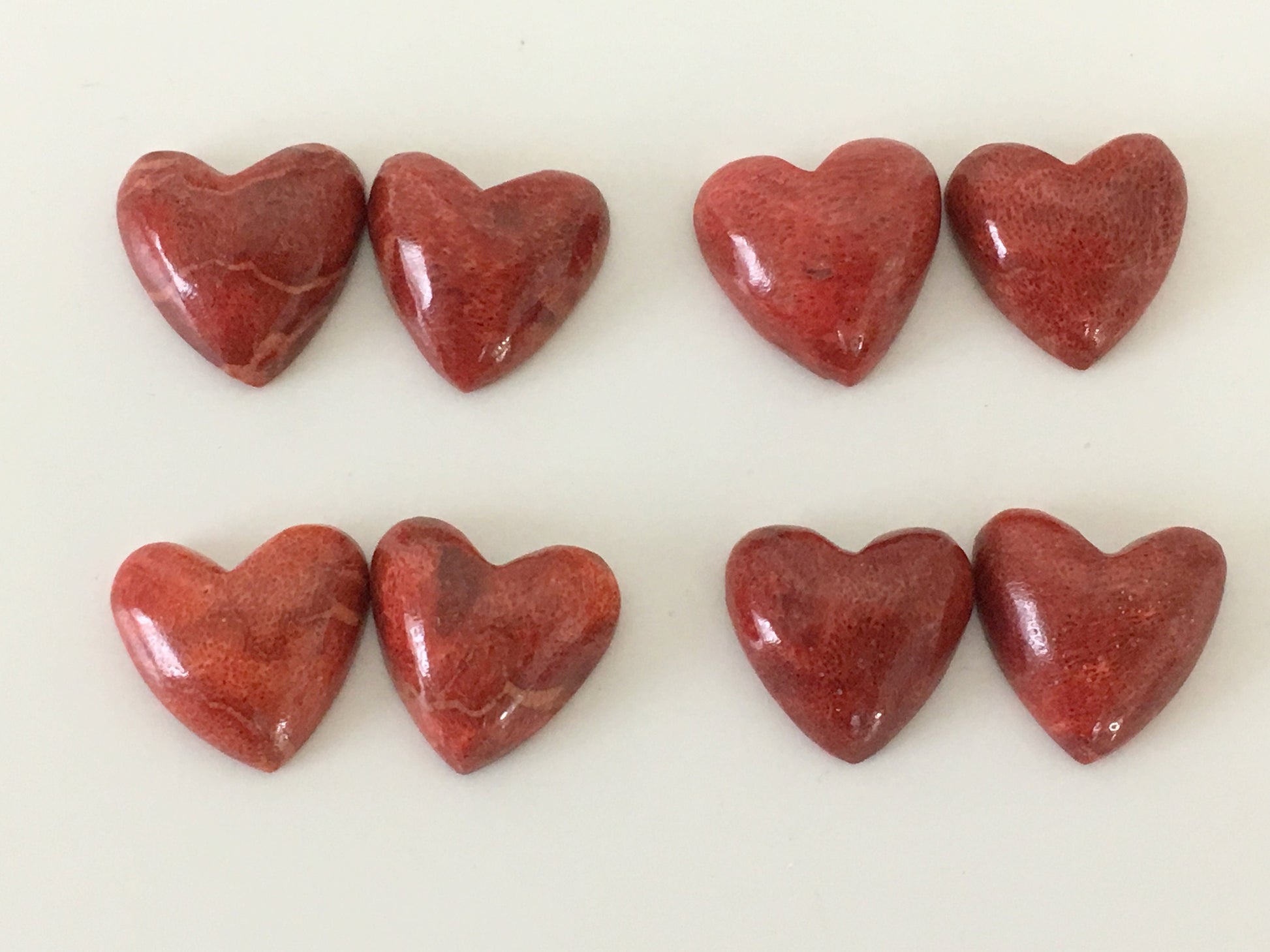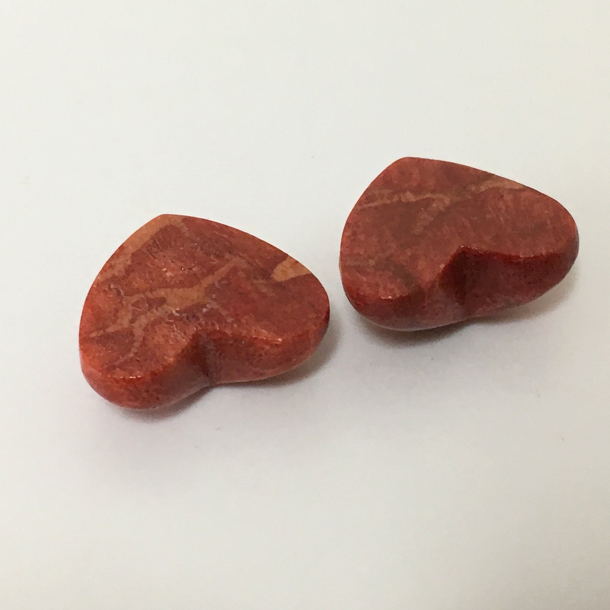 Natural Sponge Coral 18mm heart pair loose, Apple coral heart loose, For jewelry making, Price per pair