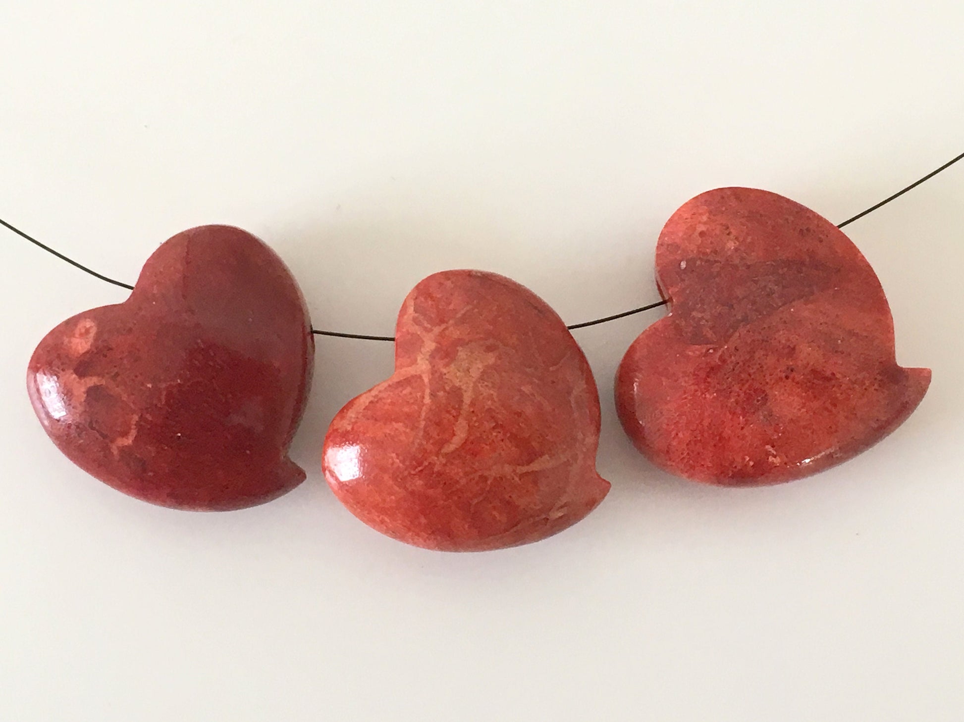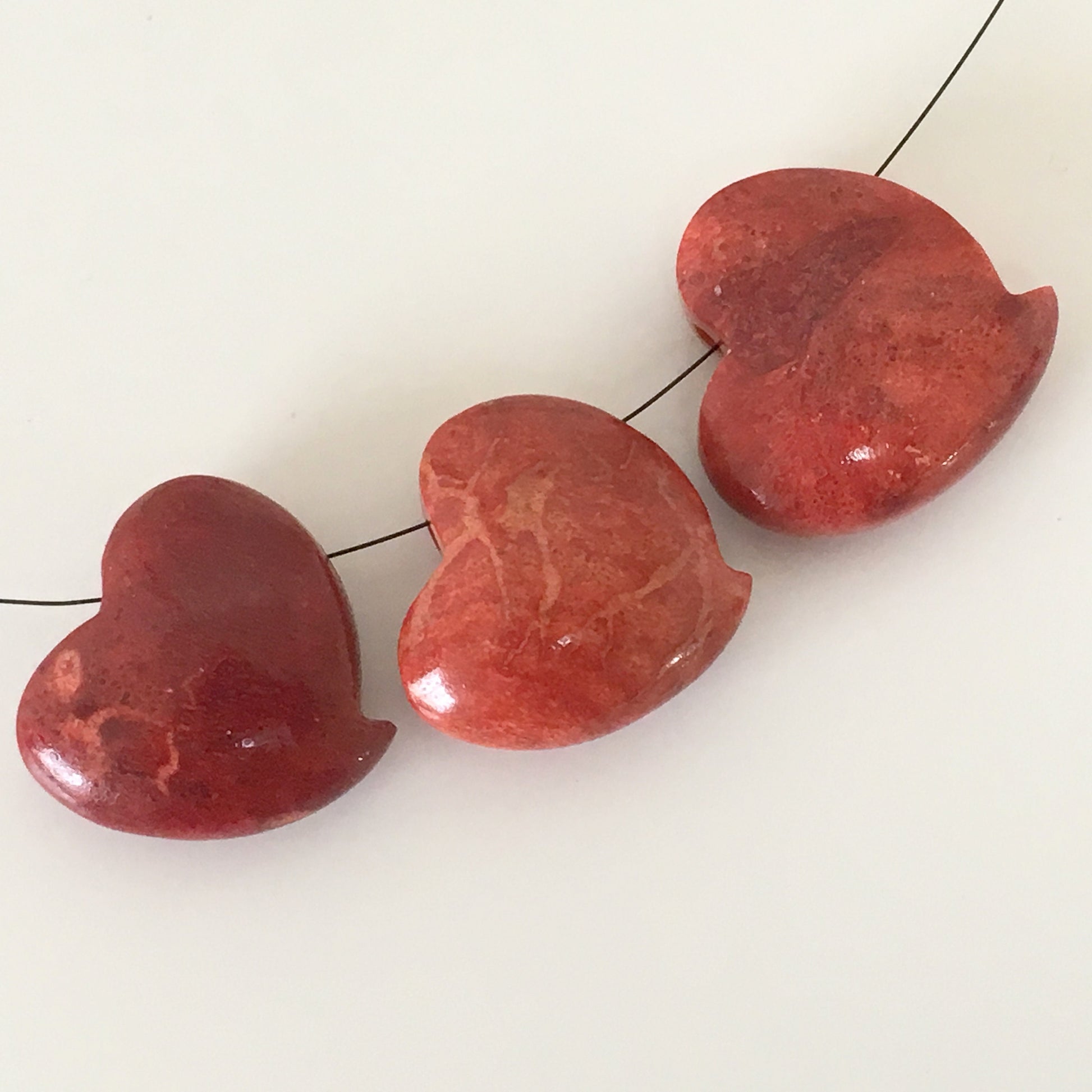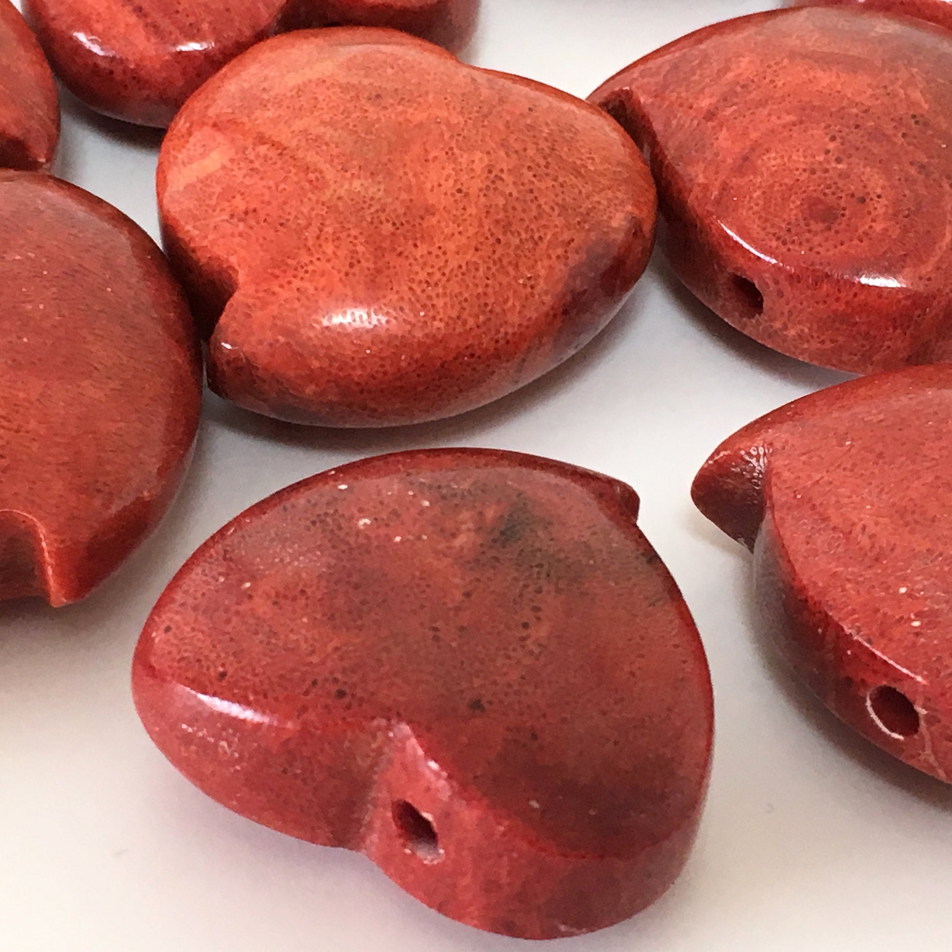 Natural sponge coral heart loose over 14g, under 35mm, Apple coral heart loose, For jewelry making, Price per piece