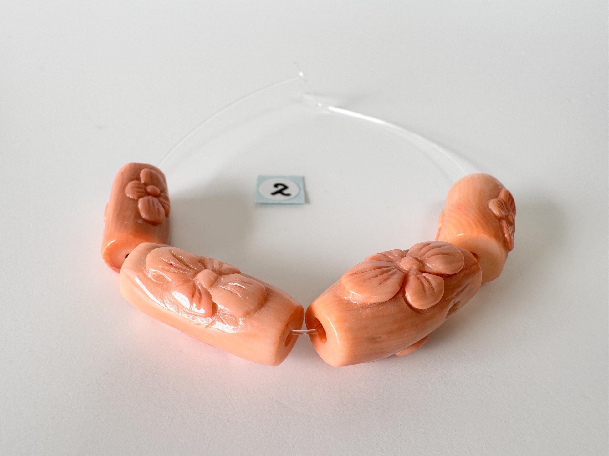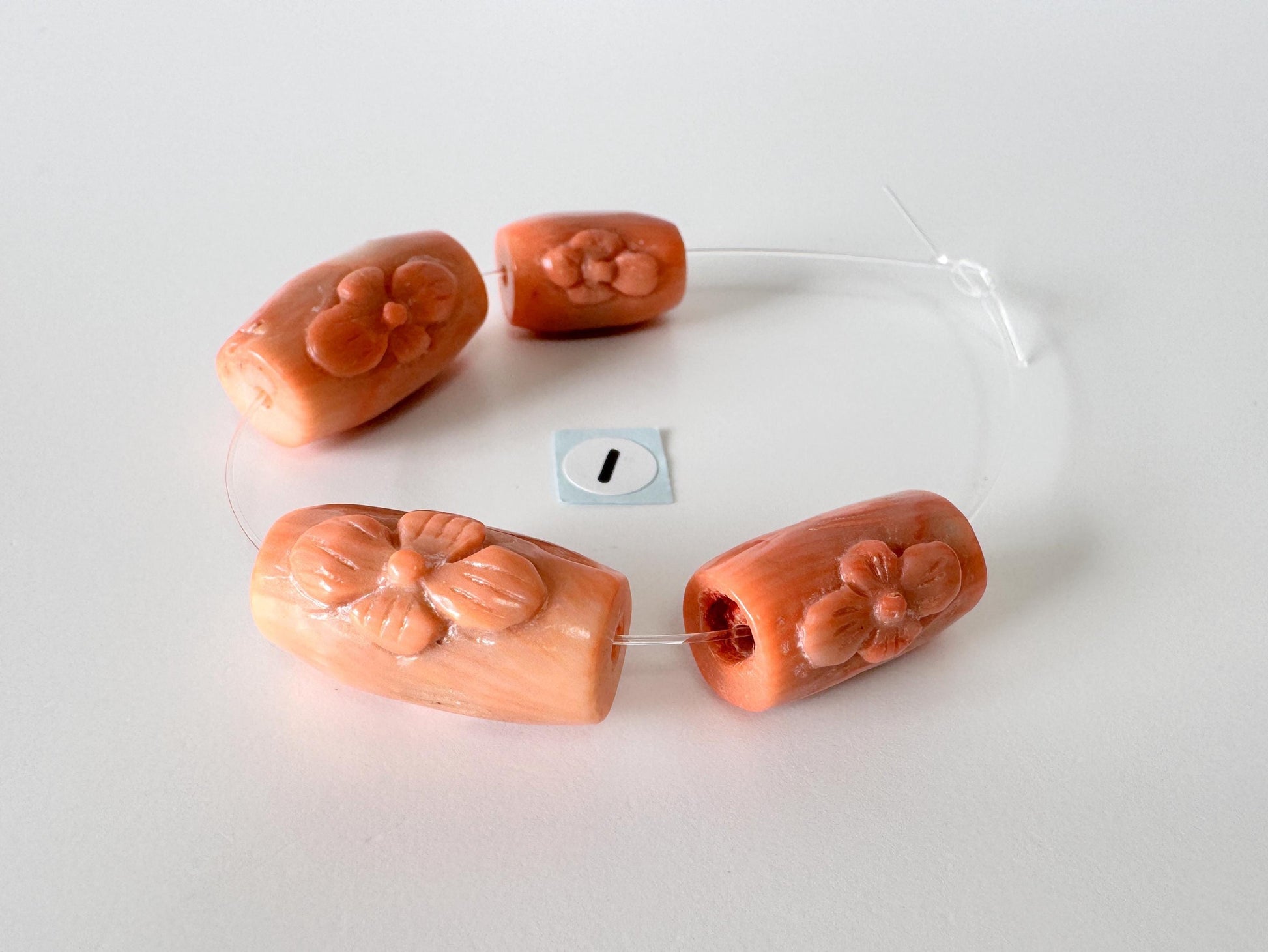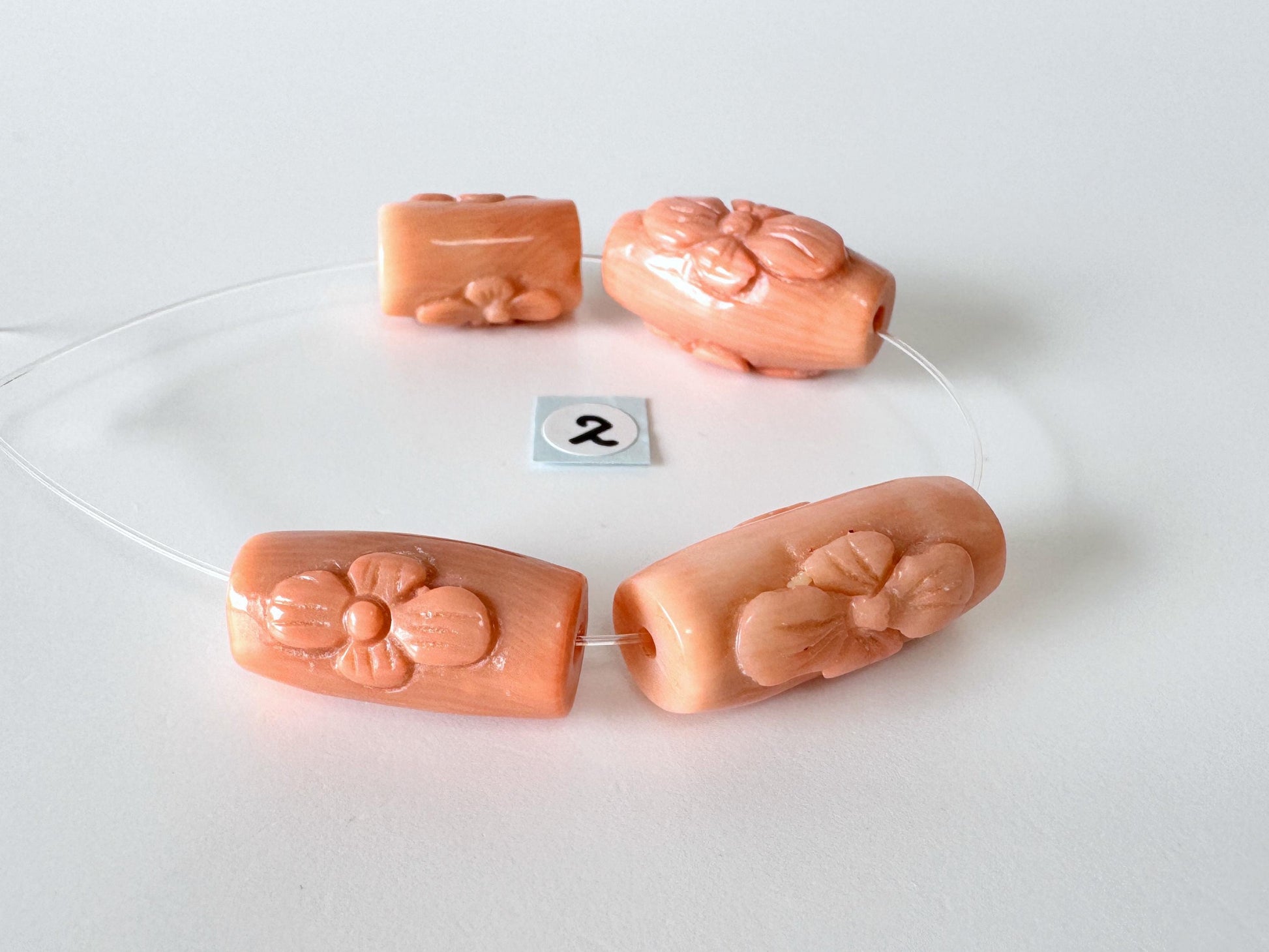 Orange Bamboo Coral Short Strand Beads, Set of 4 pcs., Flower-Carved Cylinder Shaped Beads, Orange Sea Bamboo, price per strand (dyed)