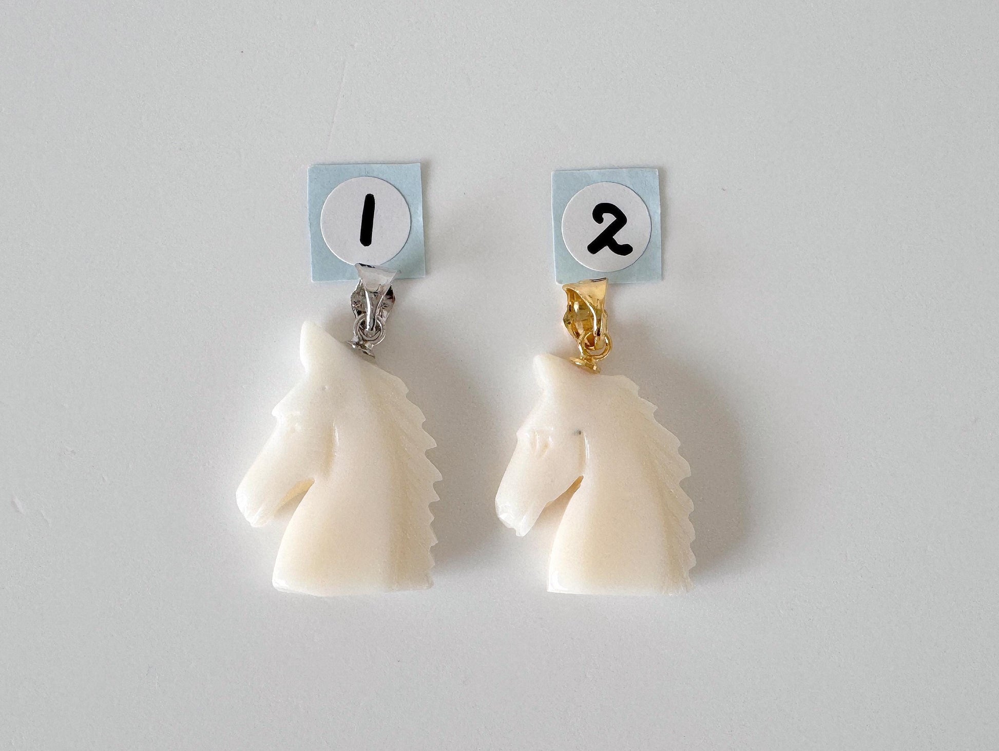 Natural White Coral Horse Carving Pendant, Carved on both sides, Silver bail, Price per Piece