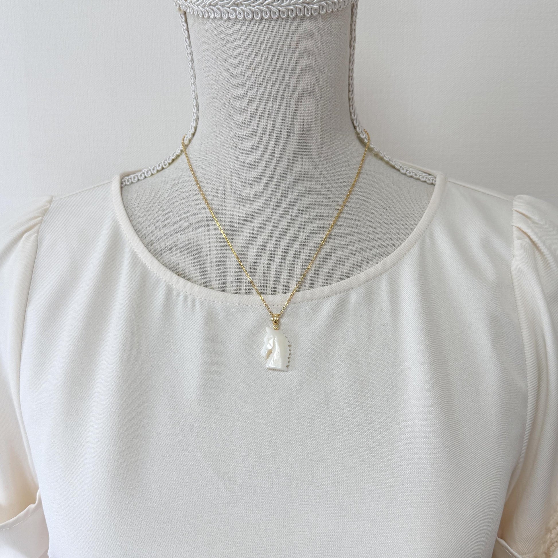 White Coral Horse Pendant: Double-Sided Carving - Natural Coral Jewelry, Silver Bail, Handcrafted Accessory
