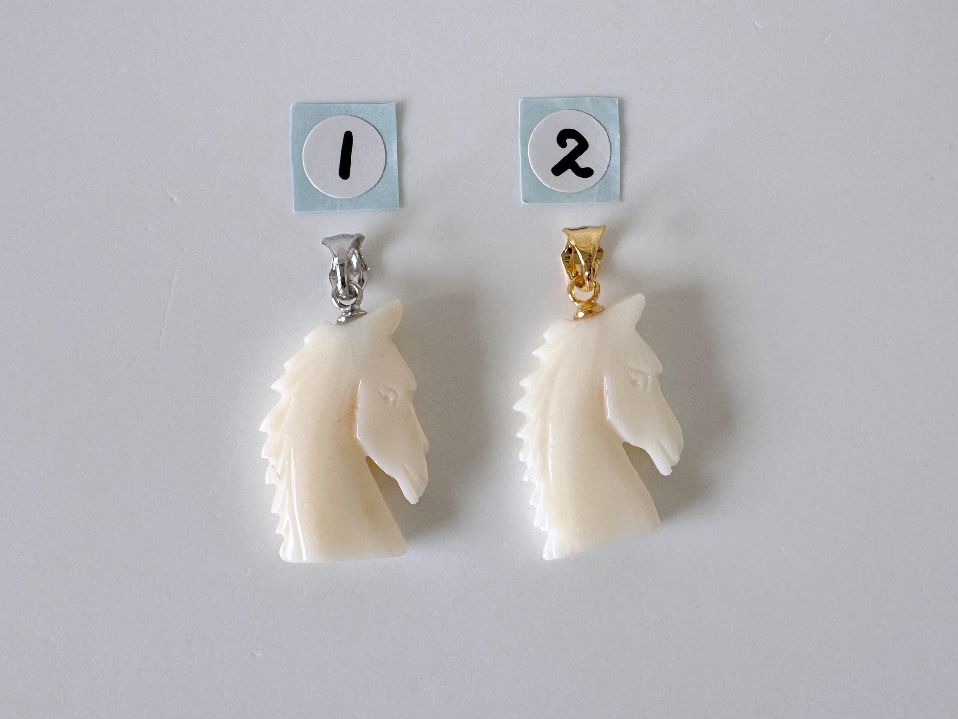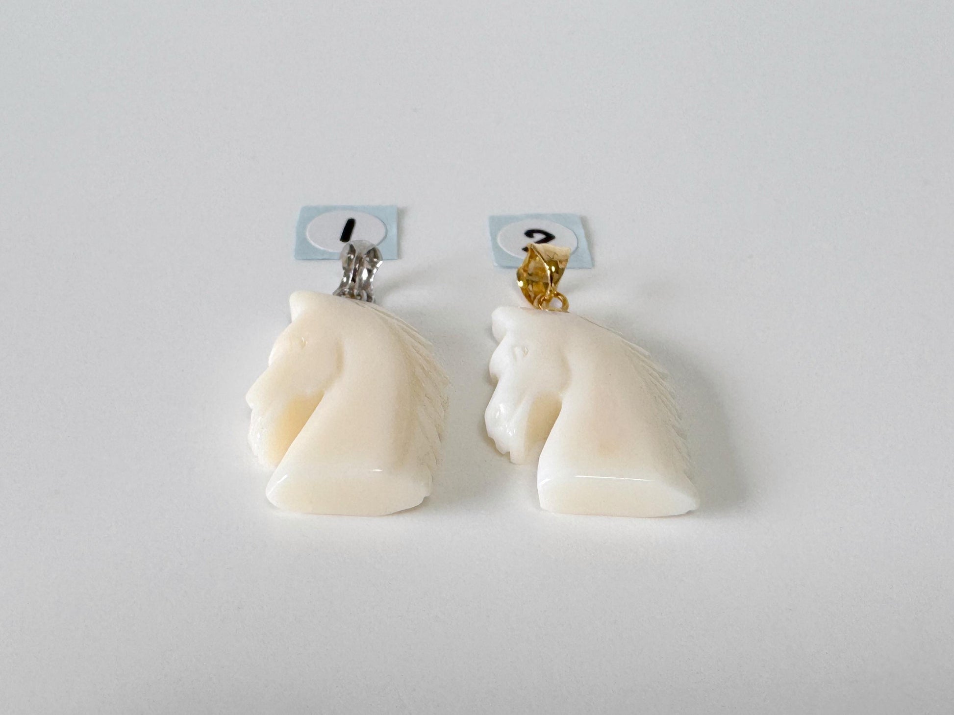 Natural White Coral Horse Carving Pendant, Carved on both sides, Silver bail, Price per Piece