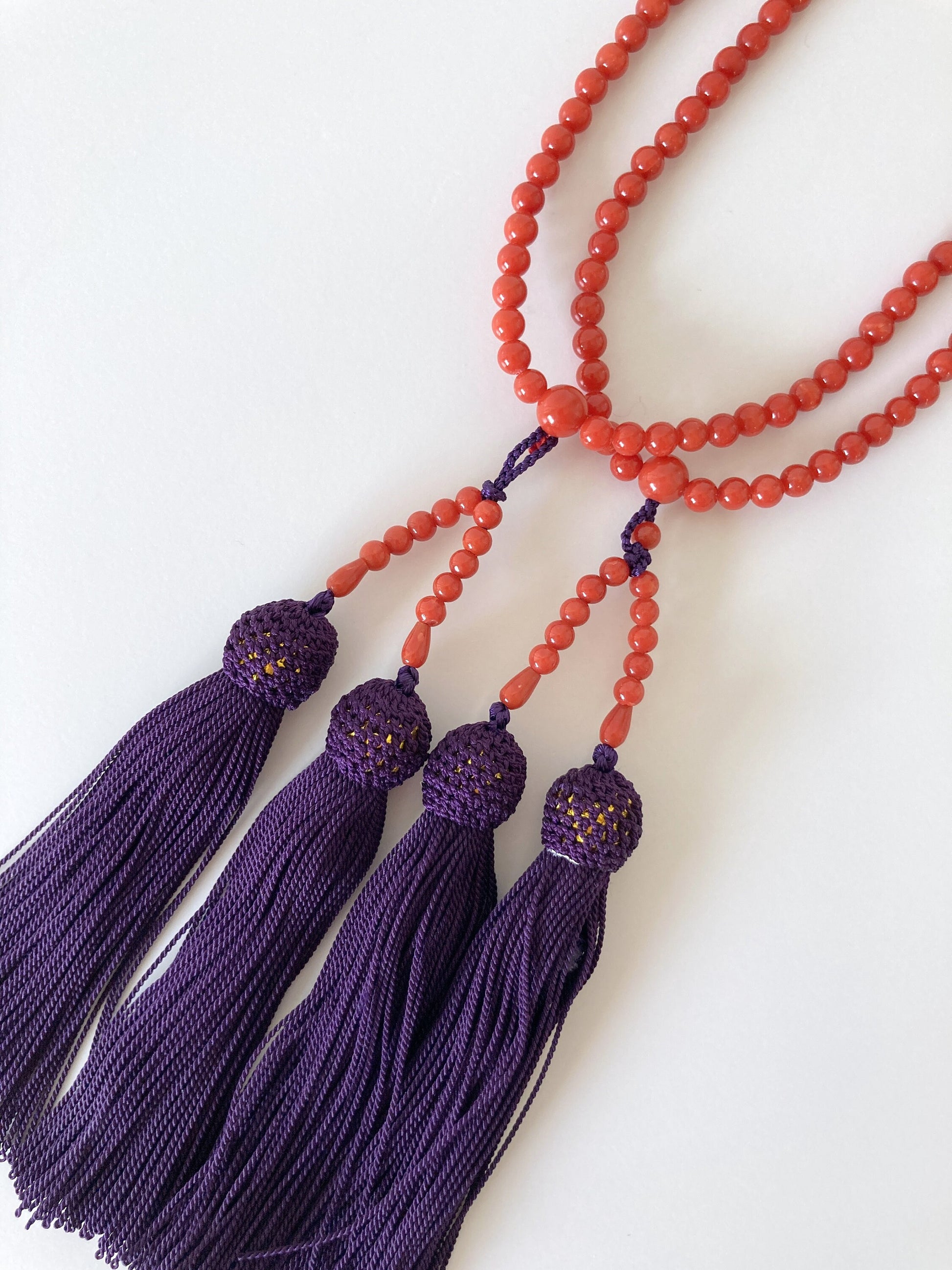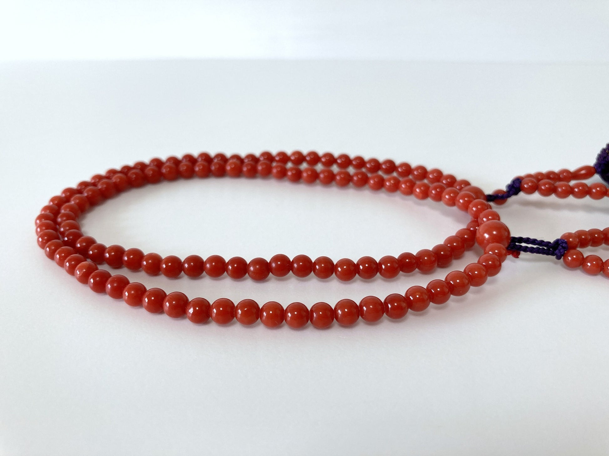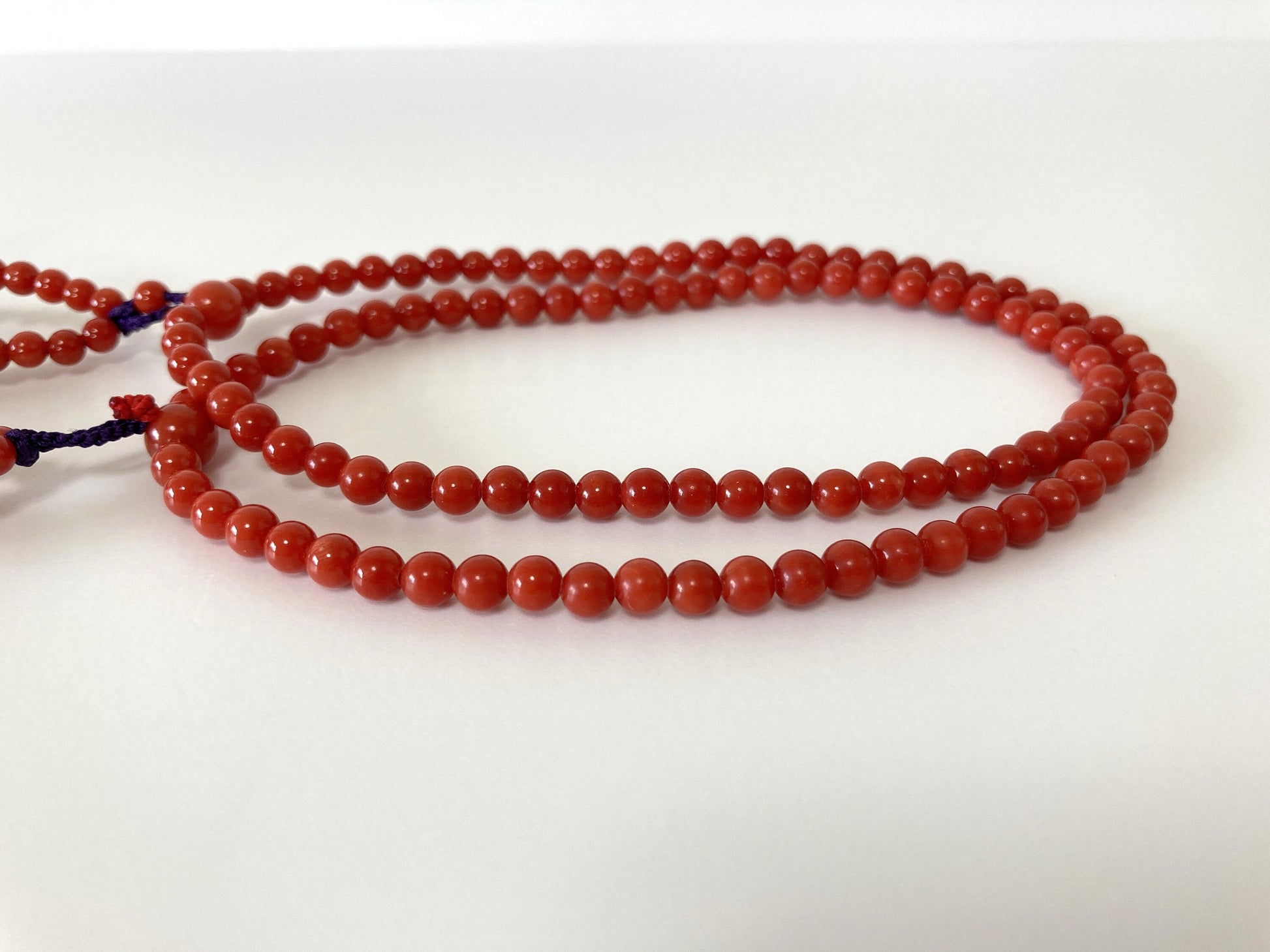 Japanese Rosary, Coral Prayer Beads, Natural Mediterranean Red Coral, 4.5-4.7mm Round Beads, 108 Pcs., Pure Silk, Japanese Style Rosary
