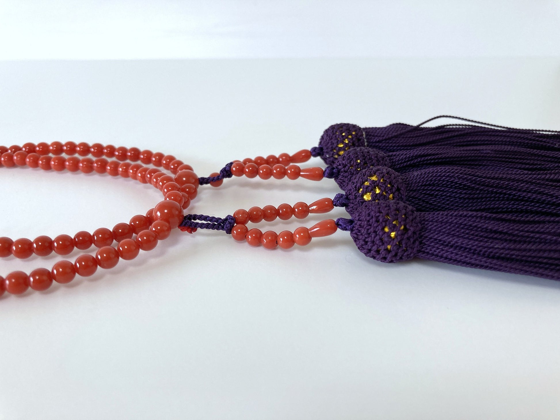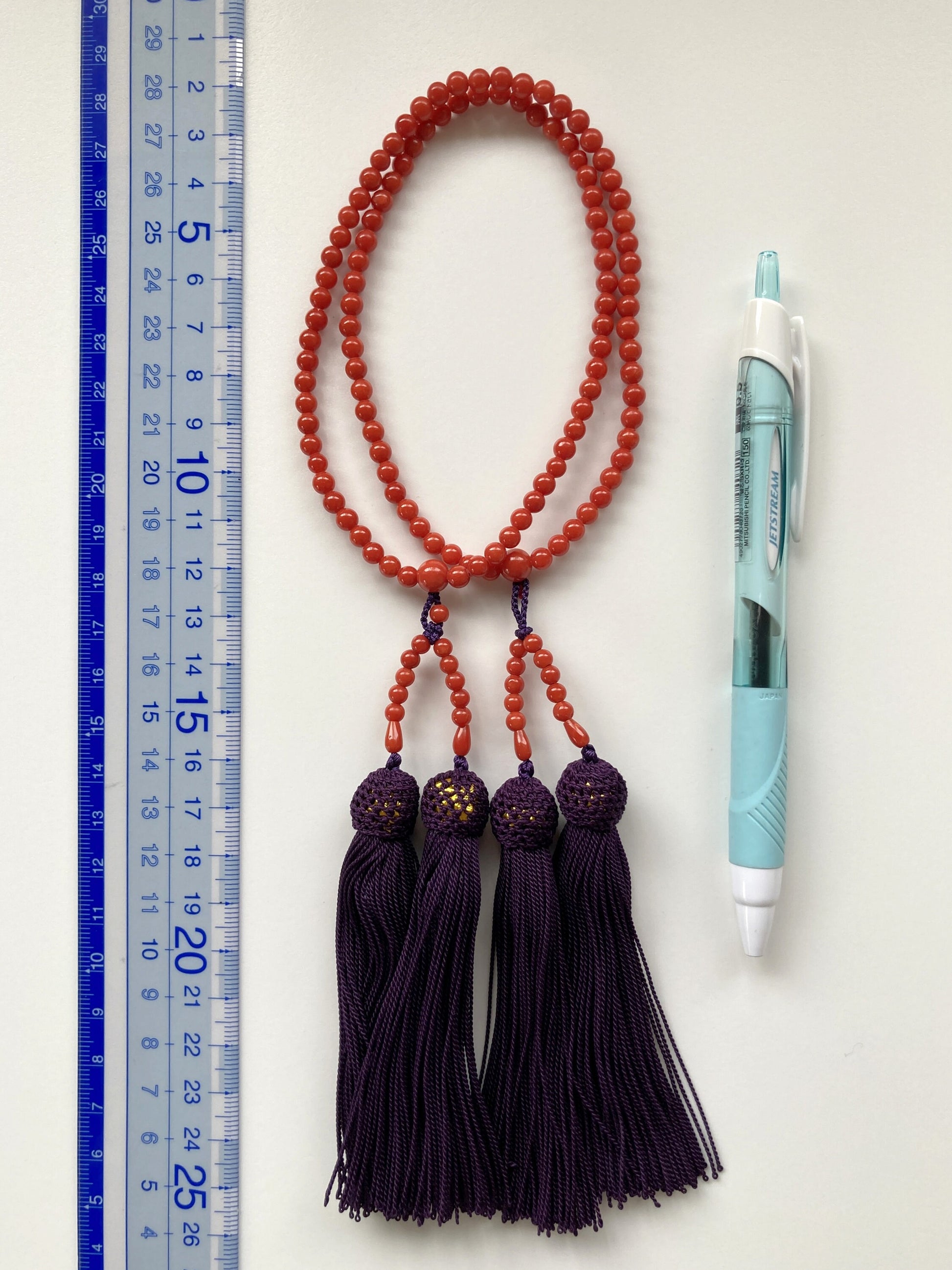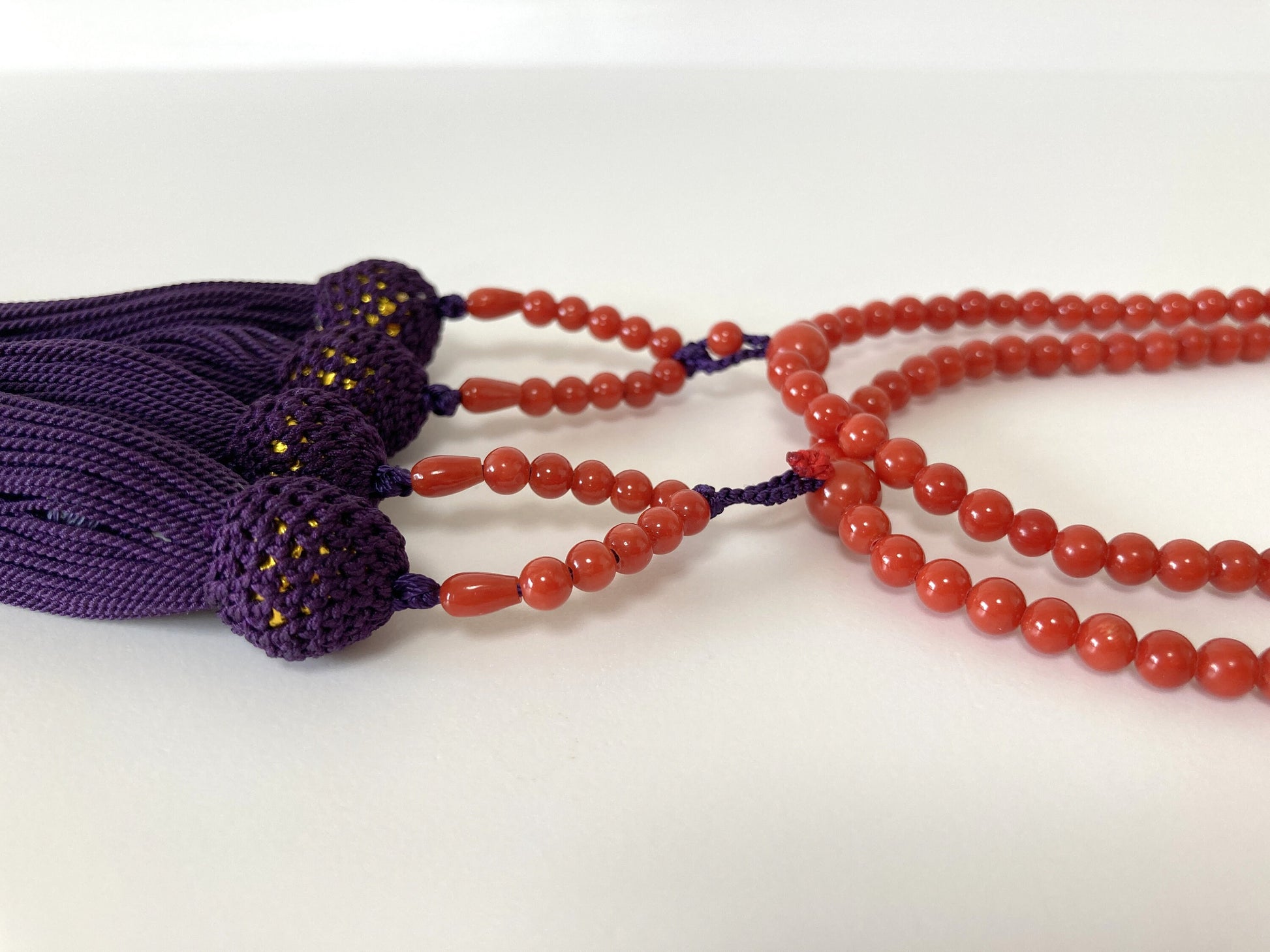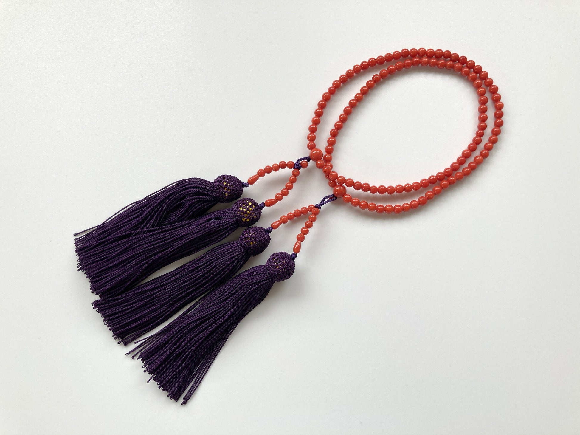 Japanese Rosary, Coral Prayer Beads, Natural Mediterranean Red Coral, 4.5-4.7mm Round Beads, 108 Pcs., Pure Silk, Japanese Style Rosary