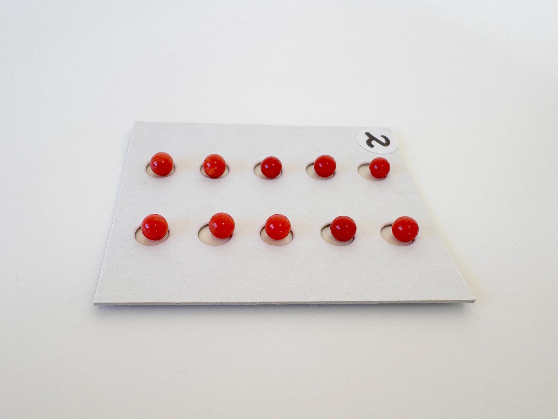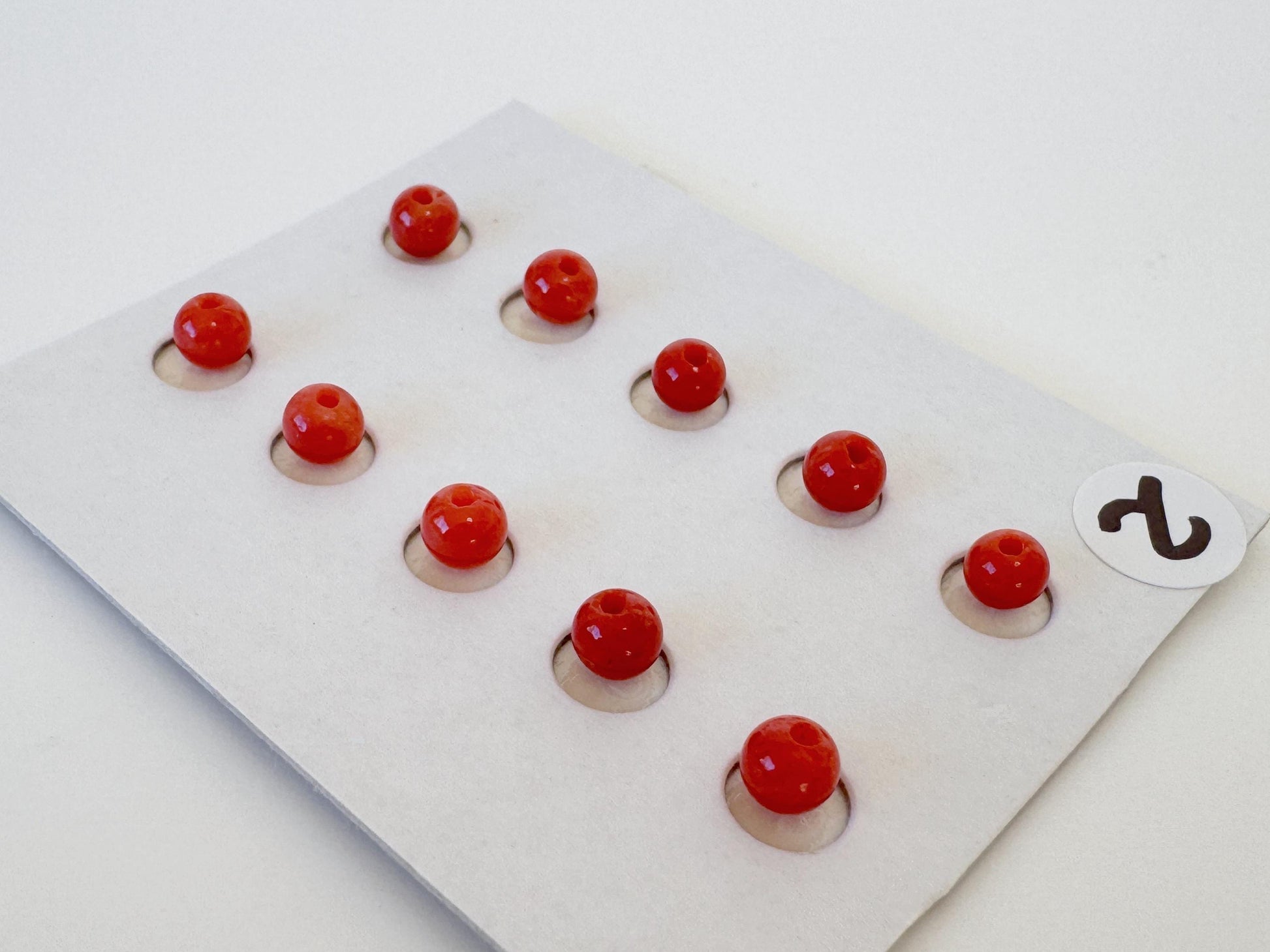 Natural Mediterranean Red Coral Round Loose 3.7-4mm with half-drilled hole, for Jewelry Making, Natural Color, Price per 10pcs set