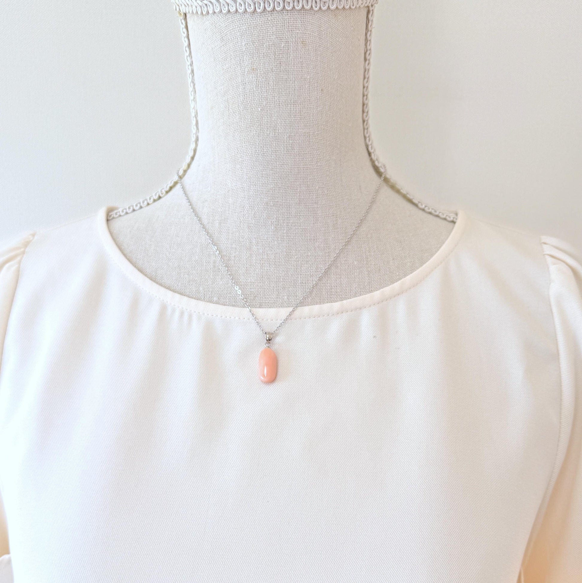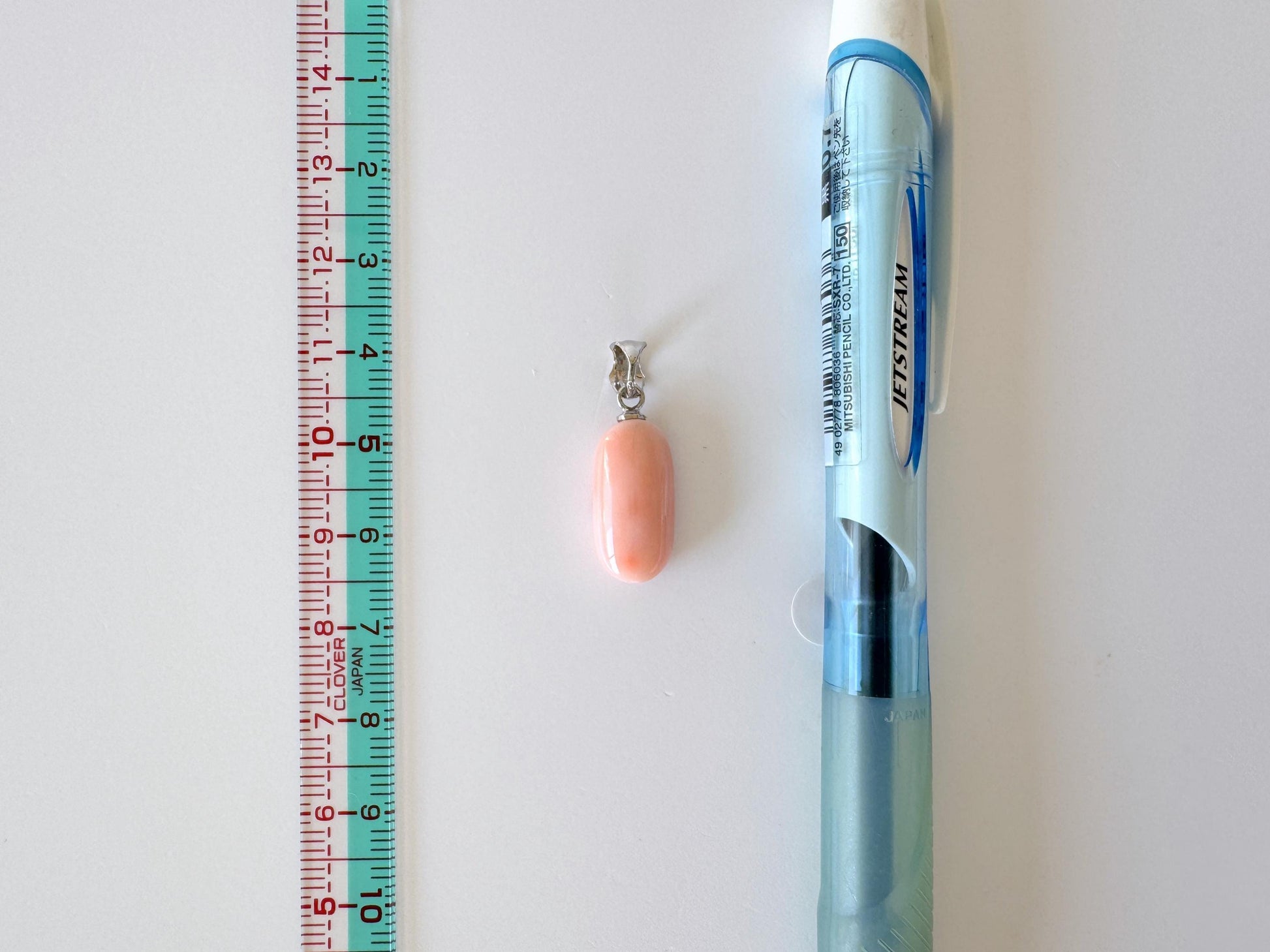 Natural Deep Sea Coral Oval Cabochon Pendant, 17x8.8mm, Natural Pink/Orange color coral, Silver (Rhodium-Plated) bail