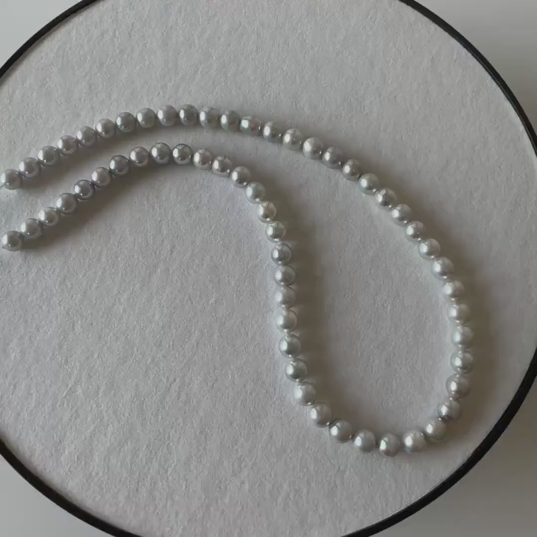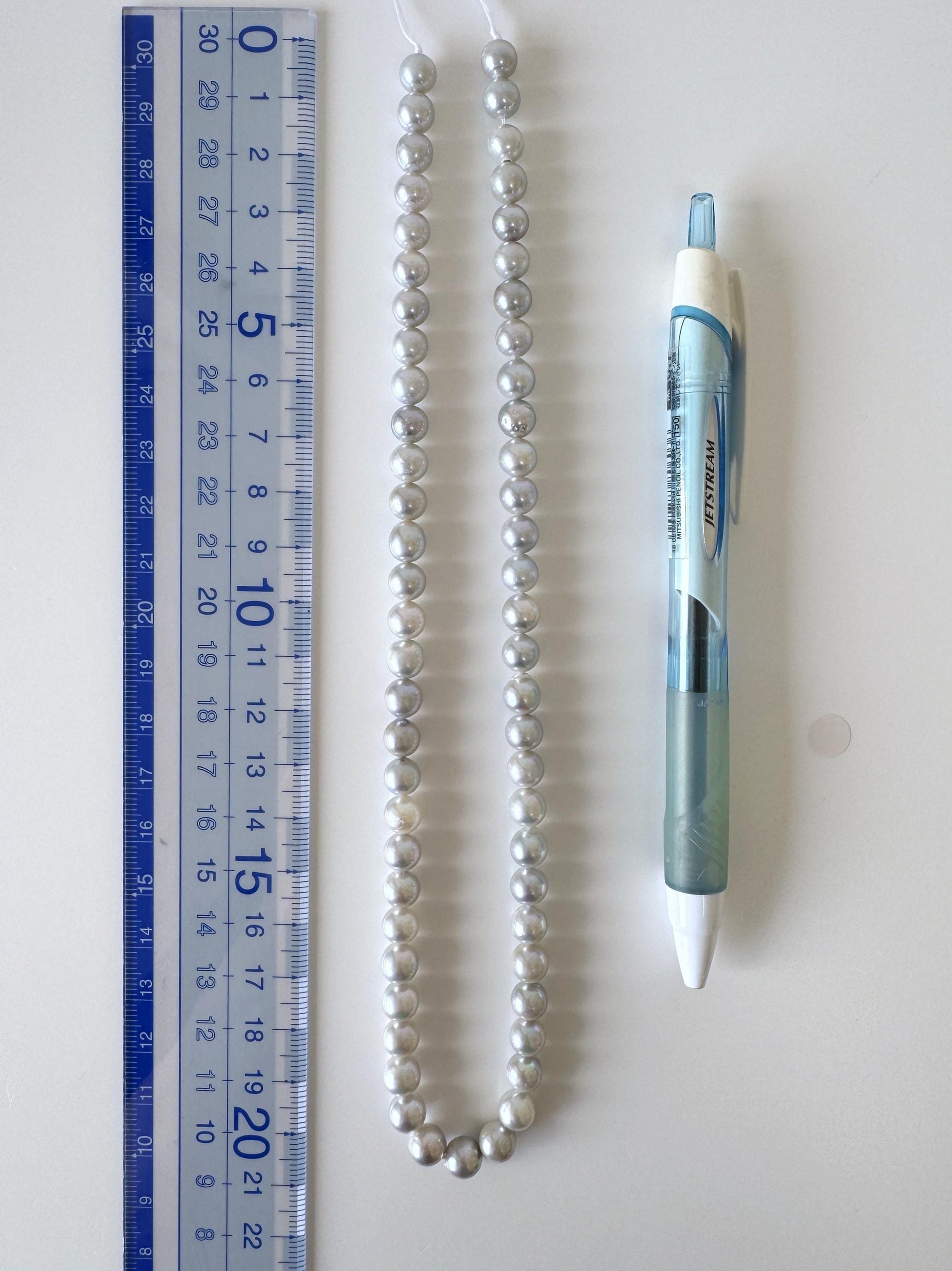 6.5-7mm Japanese Akoya Pearl Beads, Blue/Silver color pearl (Cobalt treated), Genuine Salt water Akoya Pearl, Full Strand, 40cm , 15.7"