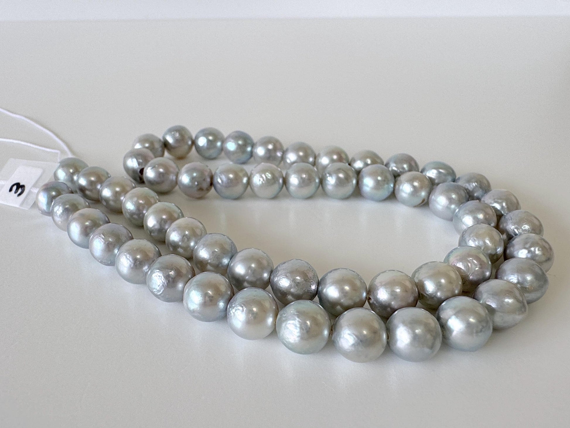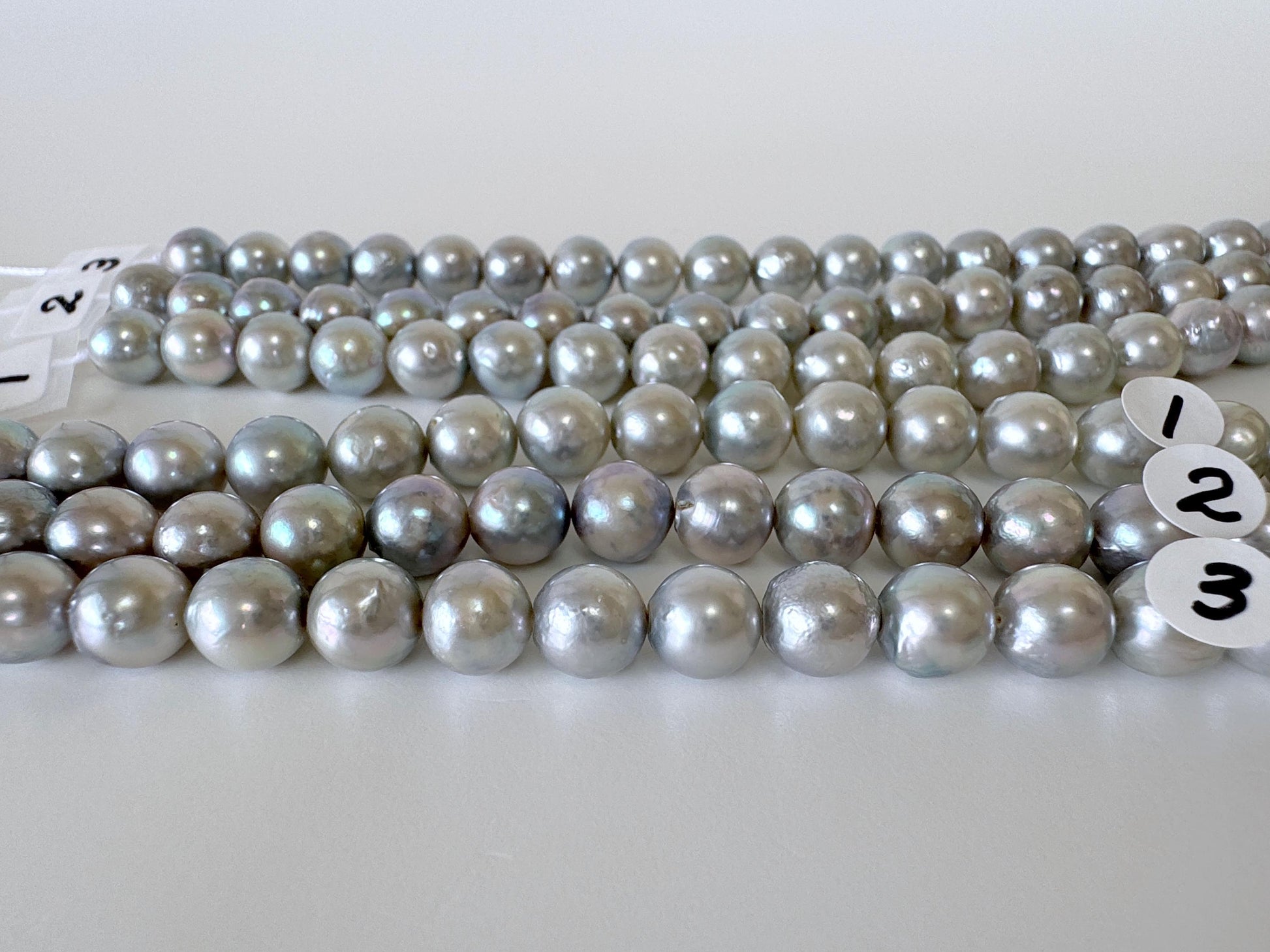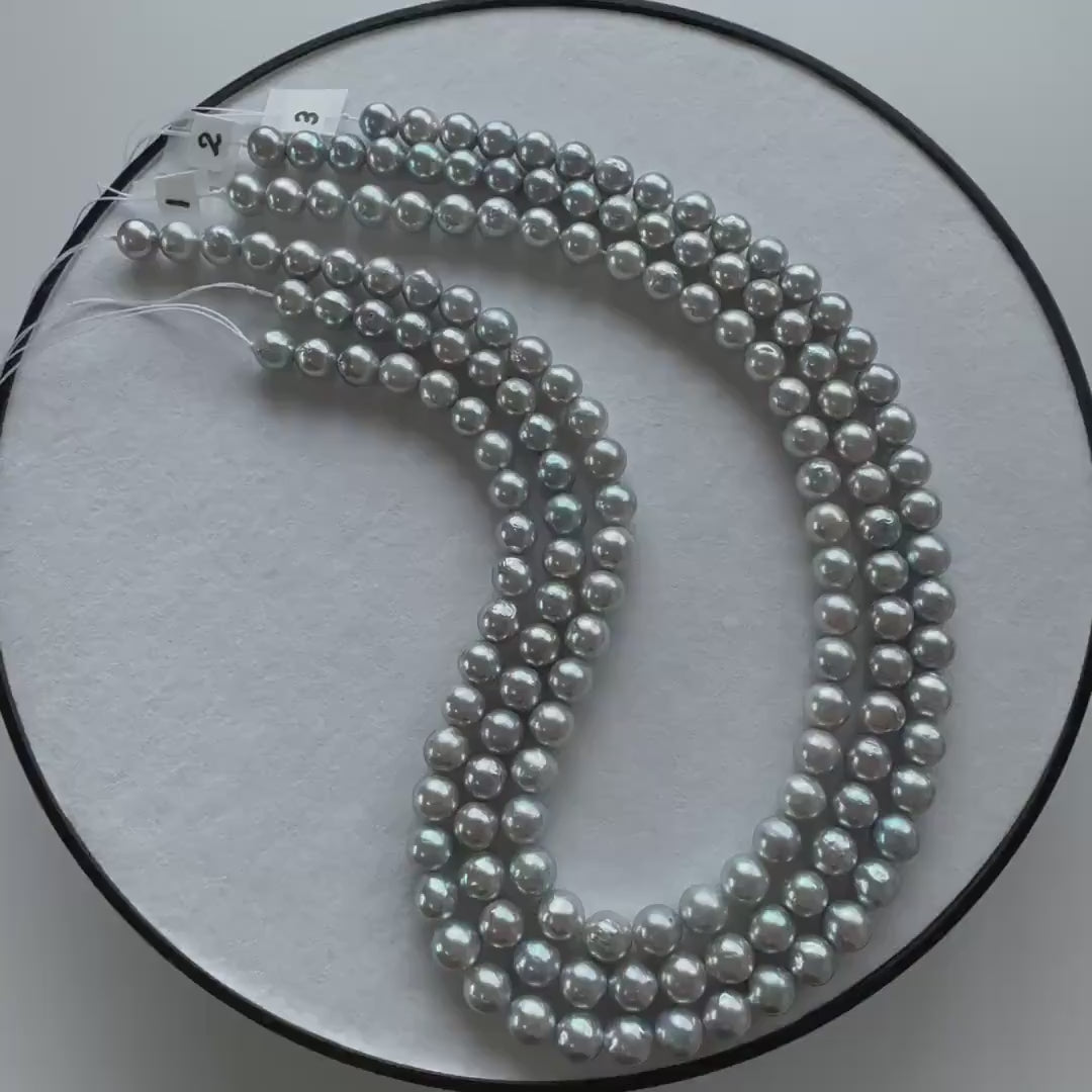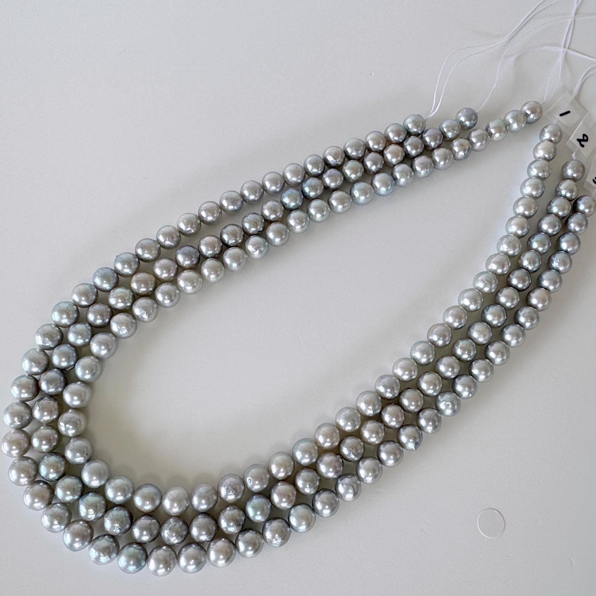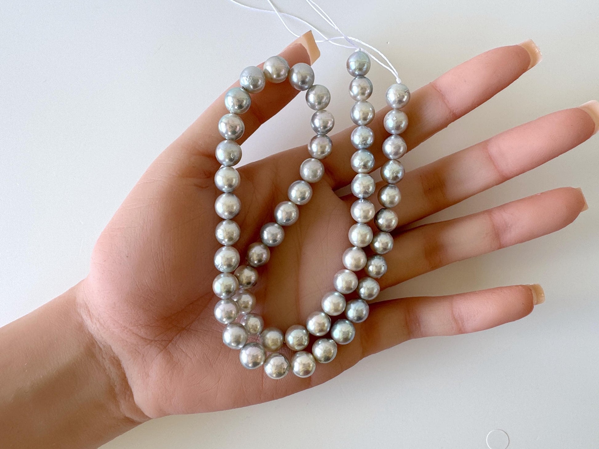 7.5-8mm Japanese Akoya Pearl Beads, Natural Blue/Silver color pearl, Genuine Akoya Pearl, Full Strand 40cm , 15.7", Salt water pearl