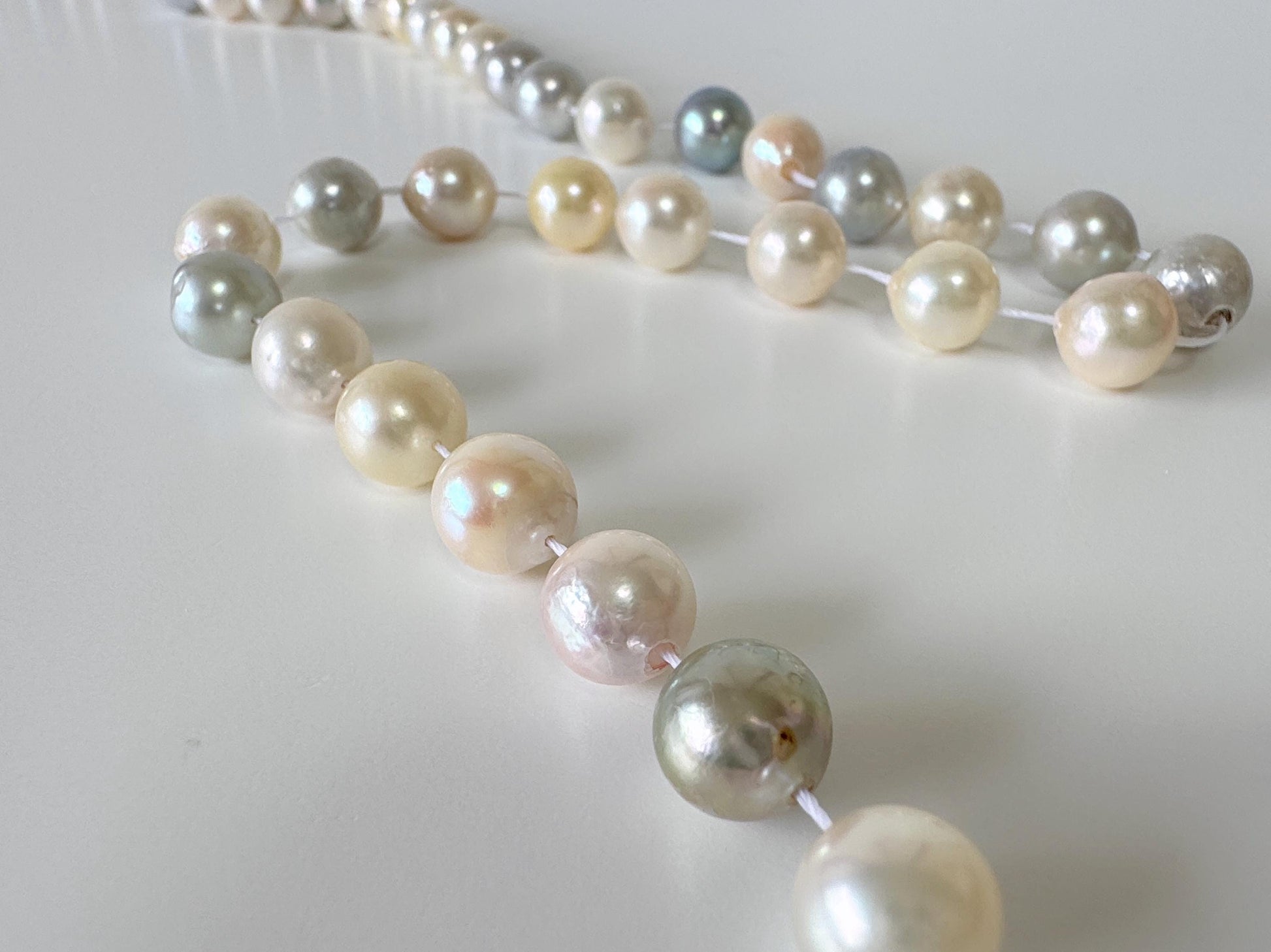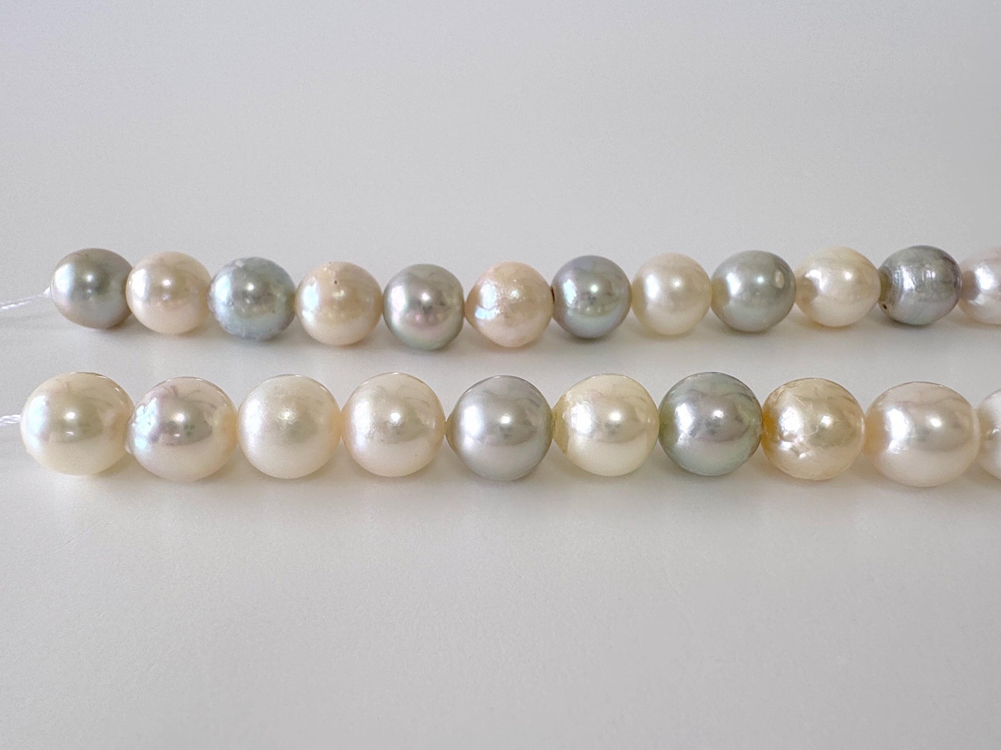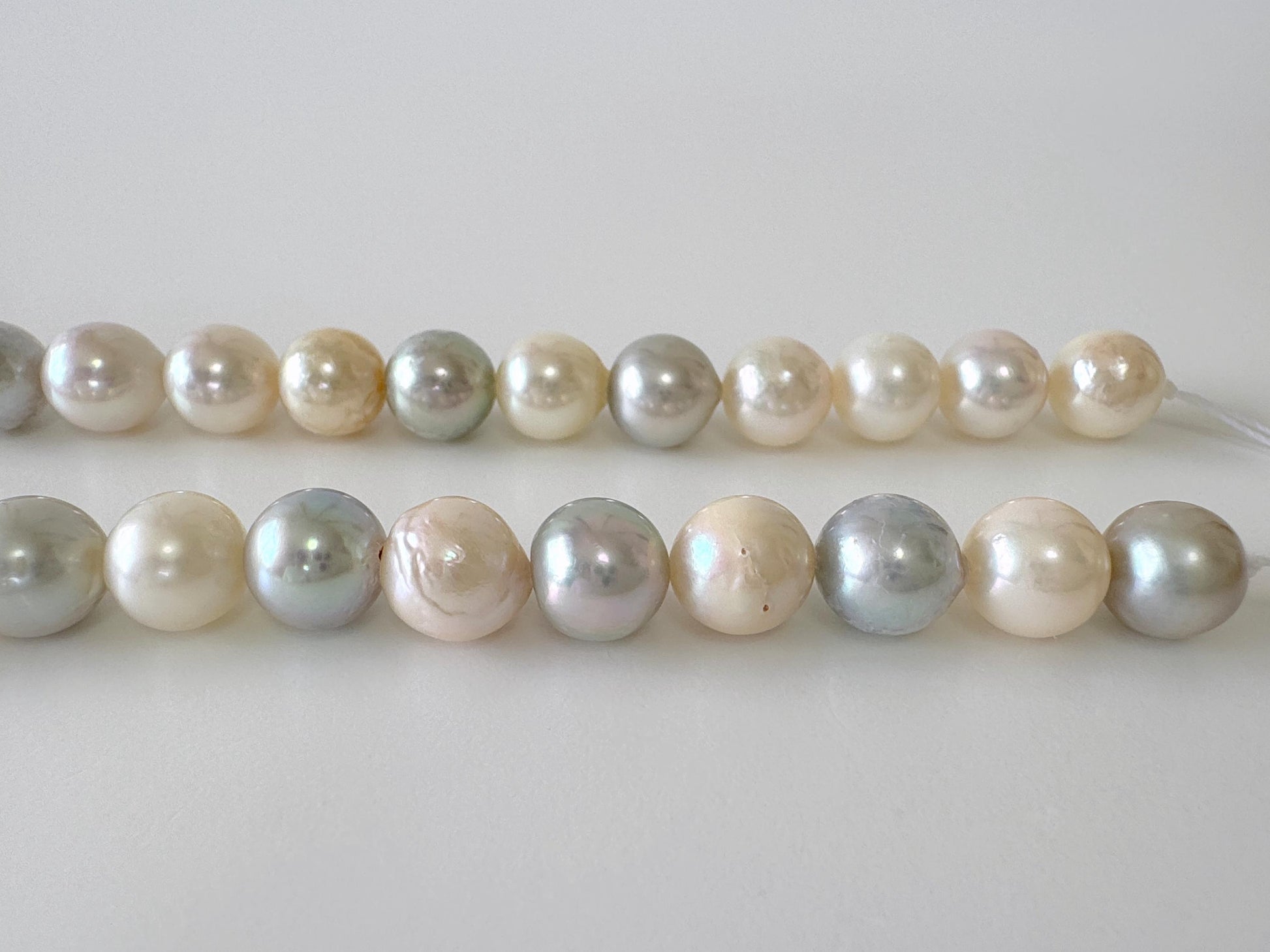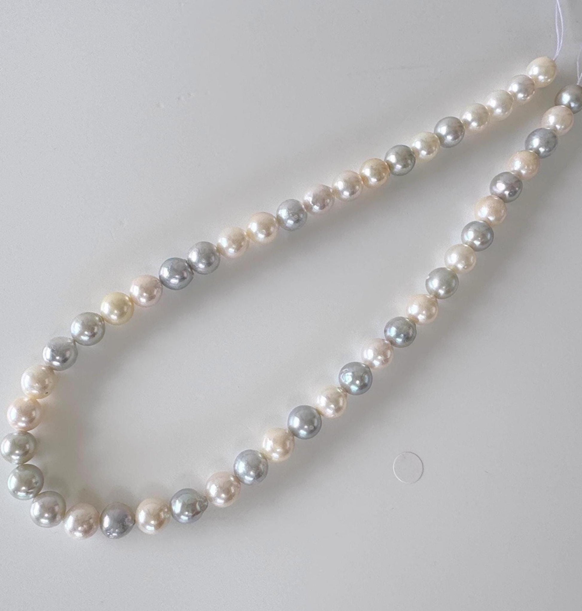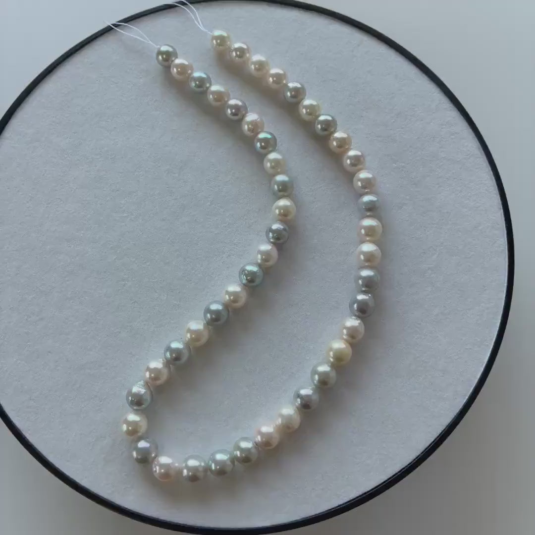 8.5-9mm Japanese Akoya Pearl Beads, Multi-color pearl, Genuine Salt water Akoya Pearl, Full Strand, 40cm , 15.7"