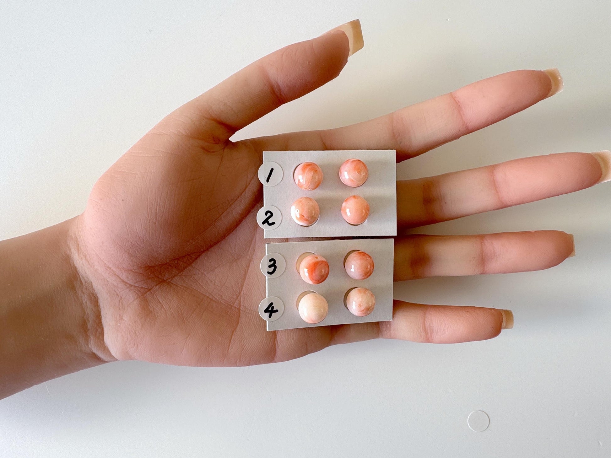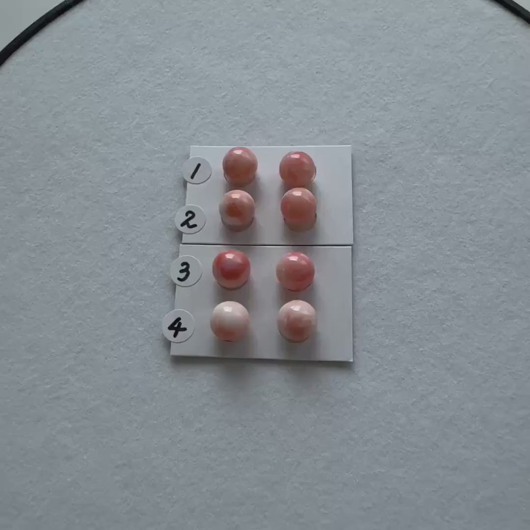 9-9.3mm Full Hole Natural deep sea coral round loose, Pink/Orange/White Coral, For earring sets or pendant, price per pair, Natural Color