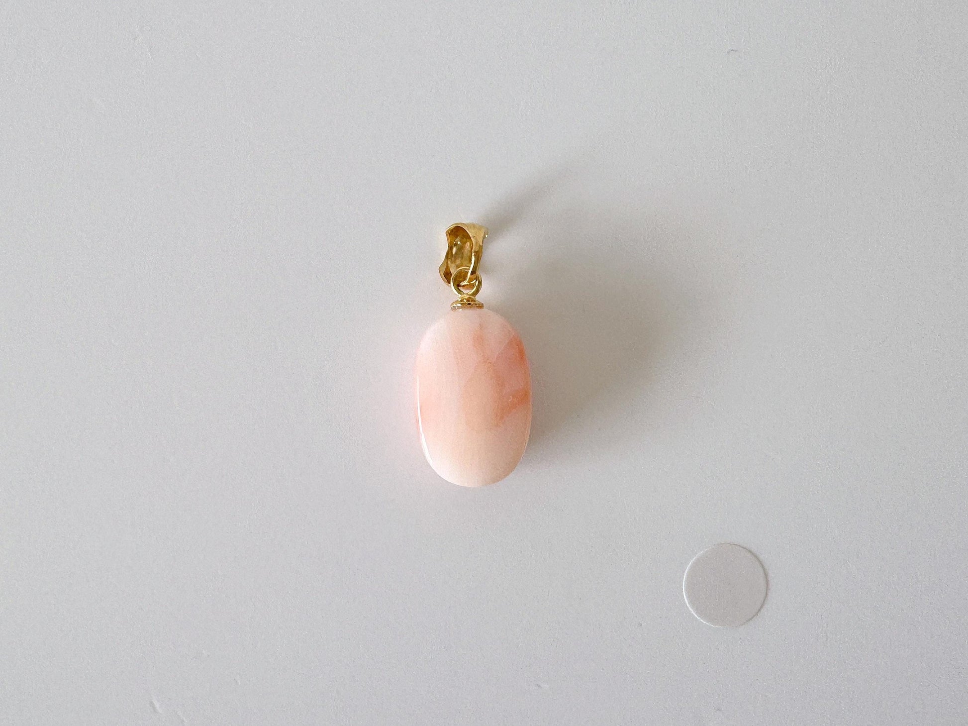 Natural Deep Sea Coral Oval Cabochon Pendant, 16x10.5mm, Natural Pink/Orange color coral, Silver (Gold-Plated) bail
