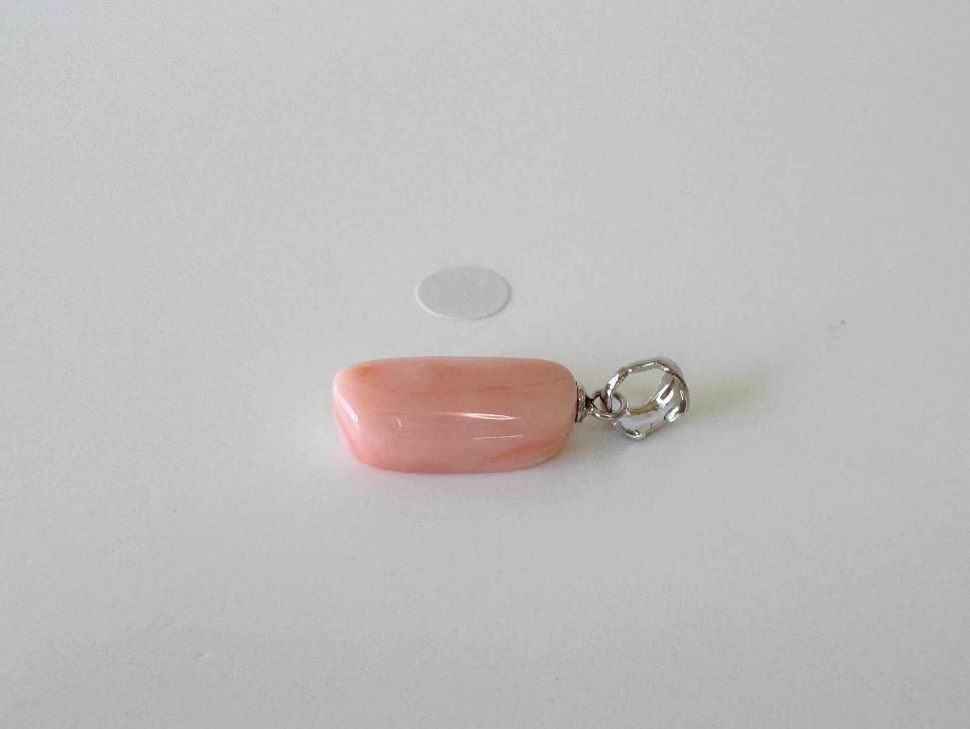 Natural Deep Sea Coral Oval Cabochon Pendant, 17x8.8mm, Natural Pink/Orange color coral, Silver (Rhodium-Plated) bail