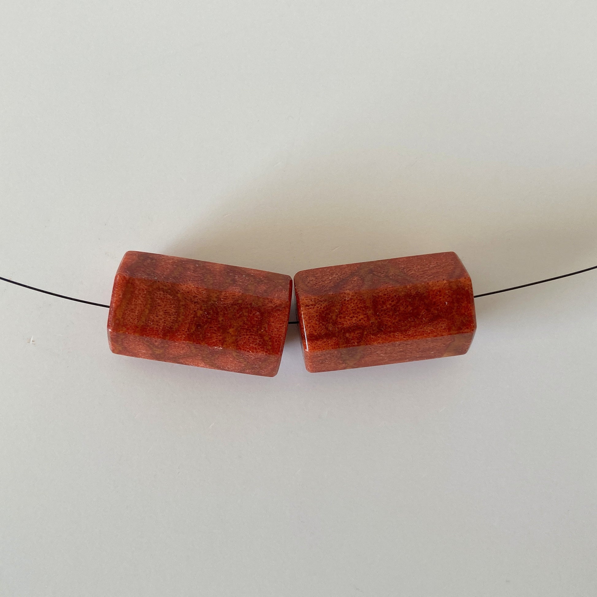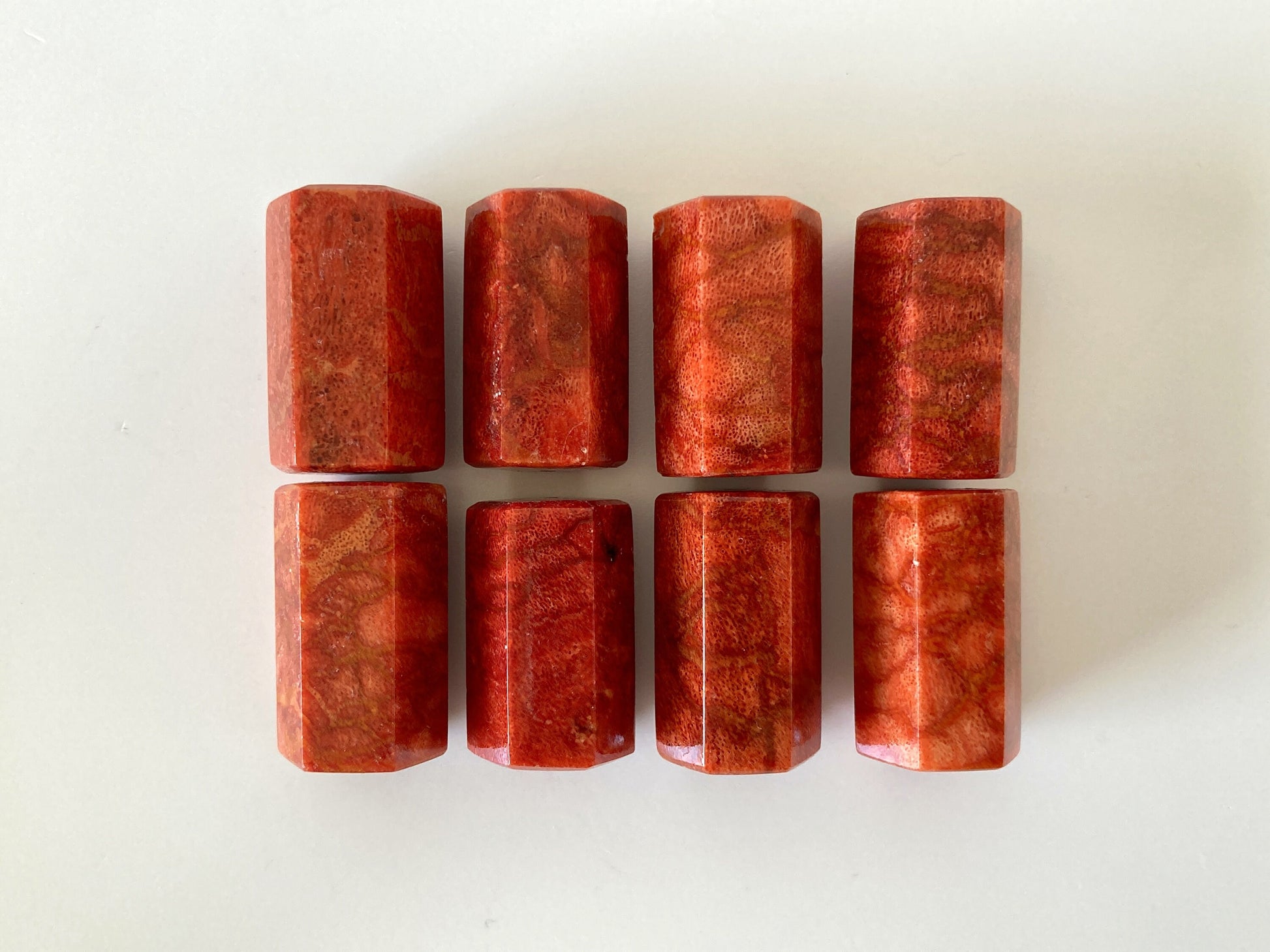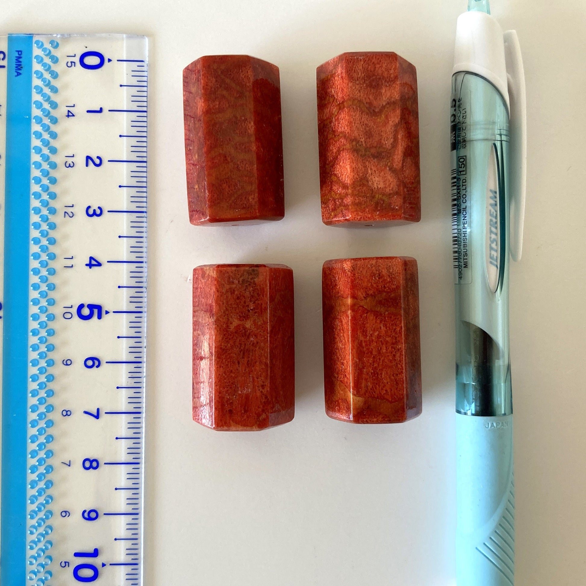 Natural sponge coral hexagonal prism loose 28mm long, Apple coral hexagonal prism, For jewelry making, Price per piece, full hole