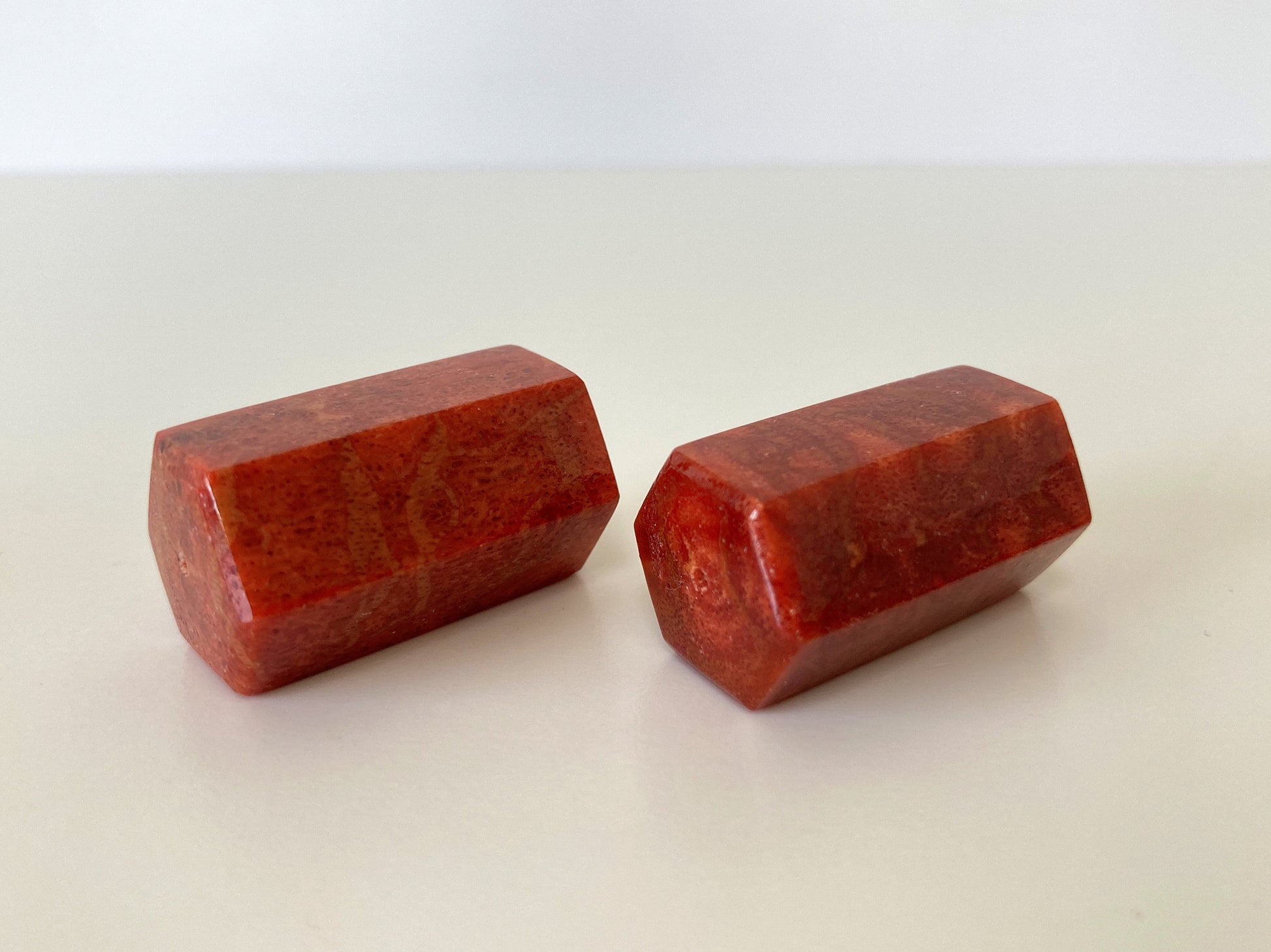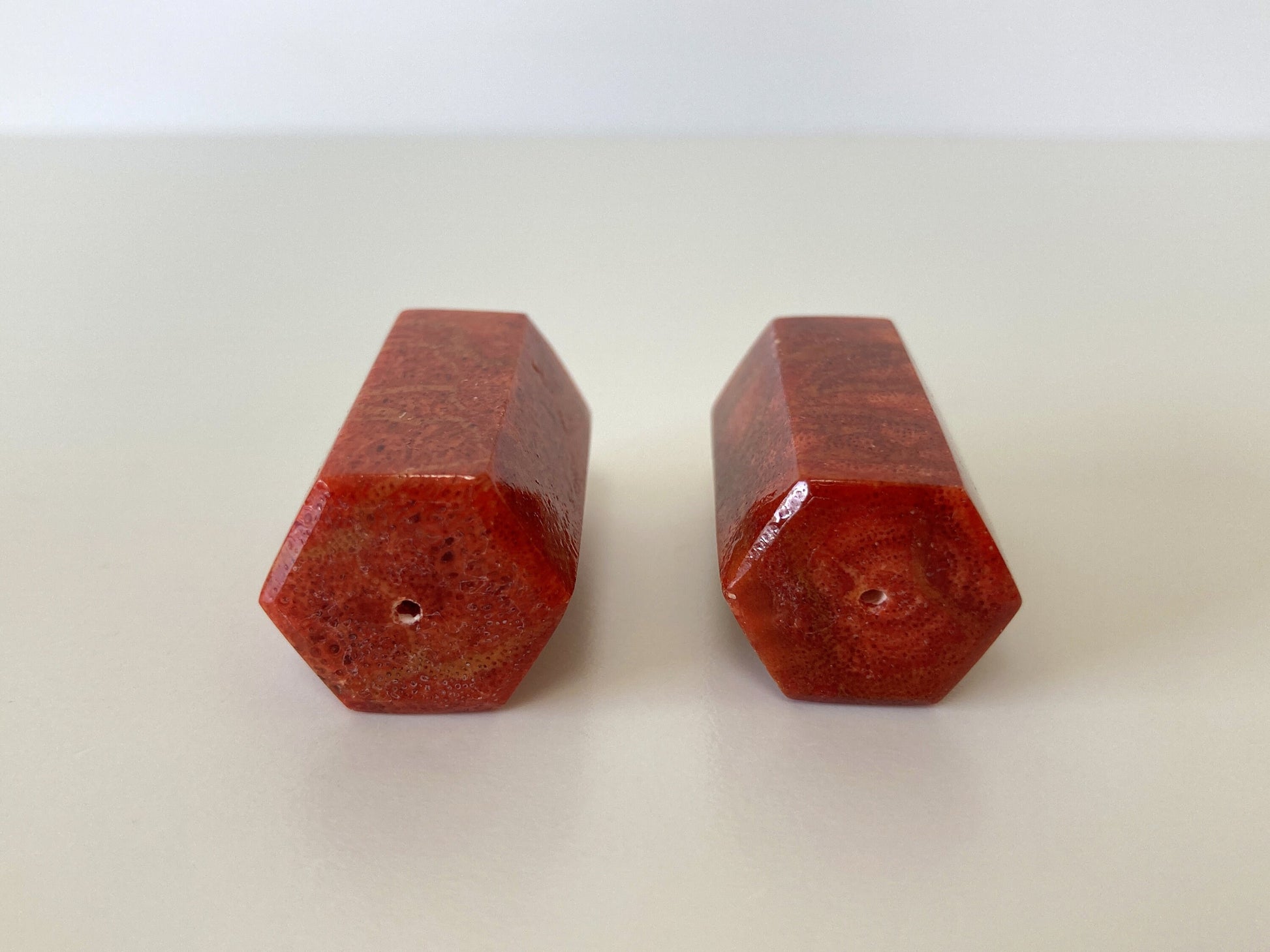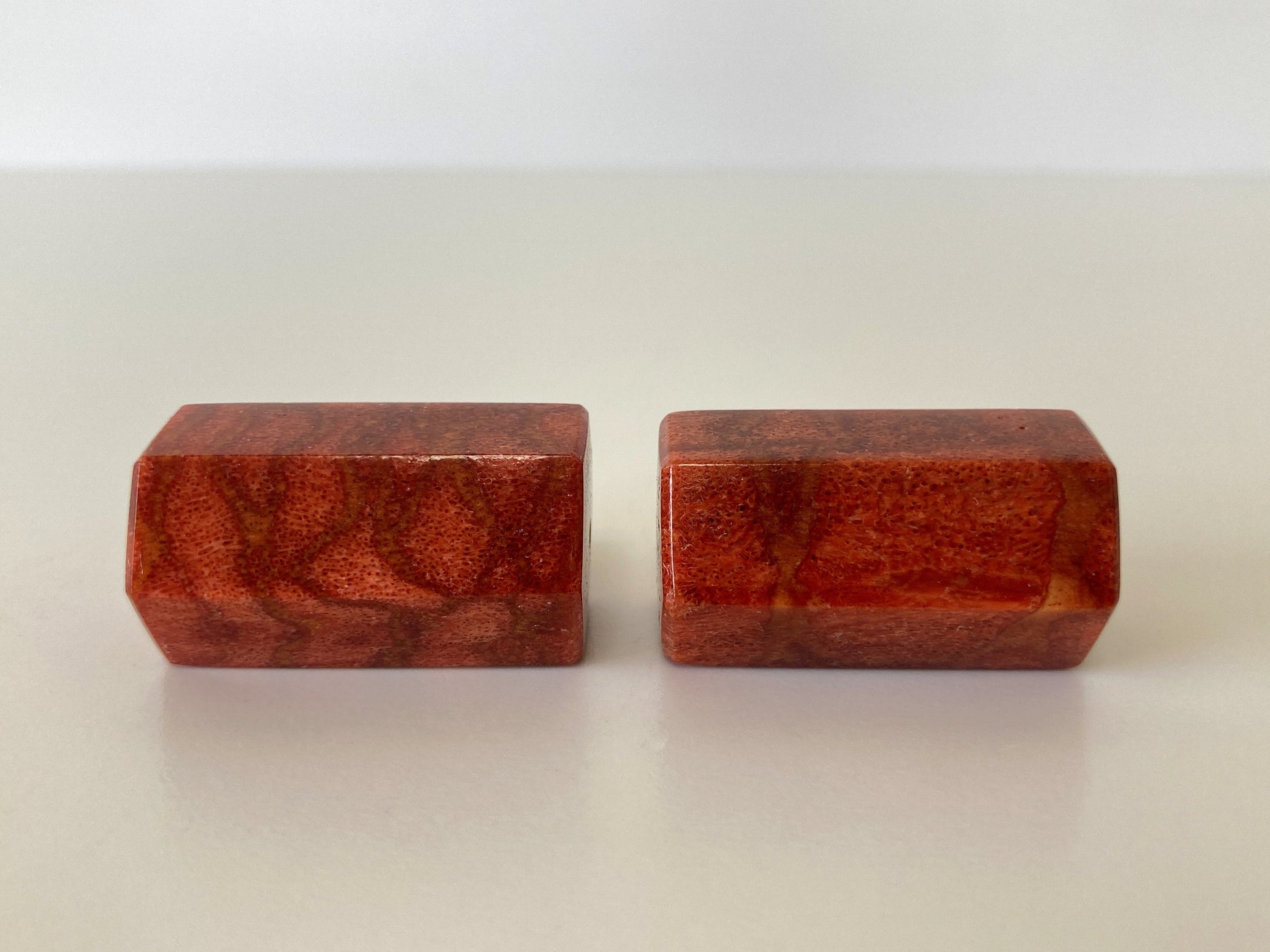 Natural sponge coral hexagonal prism loose 28mm long, Apple coral hexagonal prism, For jewelry making, Price per piece, full hole